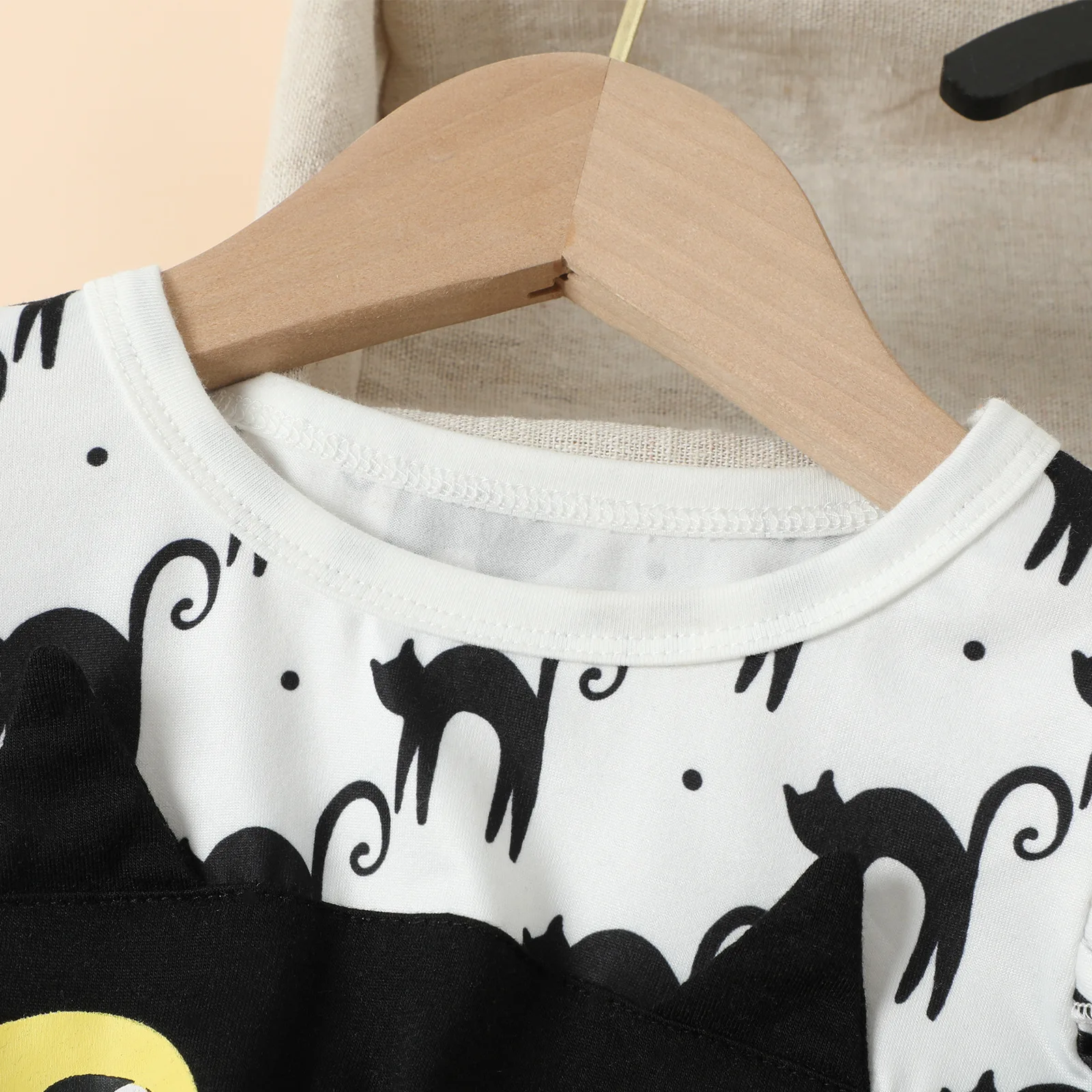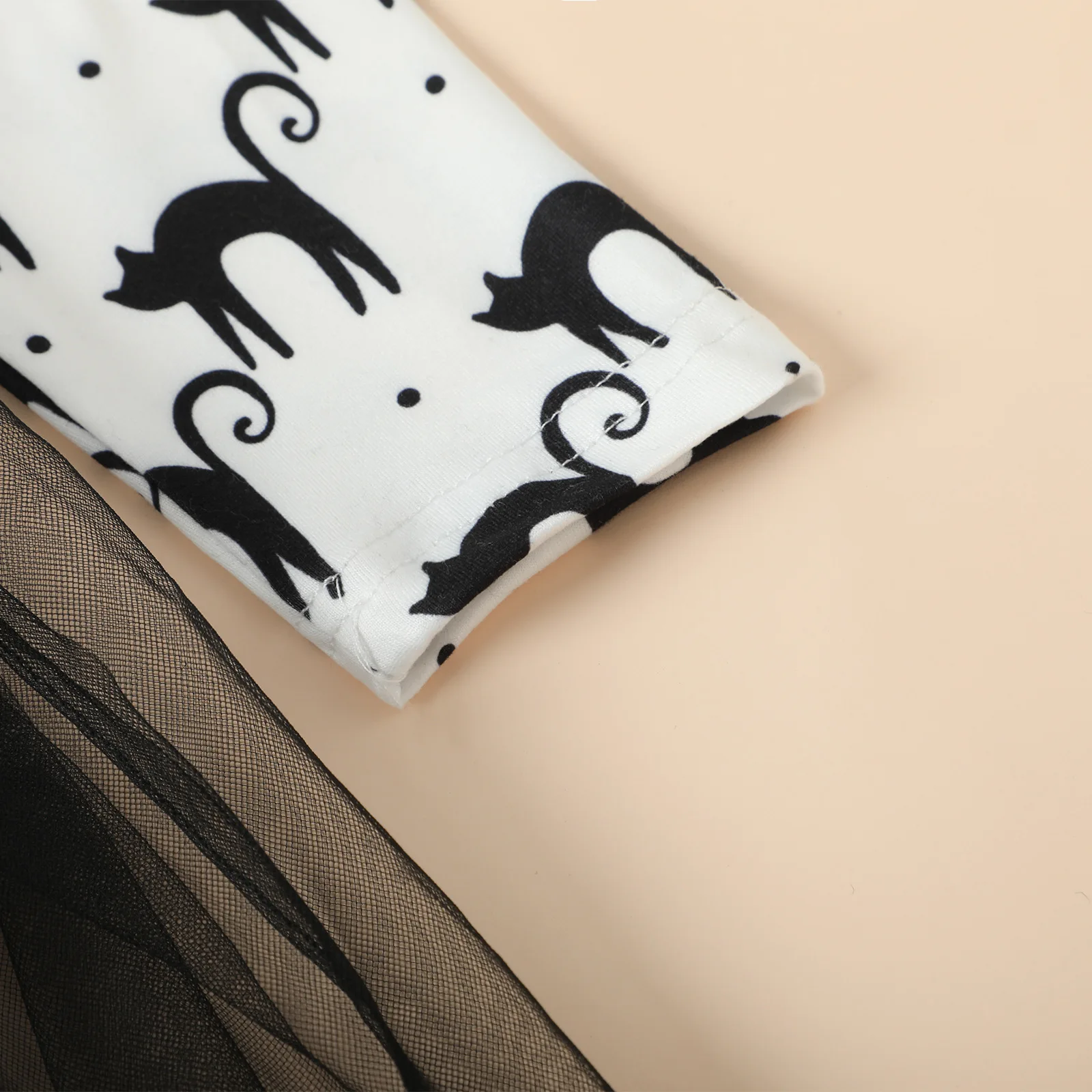 Halloween European American Kid Costume Girl Autumn Dress Long Sleeve Cartoon Black Kitten Printed Tulle Children Princess Dress