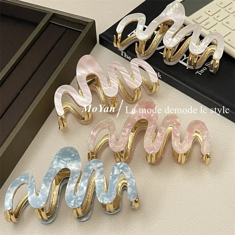 Han Acetate Metal Wave Grip Female Back Head Updo Shark Clip Large Hair Clip High-Grade Sense Hair Clip Headdress