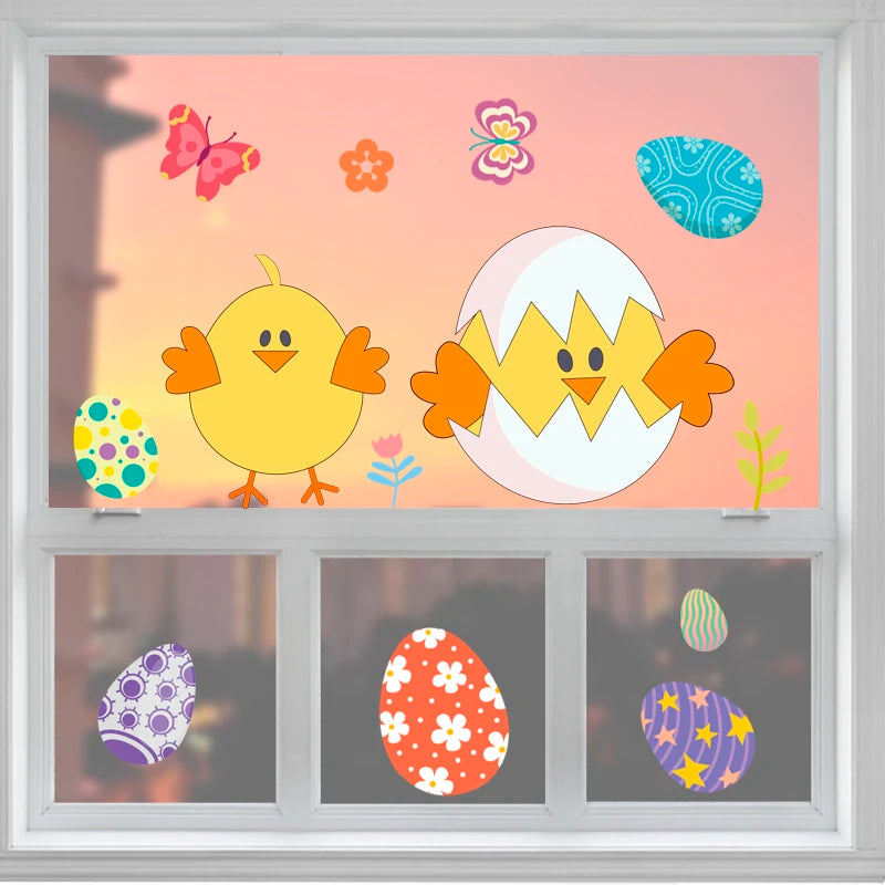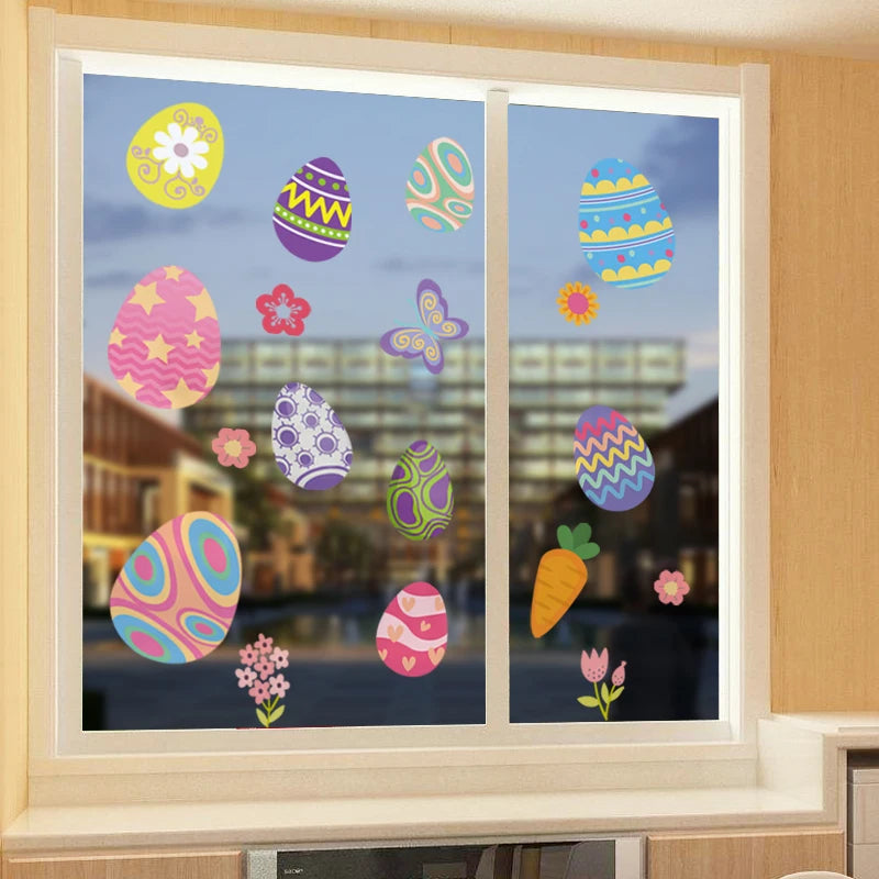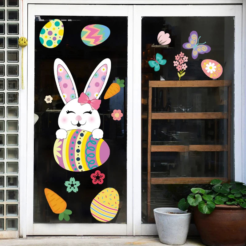 Happy Easter Window Stickers Rabbit Eggs Chick Wall Stickers Easter Decorations for Home 2022 Easter Party Bunny Wall Decals