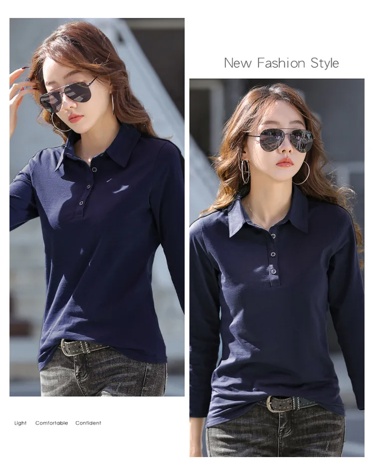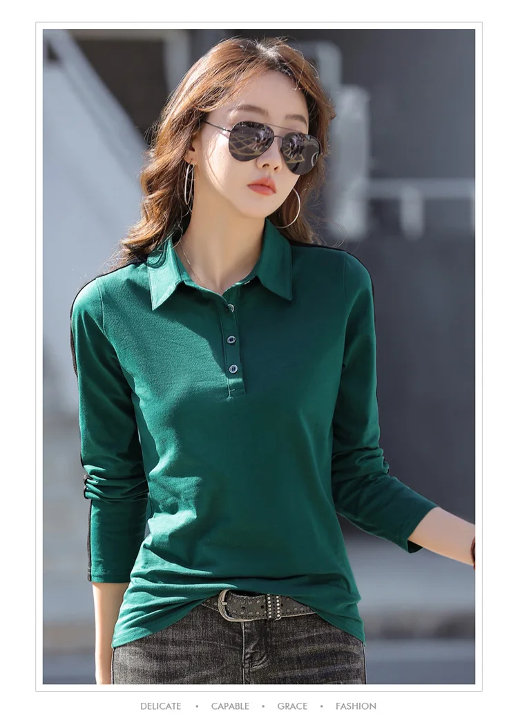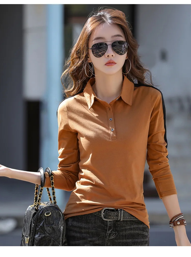 HI-FASHION Women Cotton Shirt Korean Casual Office Female Blouse Tops Spring Lapel temperament Long Sleeve Slim woman tshirt