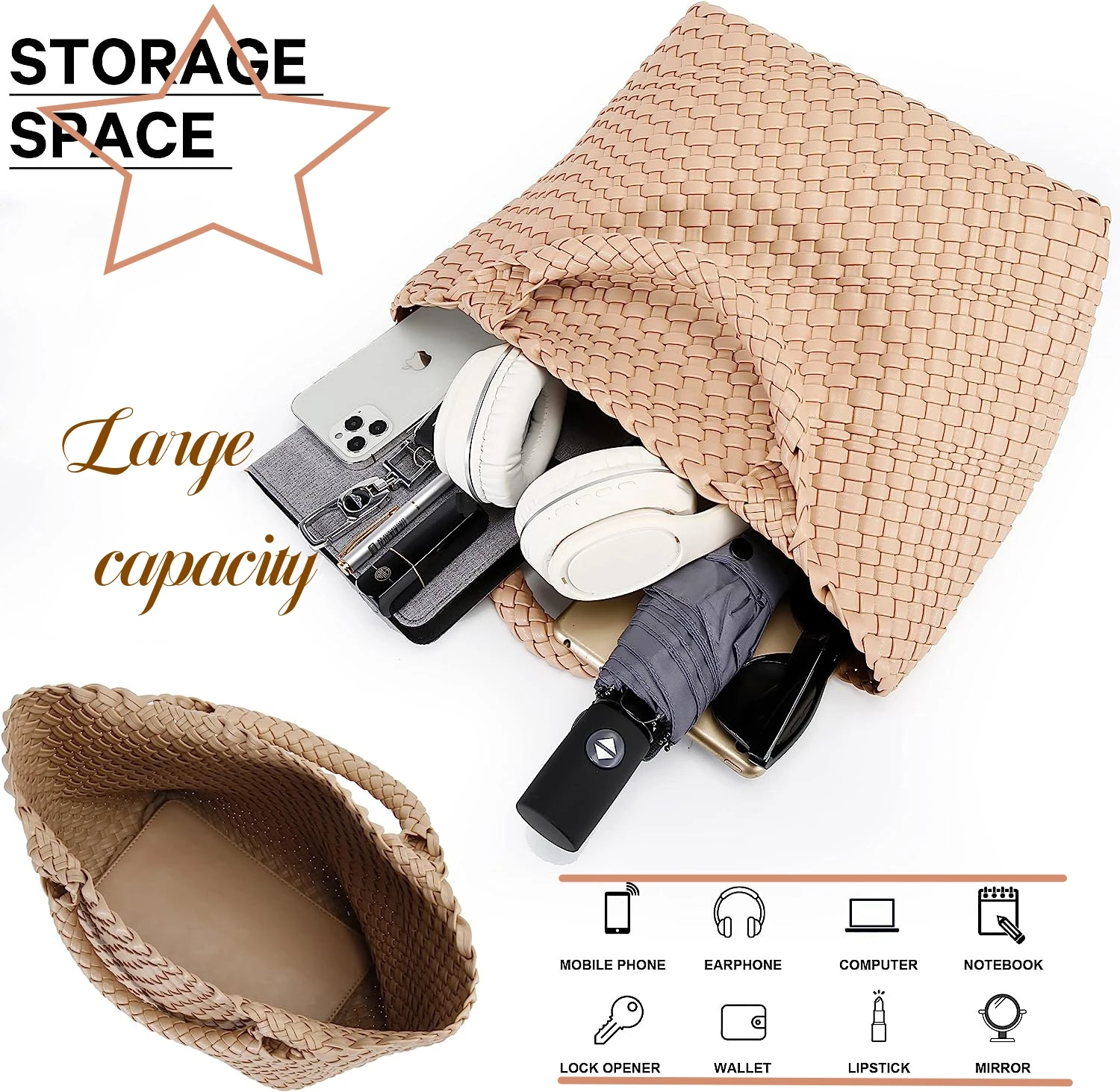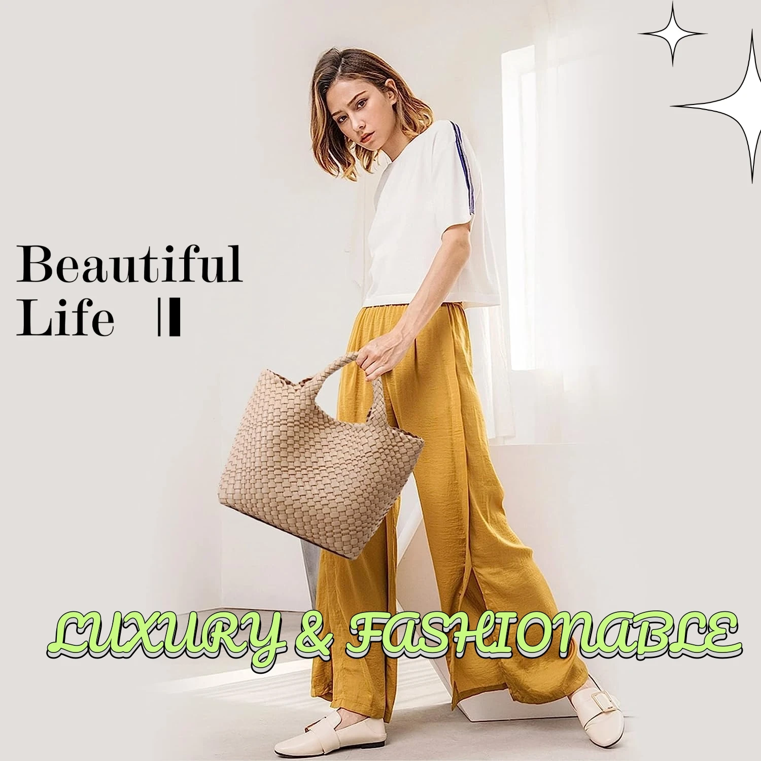 Hot Sale New Neoprene PU Woven Bag Beach Bag Large Capacity Woven Handbag Handmade Knitted Bag