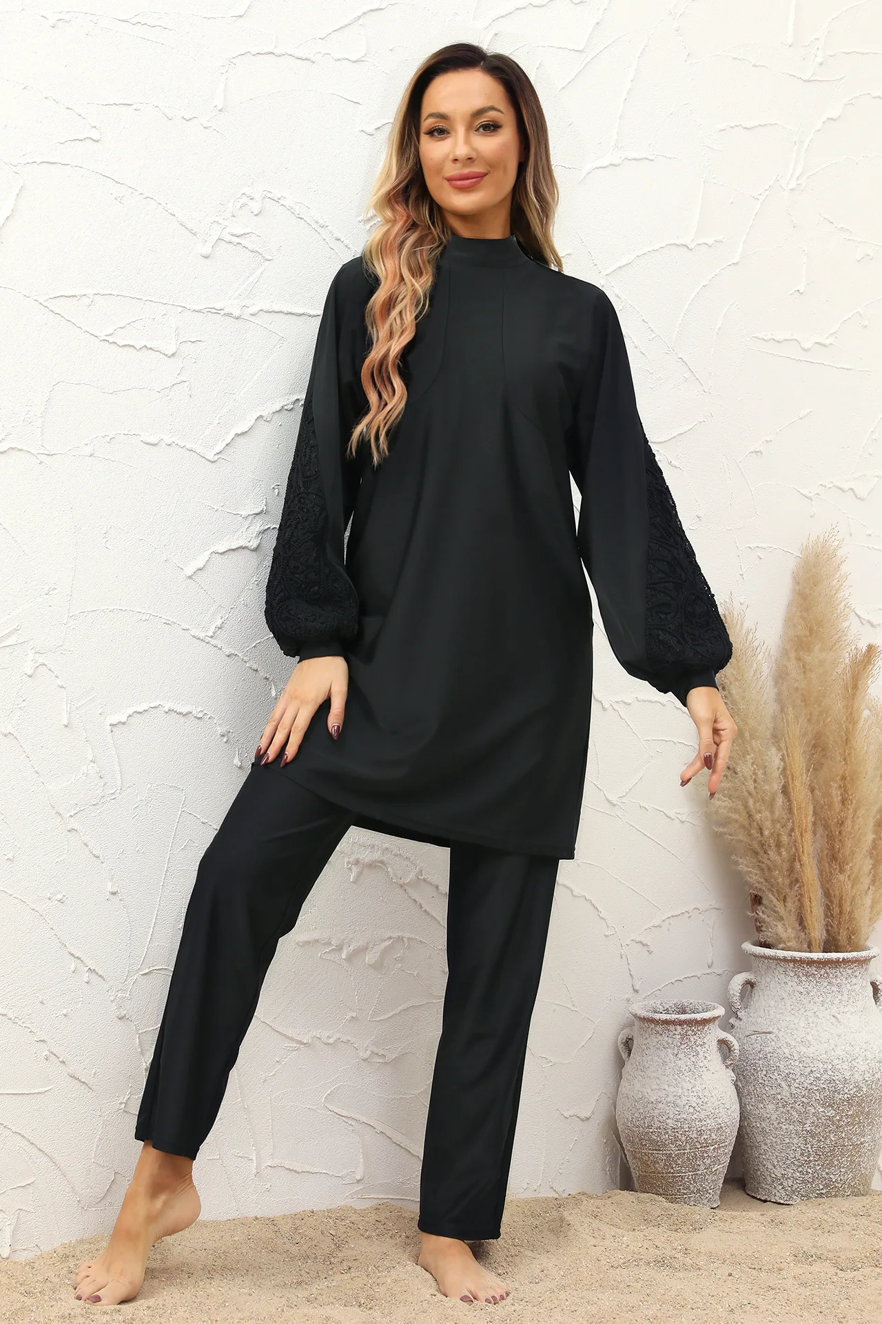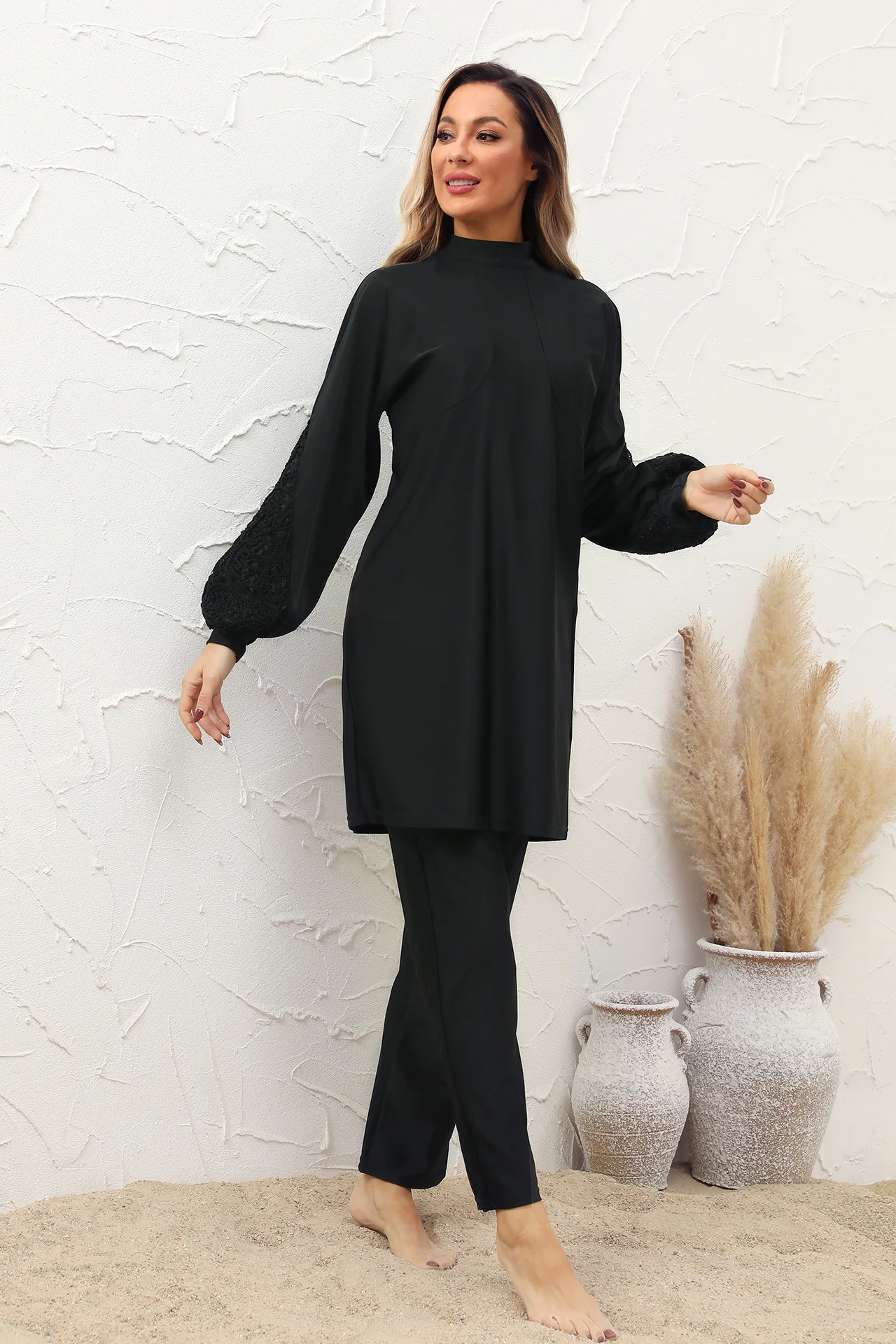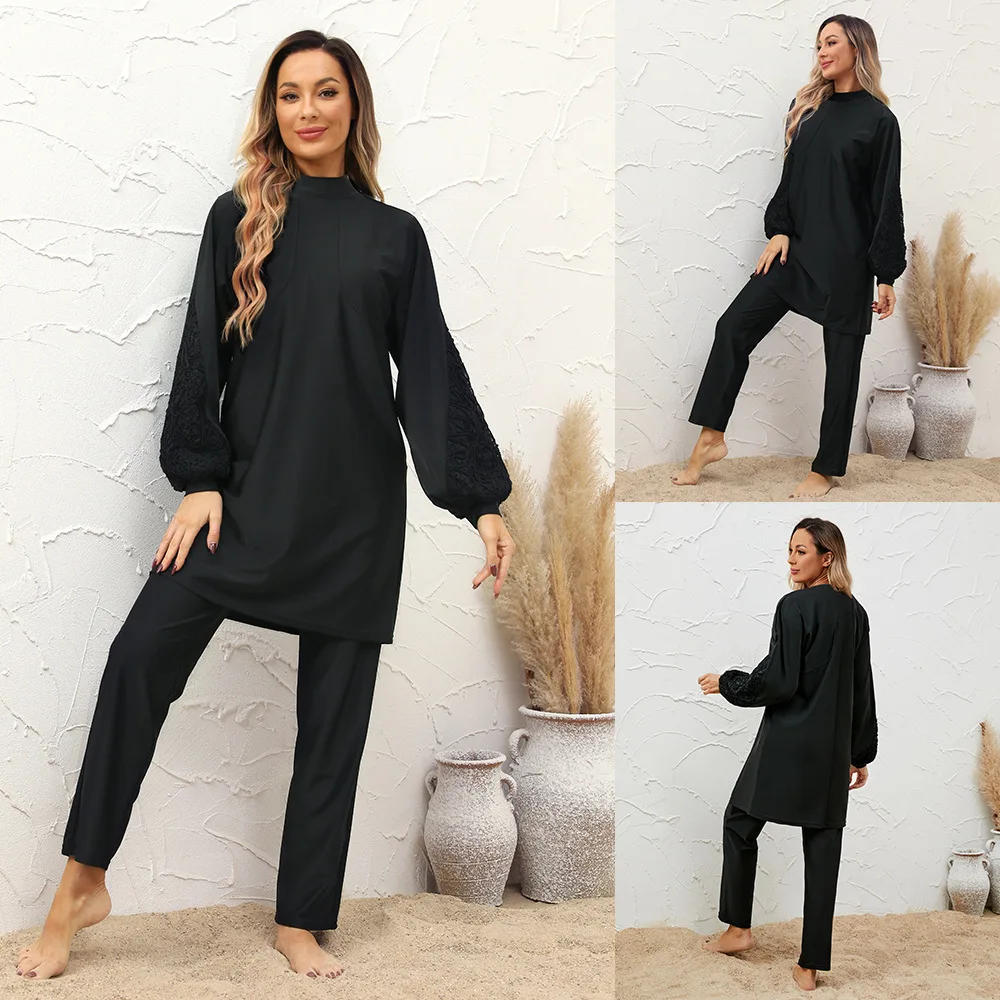 Islamic Women Muslim Swimwear Long Dress and Pants Burkini Swimsuit Modest Swim Surf Wear Sport Full Suit Swimming 3 Piece Sets