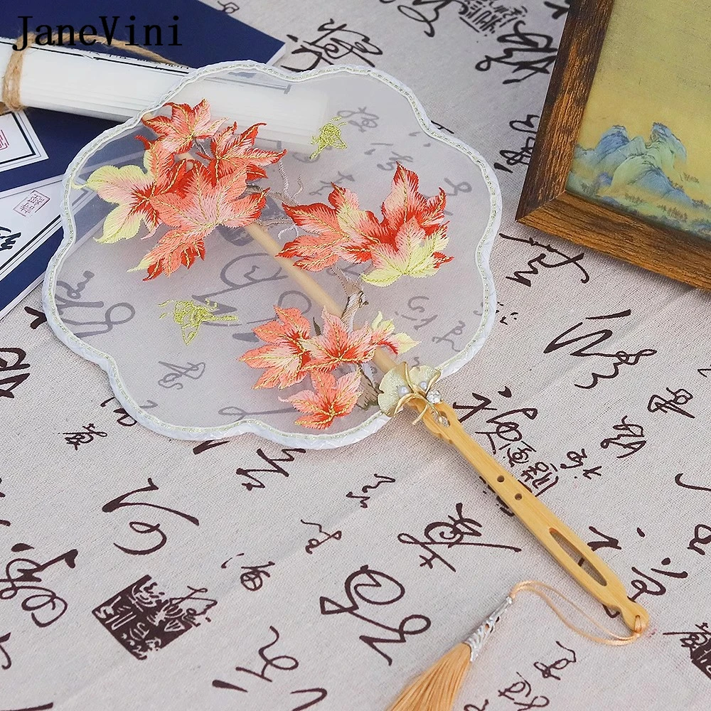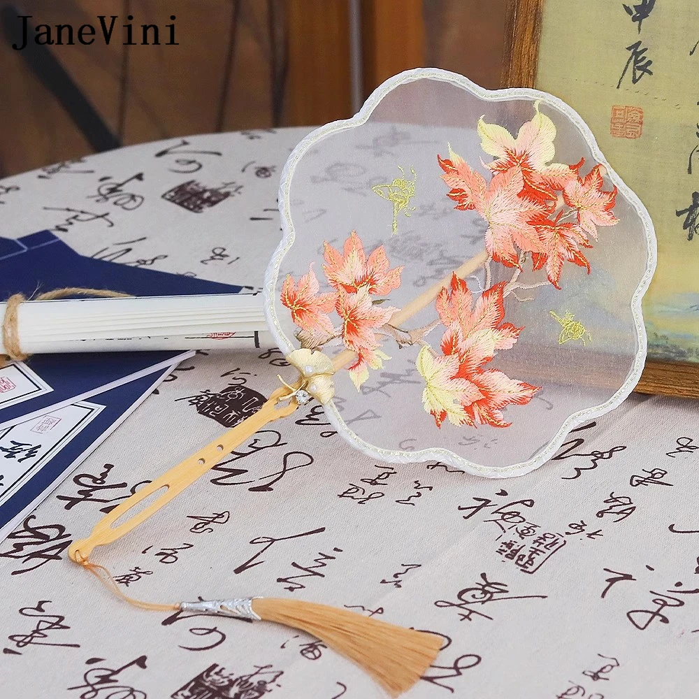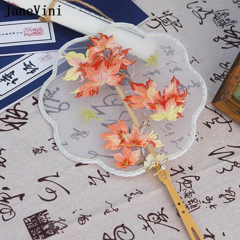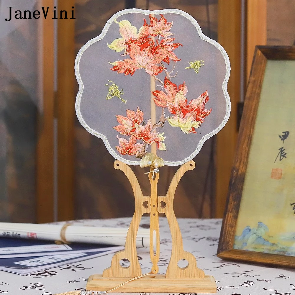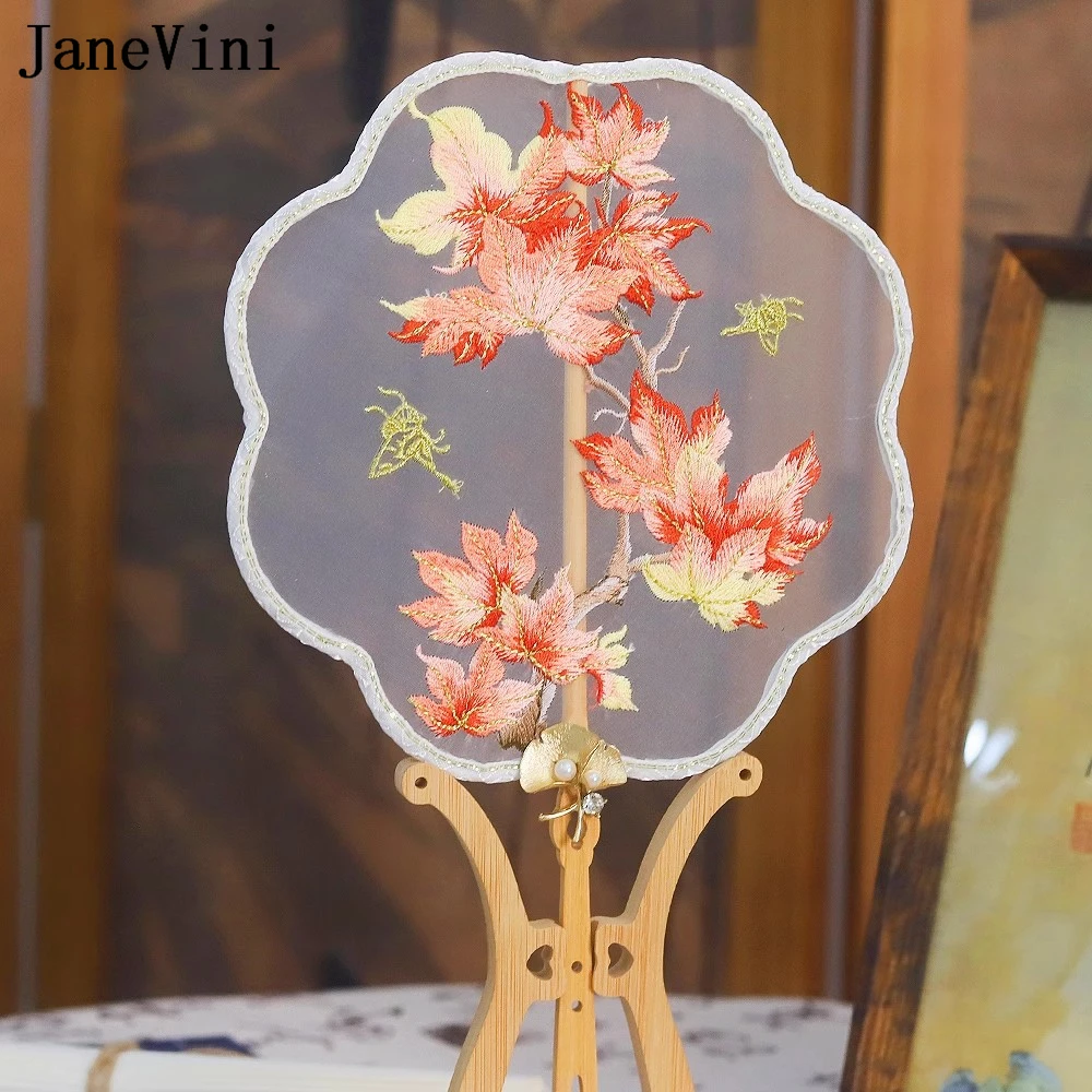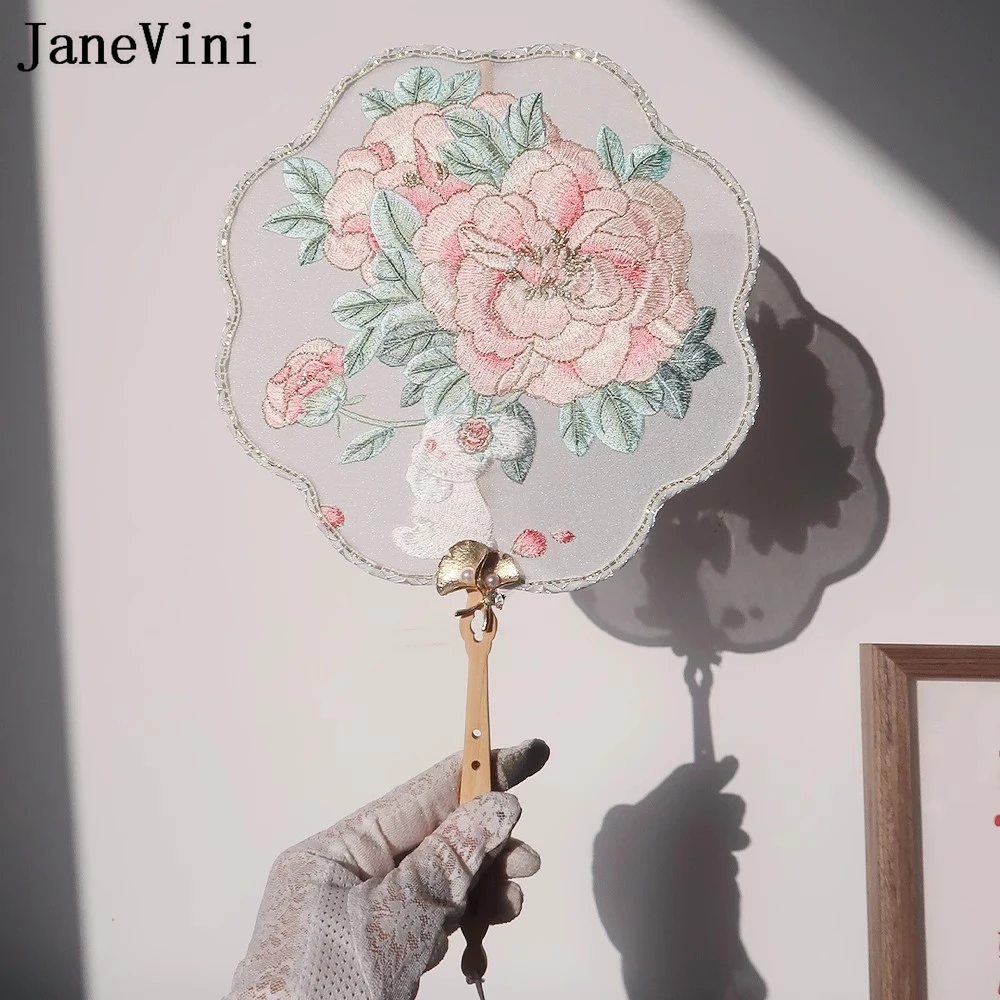 JaneVini Delicate Embroidery Flowers Rabbit Wedding Bride Fan Handmade Hanfu Xiuhe Bridal Fan Bouquet Accessories Handicraft
