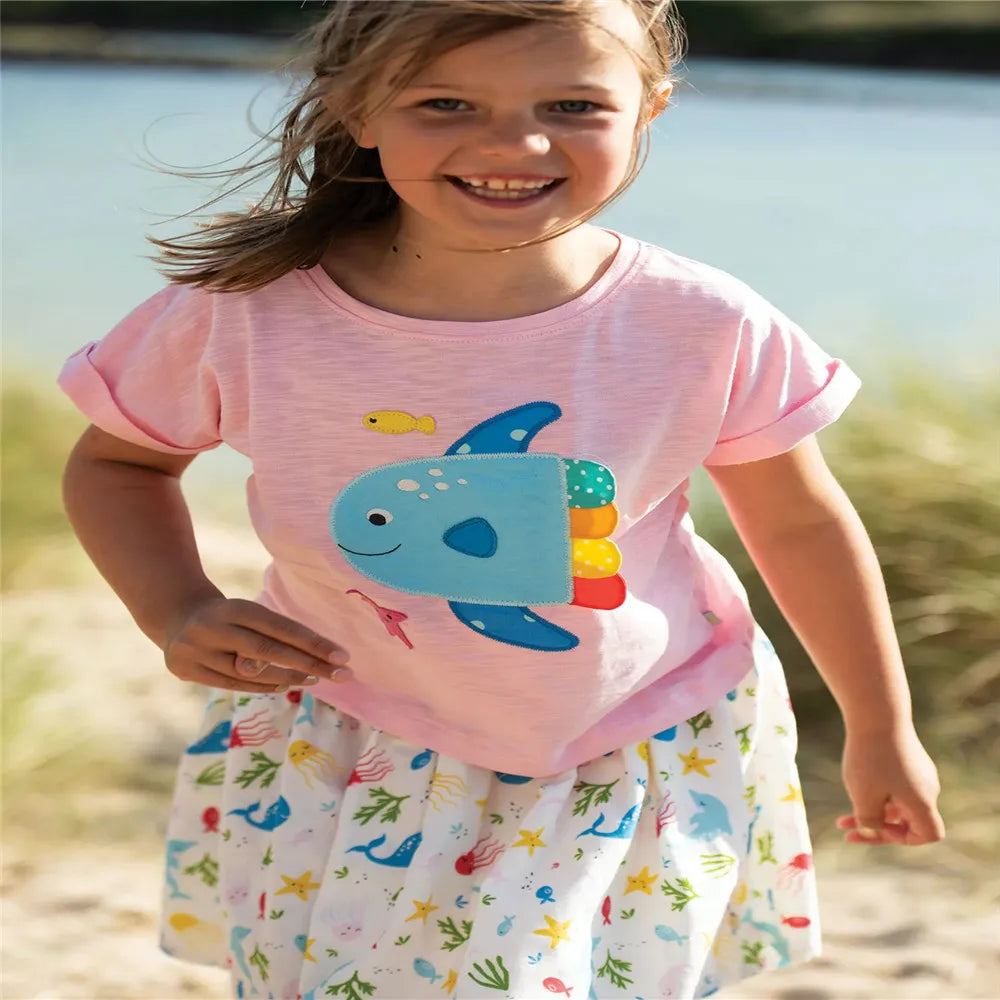 Jumping Meters 2-7T Animals Embroidery Girls Tees Cotton Summer Toddler Clothes Kids Tops Short Sleeve Baby Children's Tshirts