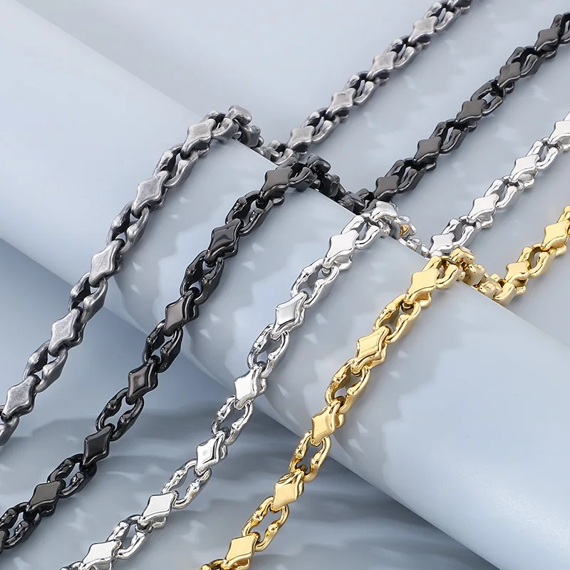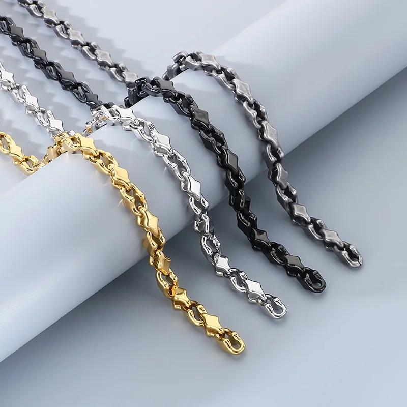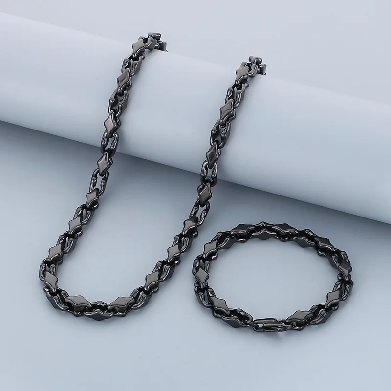 KALEN Vintage Rhombic Chain Bracelet Necklace for Men Women Punk Stainless Steel Jewelry Set Hollowing Chain Accessories Gift
