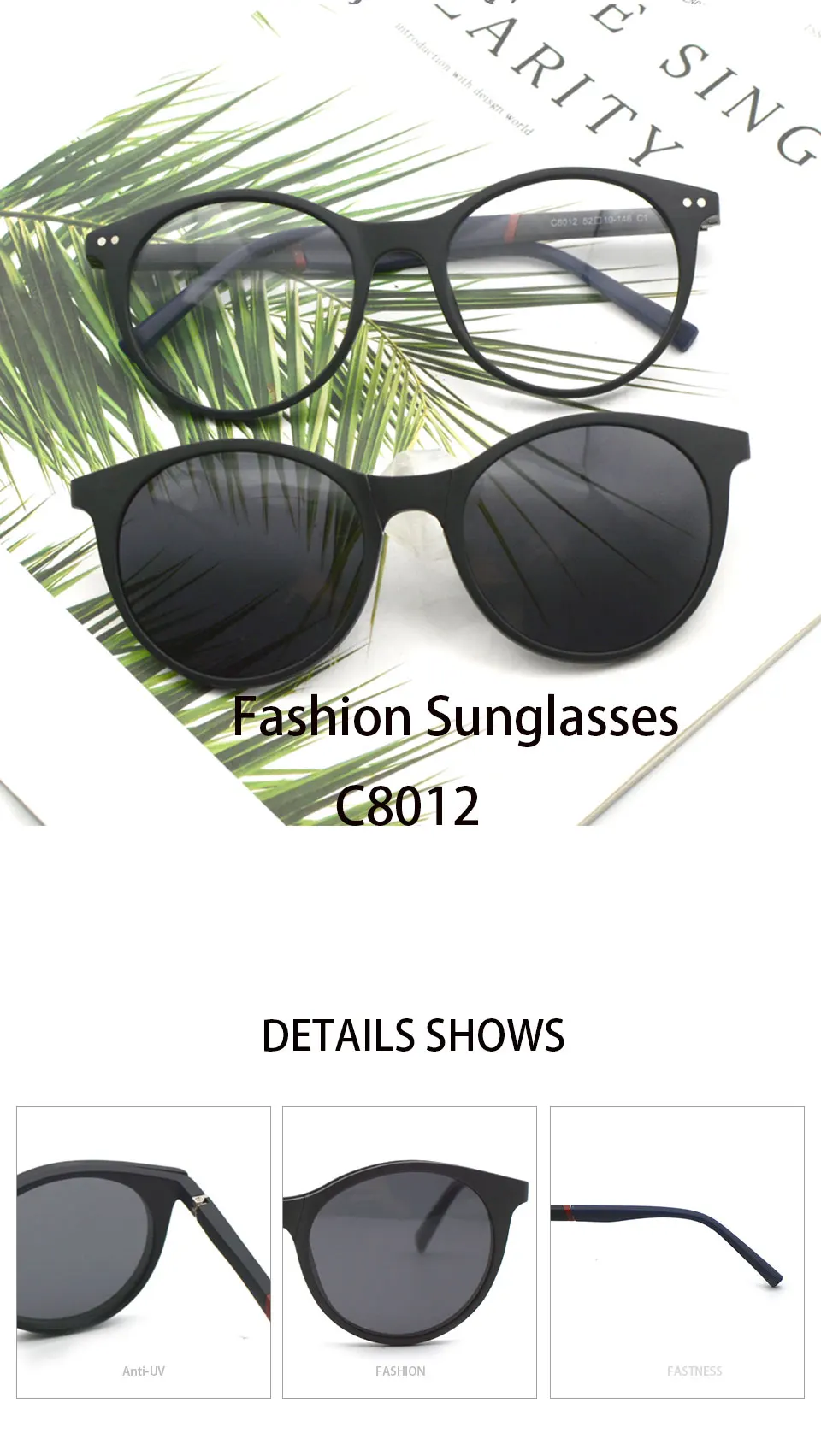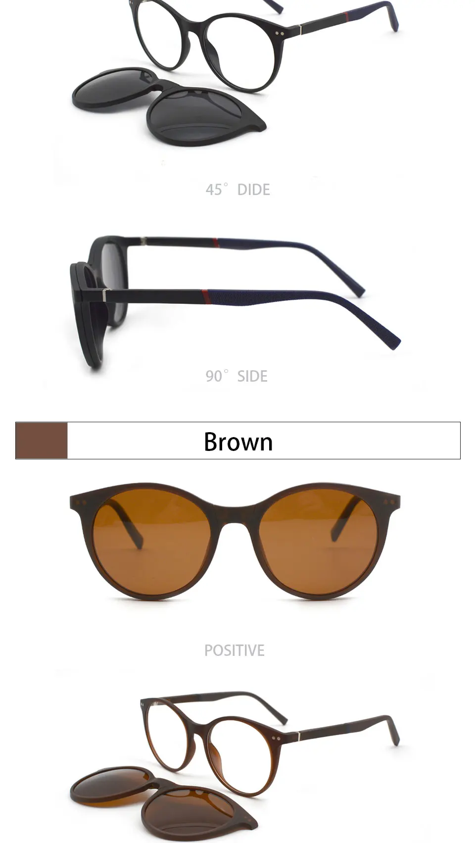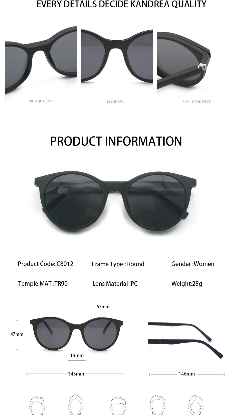 KANDREA 2 IN 1Vintage Round Magnetic Sunglasses Women Fashon Glasses Frame Men Optical Myopia Prescription Eyewear C8012