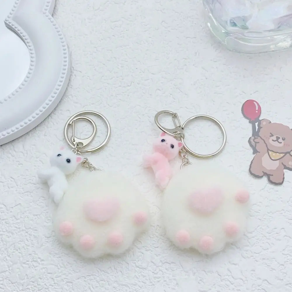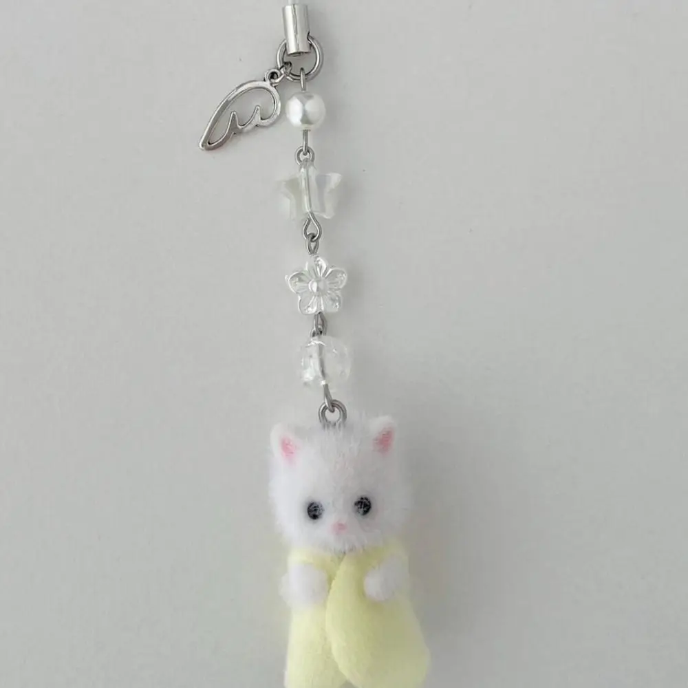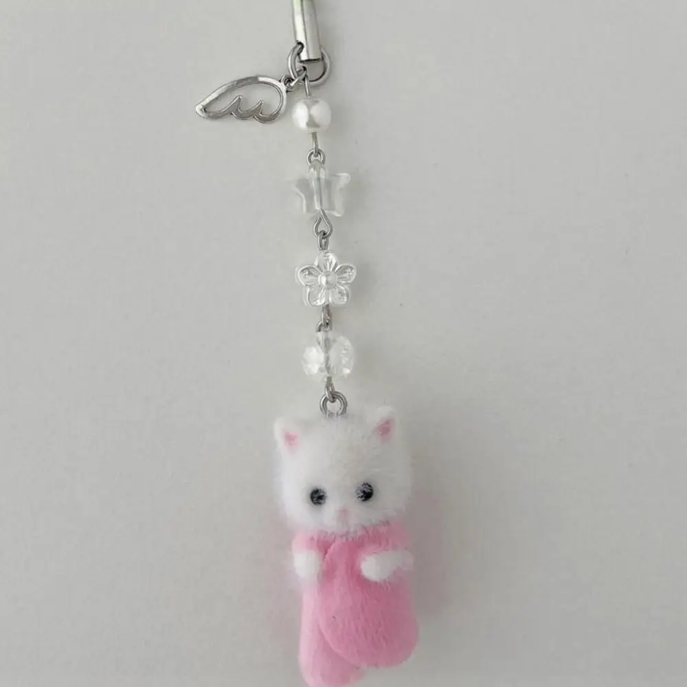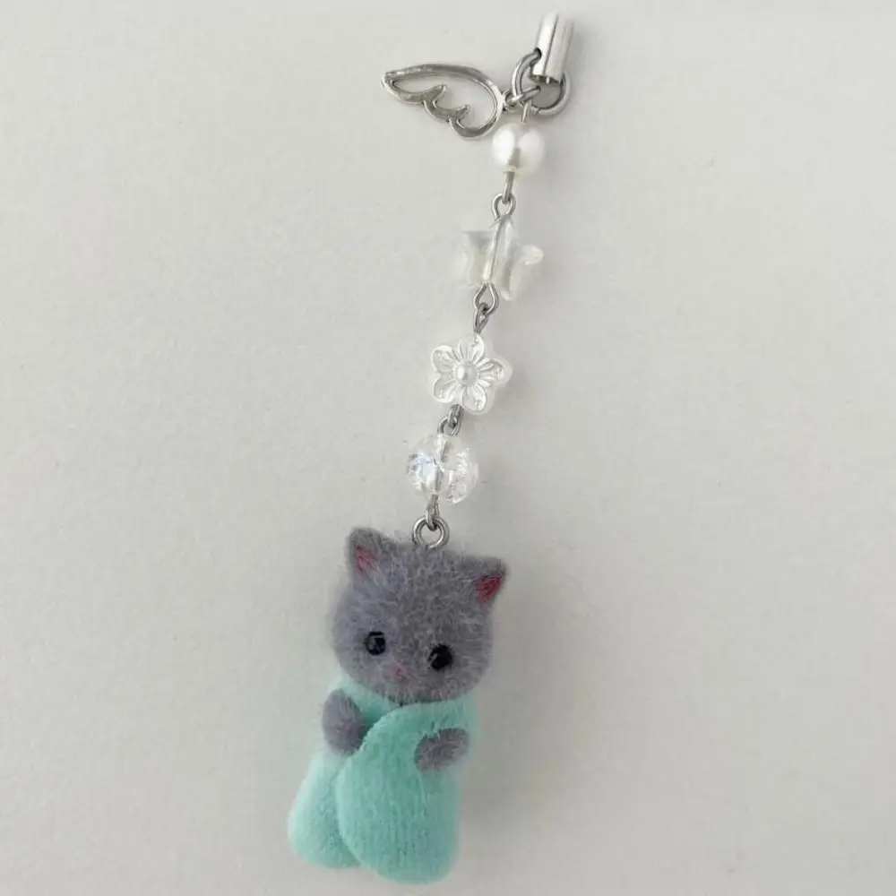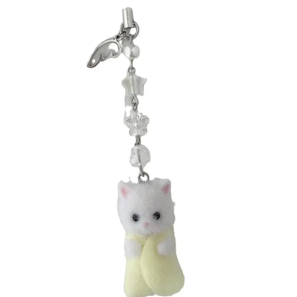 Kawaii Flocking Cat Pendant Phone Lanyard Cute Mobile Phone Charm Backpack Headphone Case Decoration for Girls Jewelry Gifts
