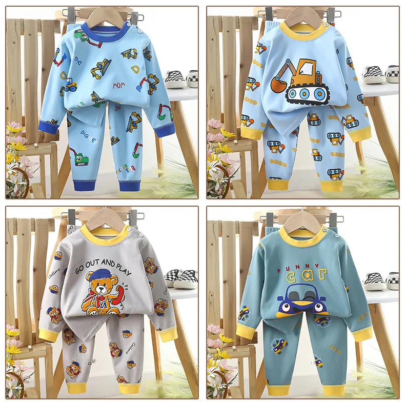 Kids Boys Casual Warm Cotton Pajamas Cute Cartoon Bear Long Sleeve T-Shirt Tops + Pants New Baby Autumn Sleepwear Clothing Sets
