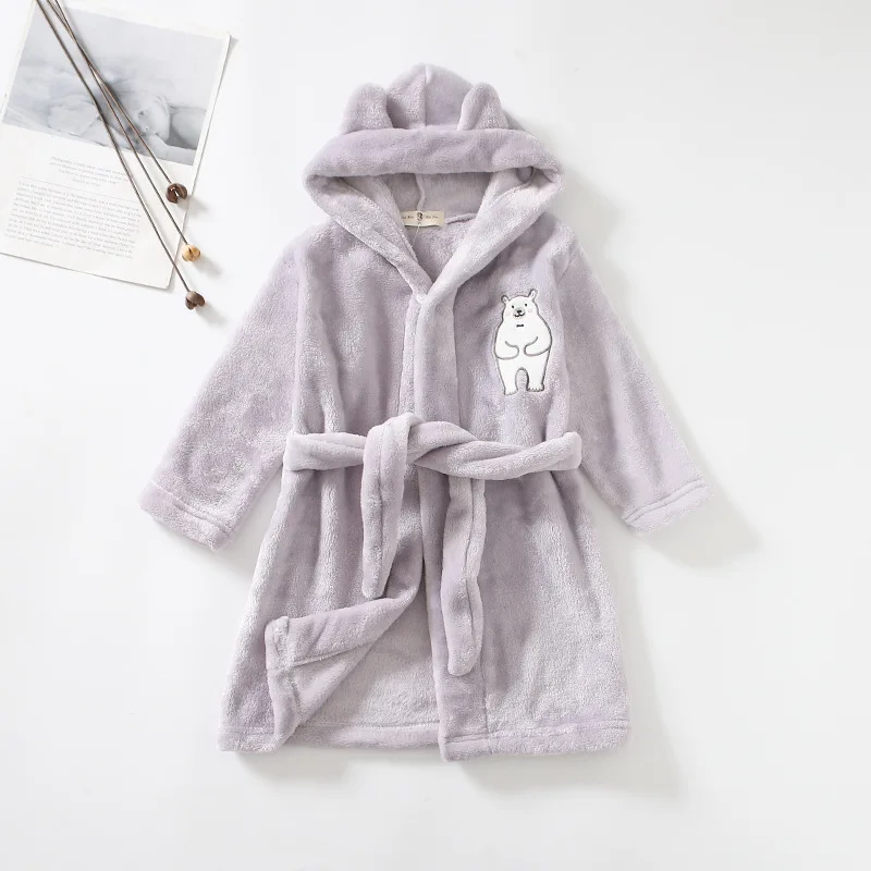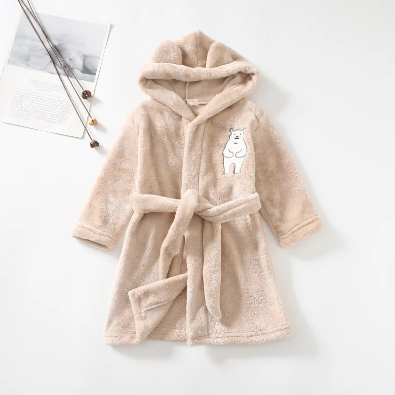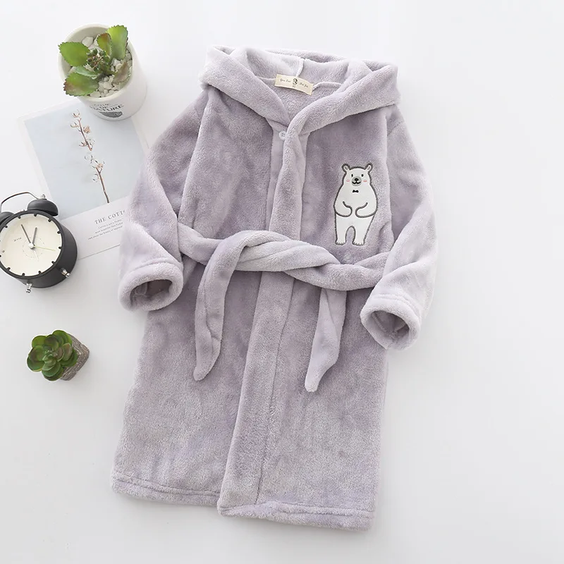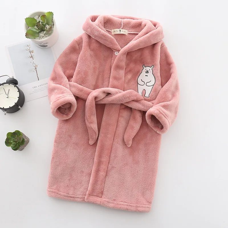 Kids Hooded Lace-up Bathrobe Winter Baby Boys Girls Pajamas Robes Cartoon Animals Girls Boy Sleepwear Bathrobe Girls Clothing