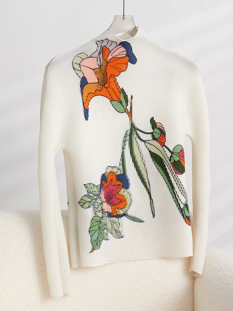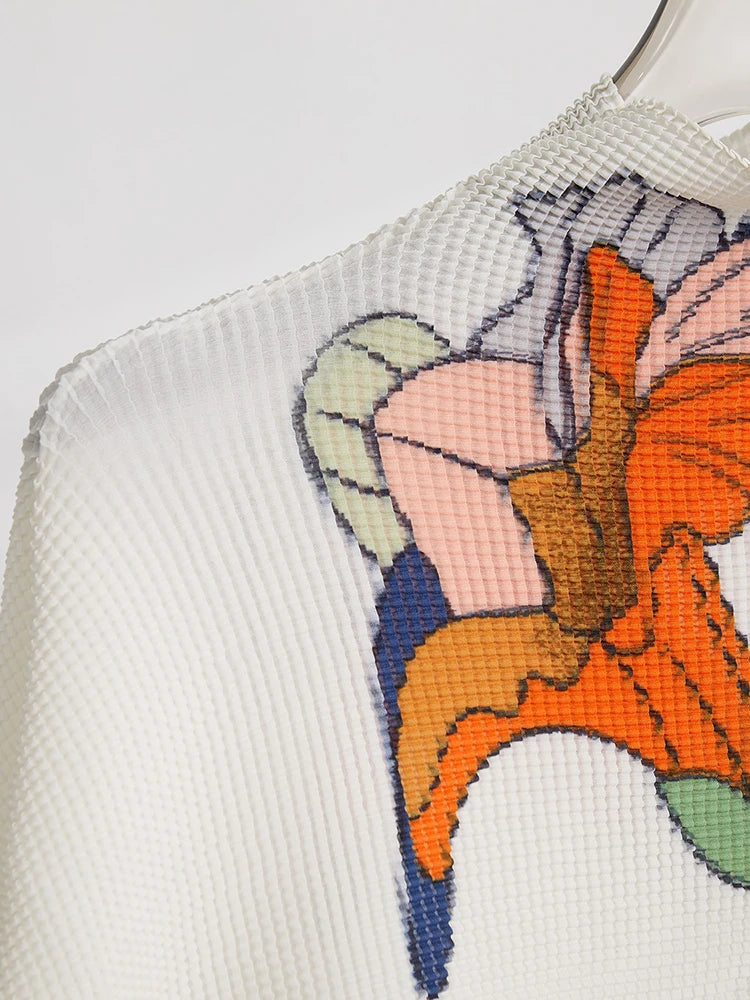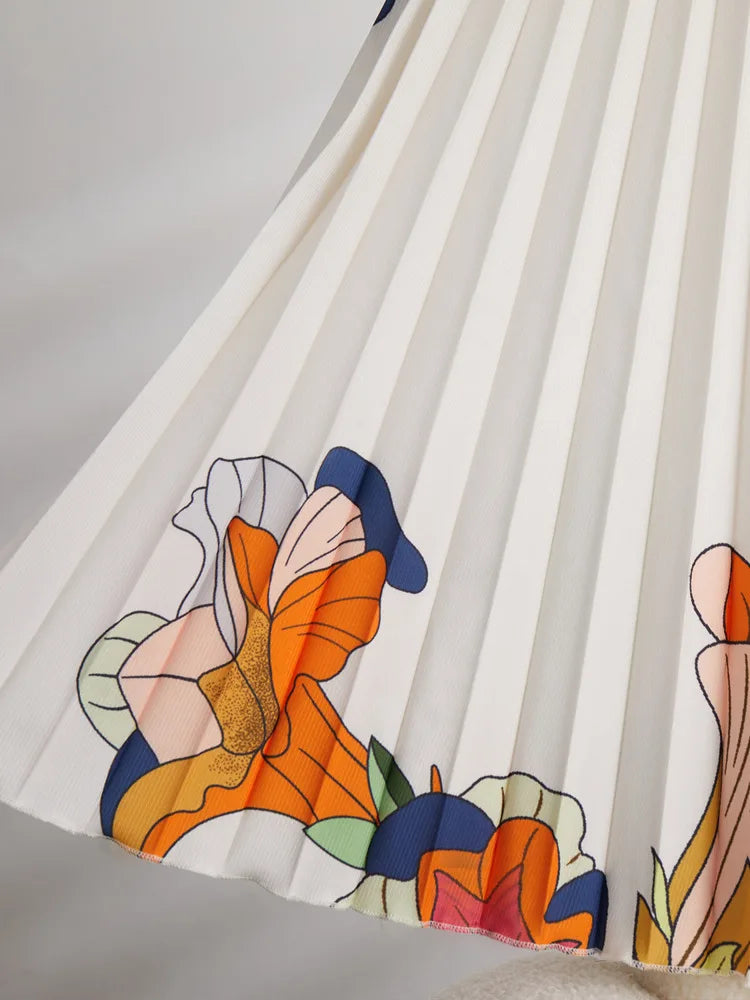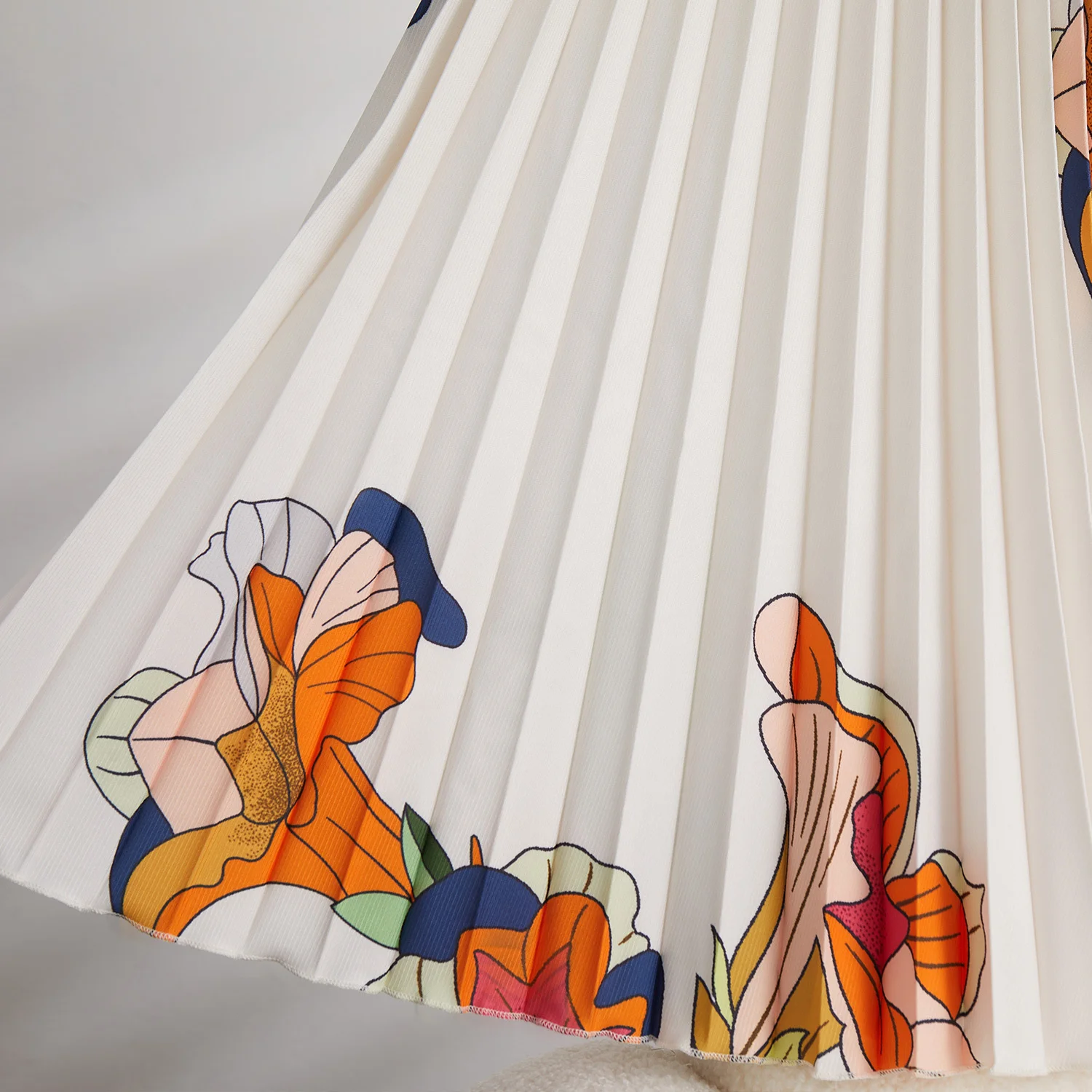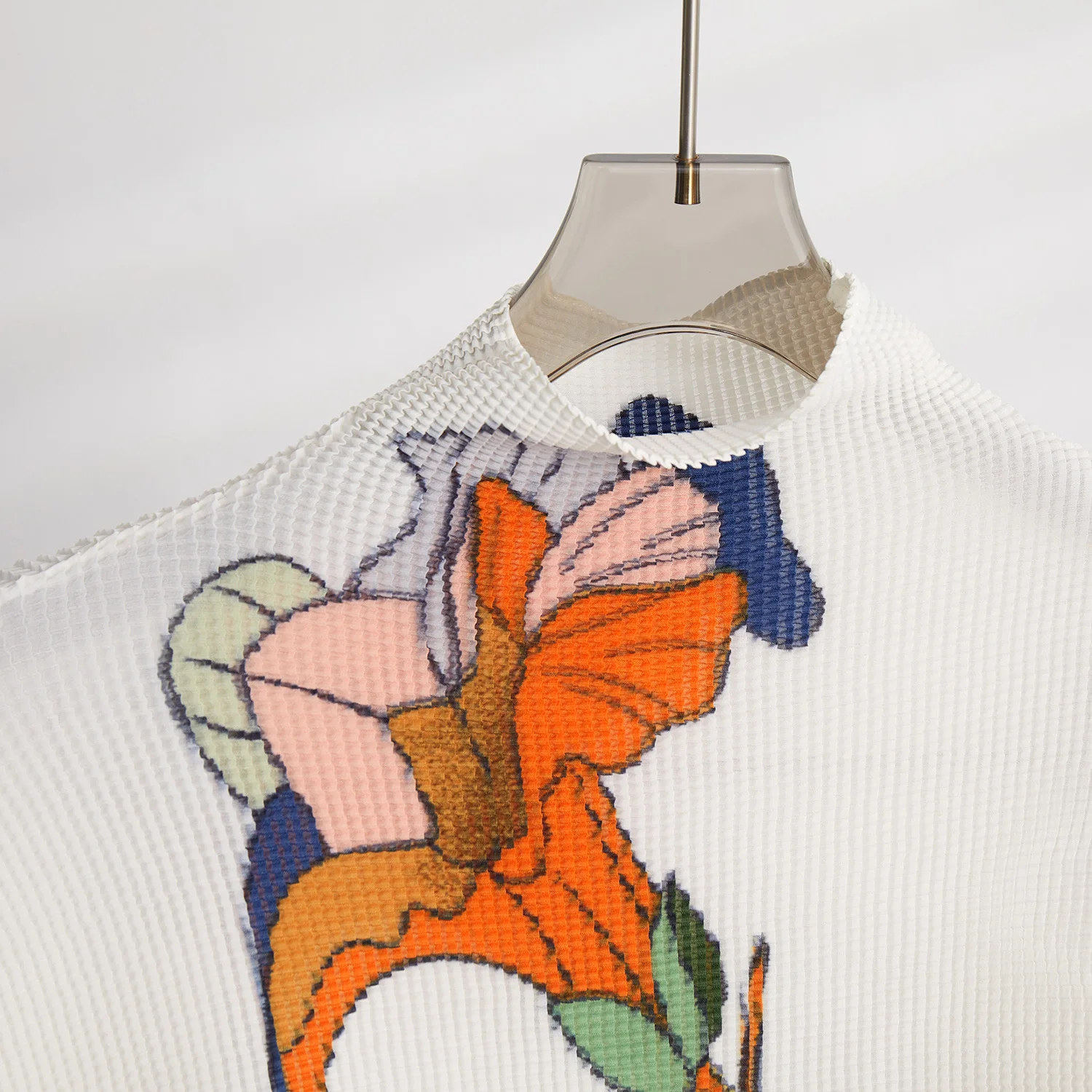LANMREM Printed New 2 Pieces Skirt Set O-neck Long Sleeves Slim Tops High Elastic Waist Loose Skirts Female Clothes 2024 2YA758