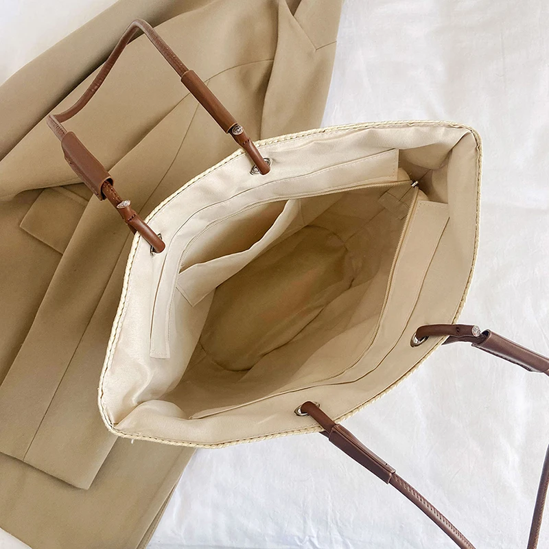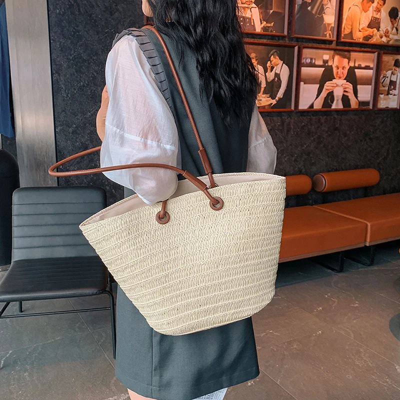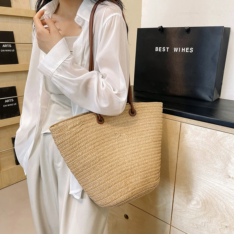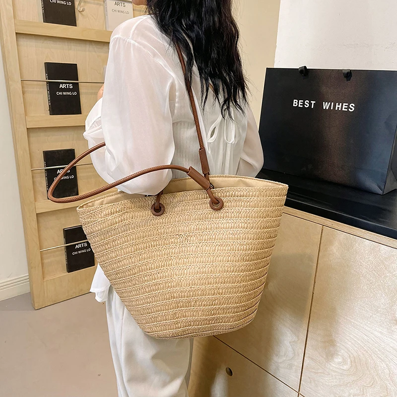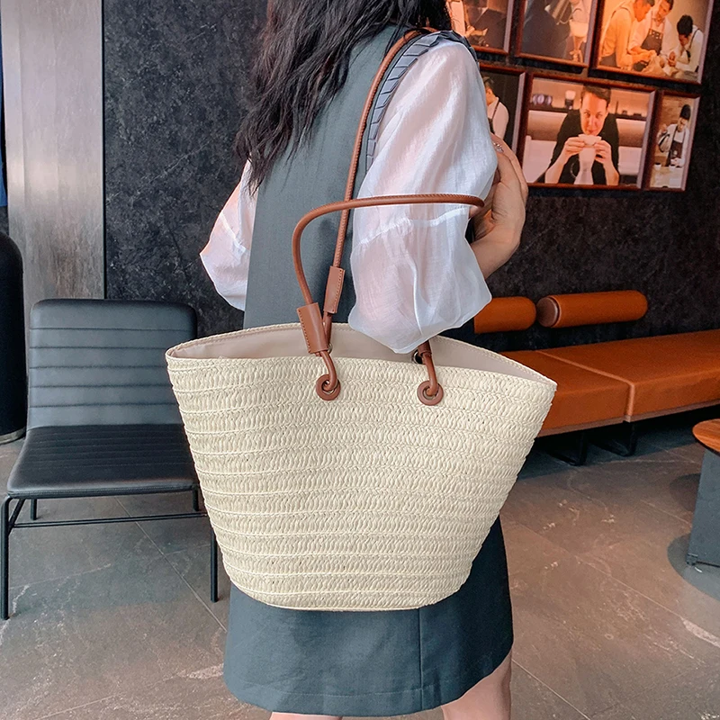 Large Design Straw Shoulder Bags for Women 2024 Y2K Korean Fashion Summer Tote Bags Travel Handbags and Purses Lady Beach Bag
