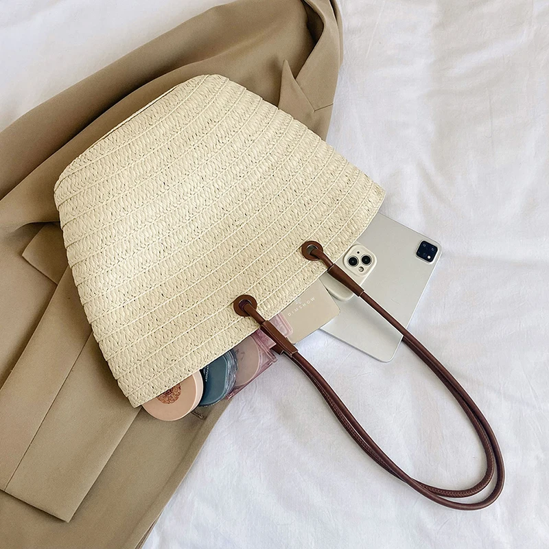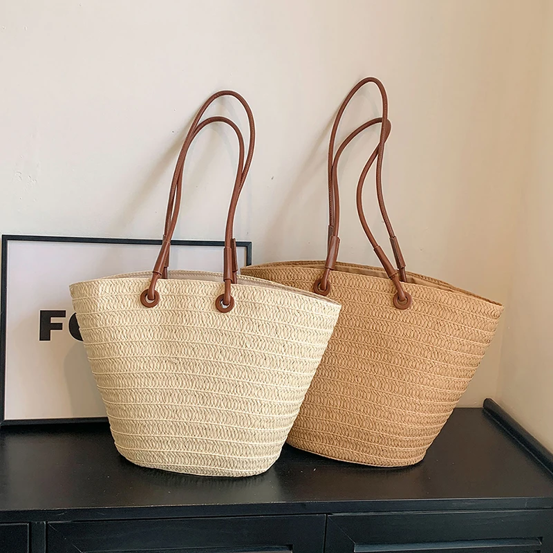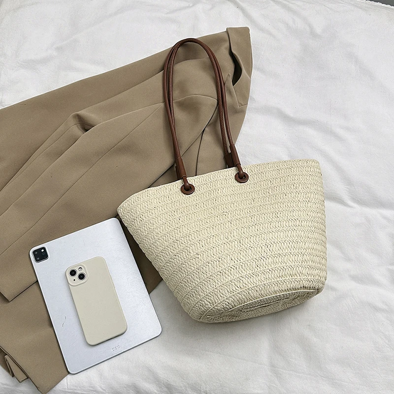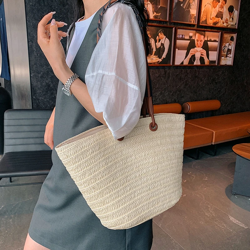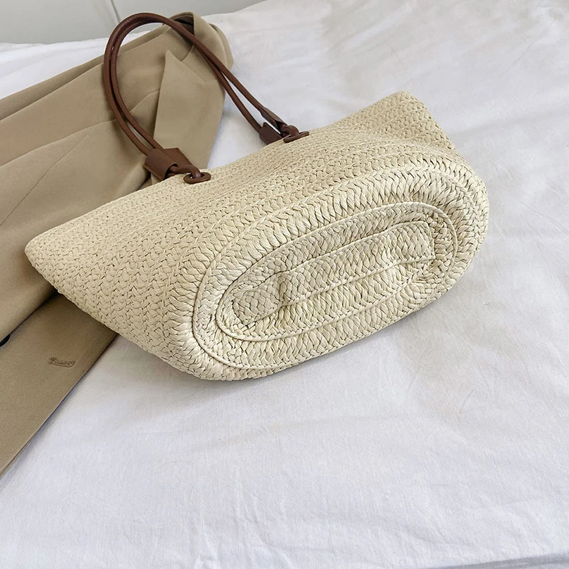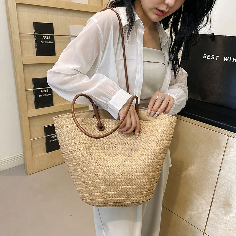 Large Design Straw Shoulder Bags for Women 2024 Y2K Korean Fashion Summer Tote Bags Travel Handbags and Purses Lady Beach Bag
