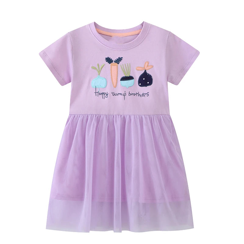 Little maven 2025 New Summer Children's Clothing Baby Girls Kids Clothes Cotton Embroidered Cartoon Carrots Purple Dresses