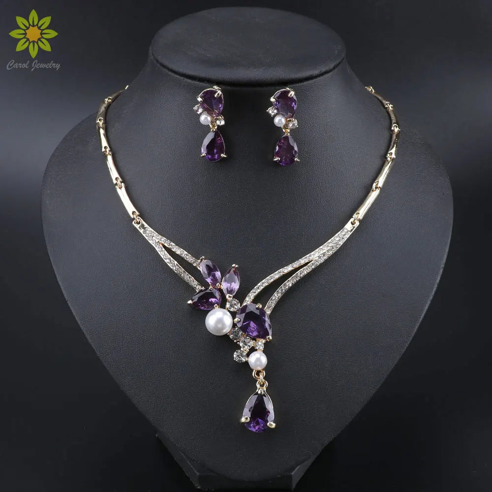 Luxury Dubai Jewelry Sets Purple Crystal Necklace Earrings Set for Women Bridal Jewelry set Accessories Gifts