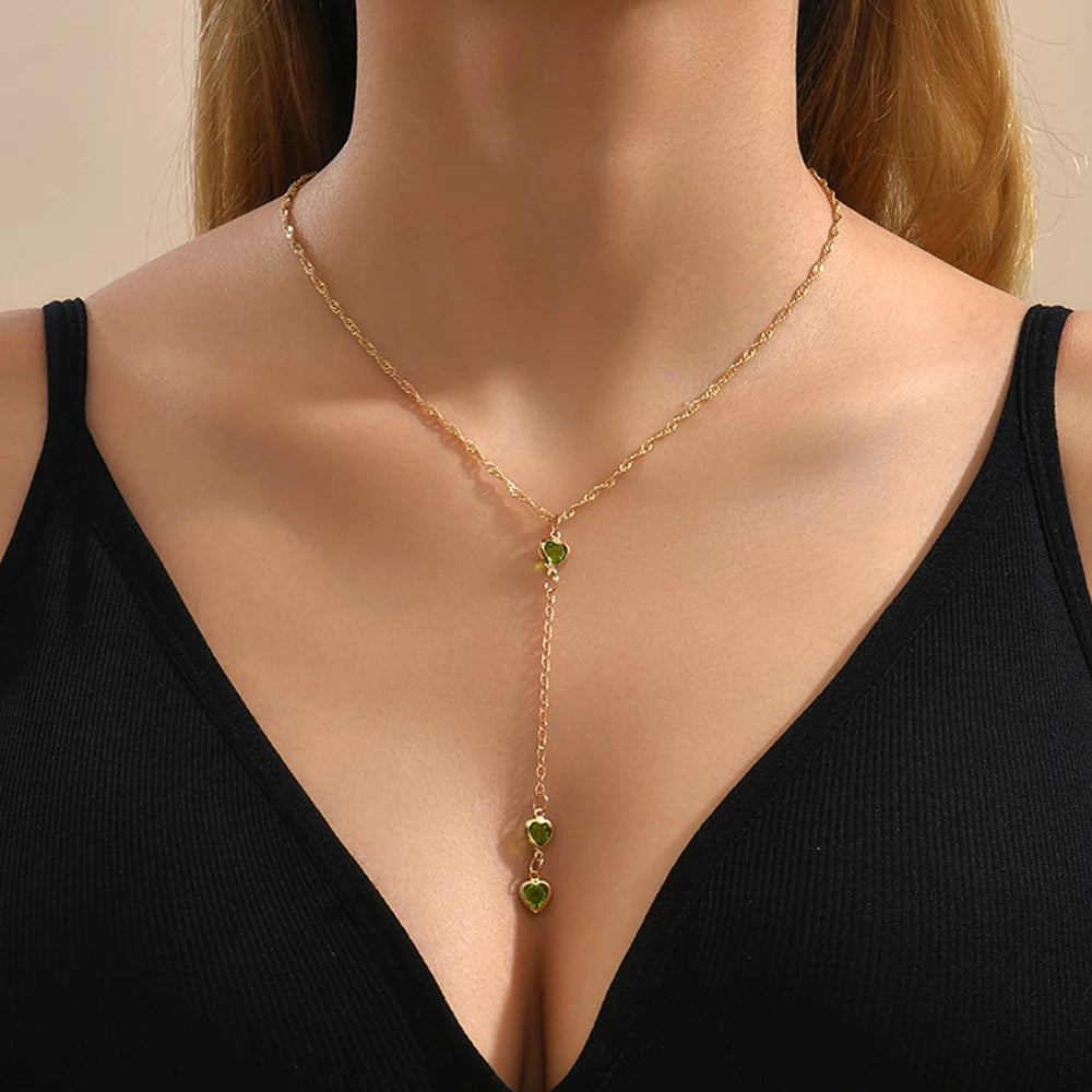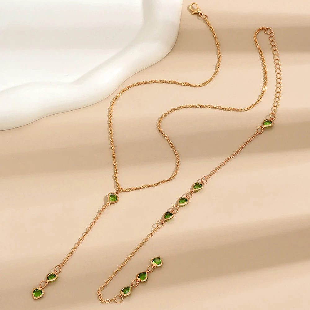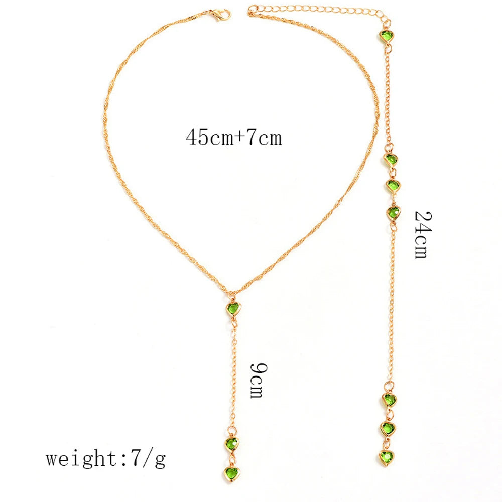 Luxury Green Heart Back Chain Wedding Backless Clothing Jewelry Boho Accessories Crystal Bridal Back Necklace Dress for Women