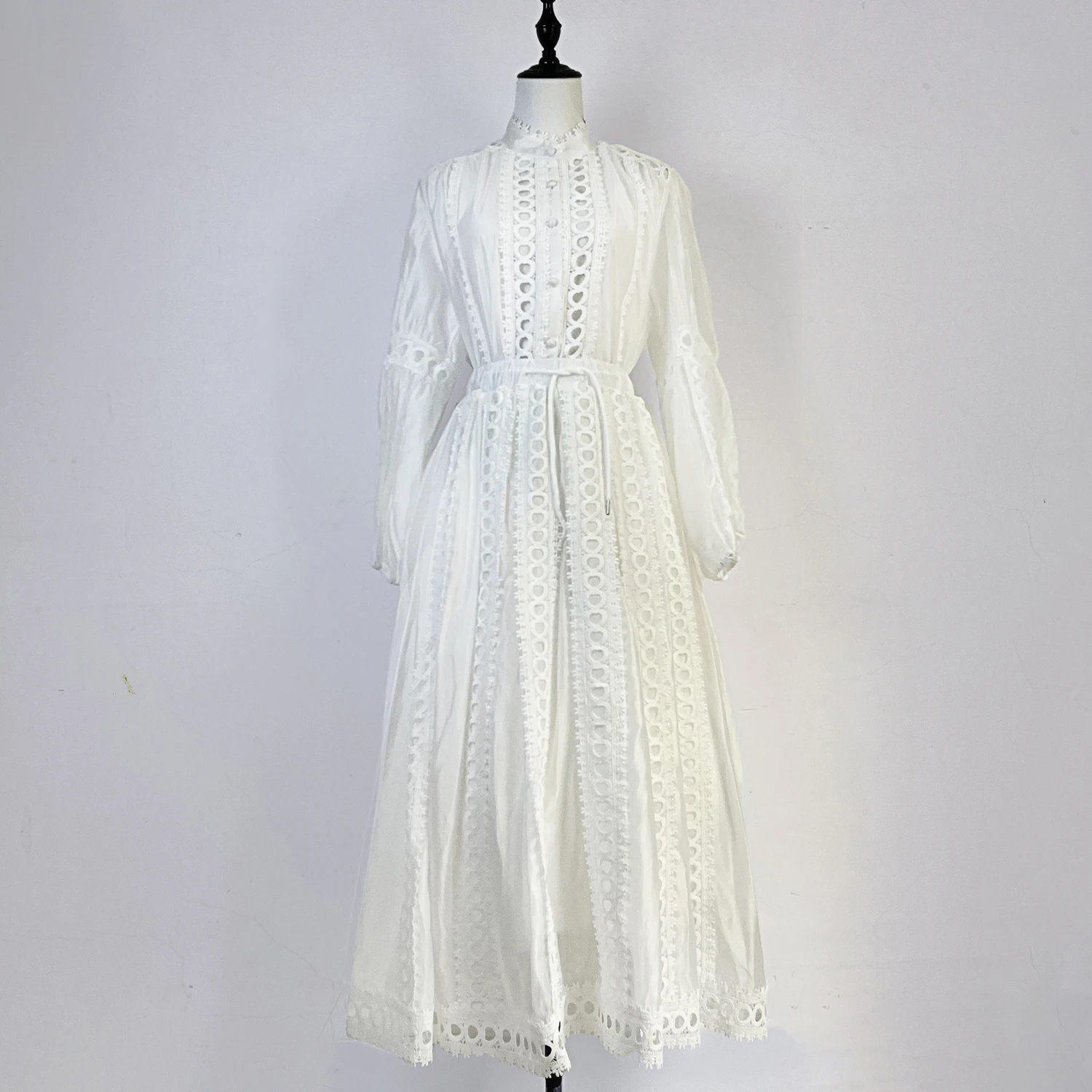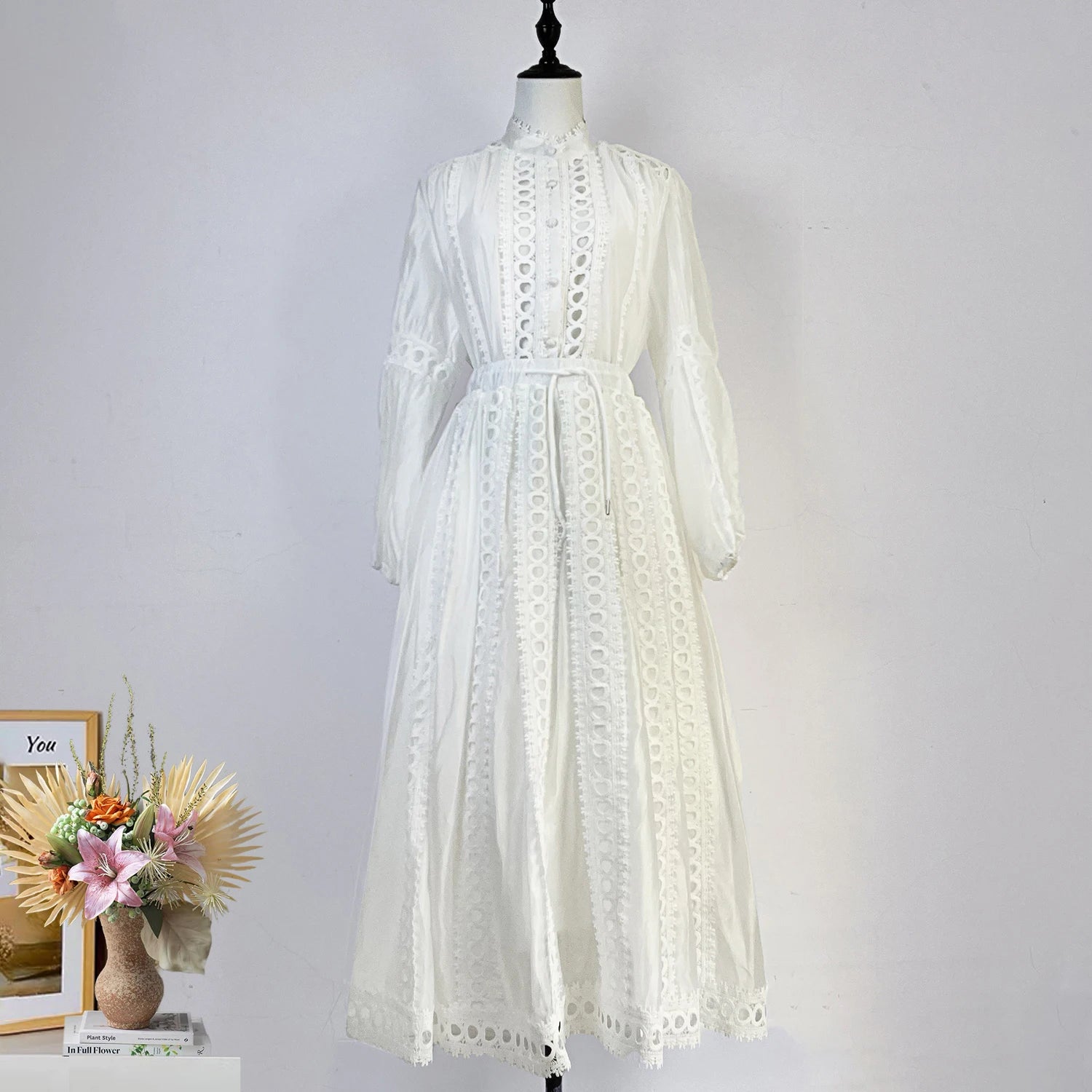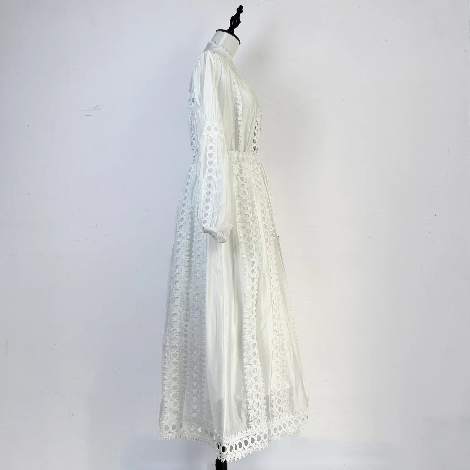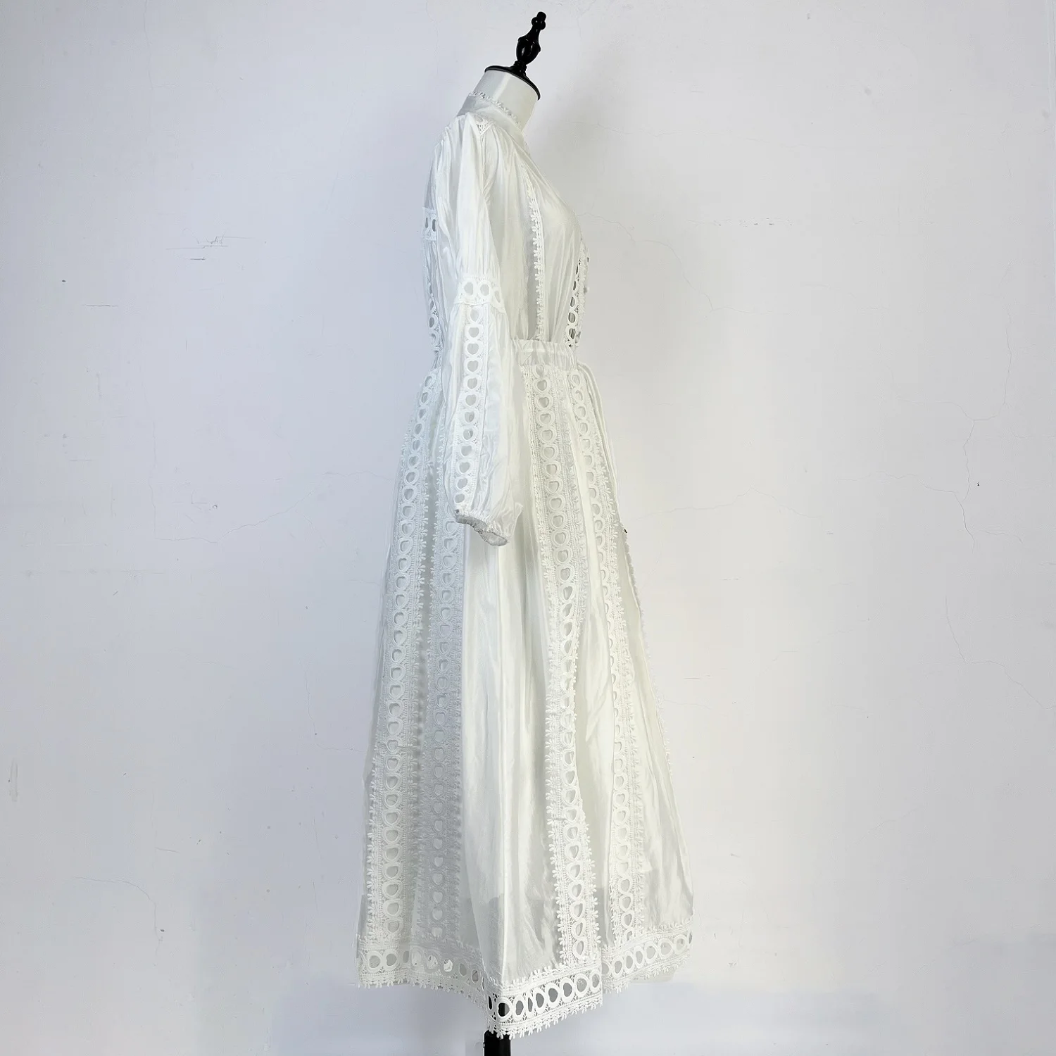 Luxury Long Dresses 2 Piece Sets Women Lace Hollow Out Embroidered Shirt + Maxi Skirts Suits Big Size 2025 Spring Party Vestidos