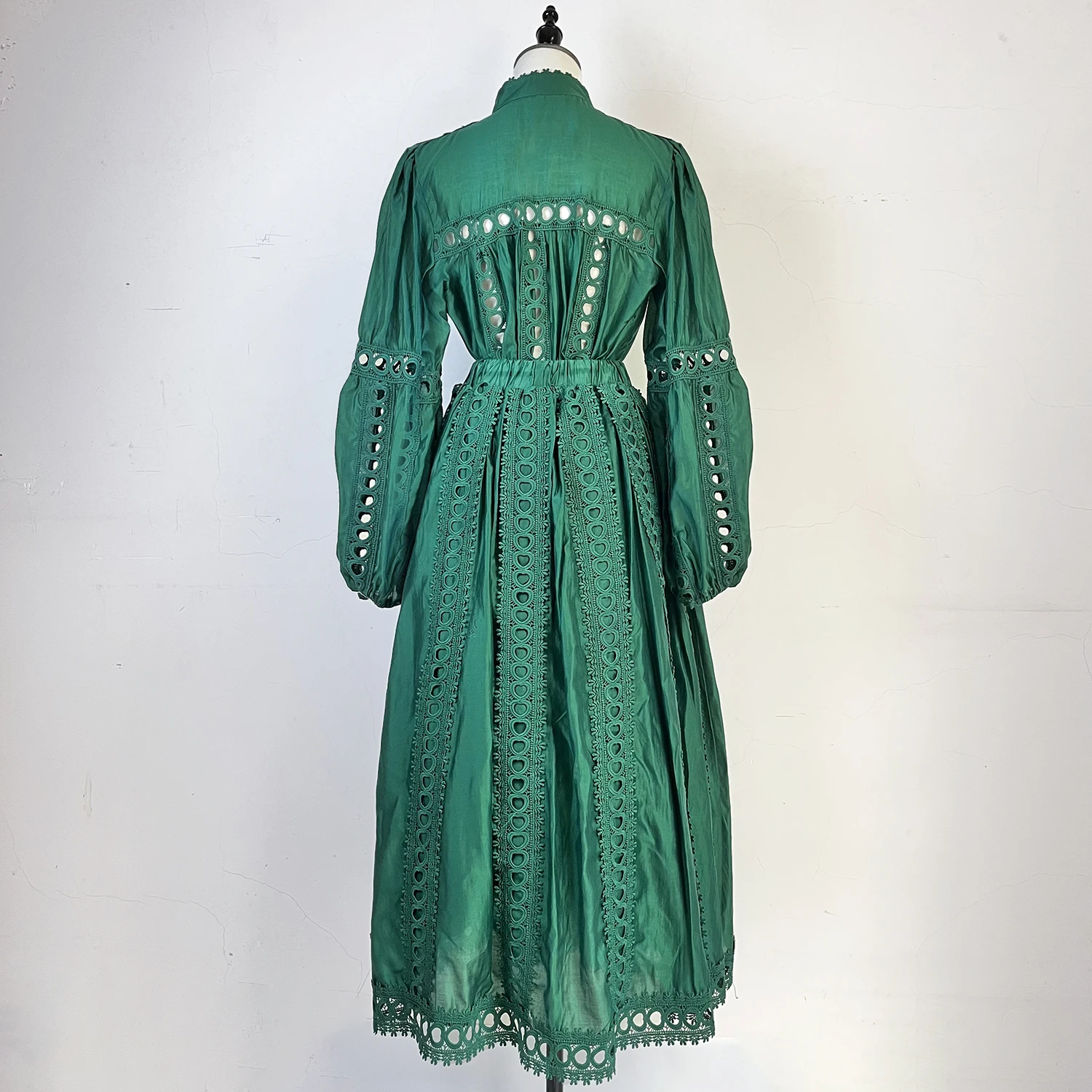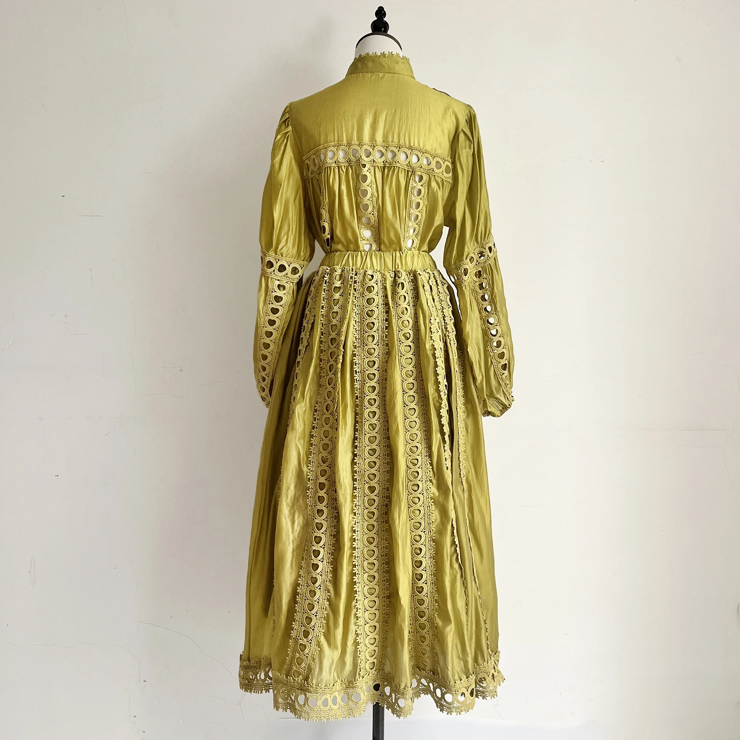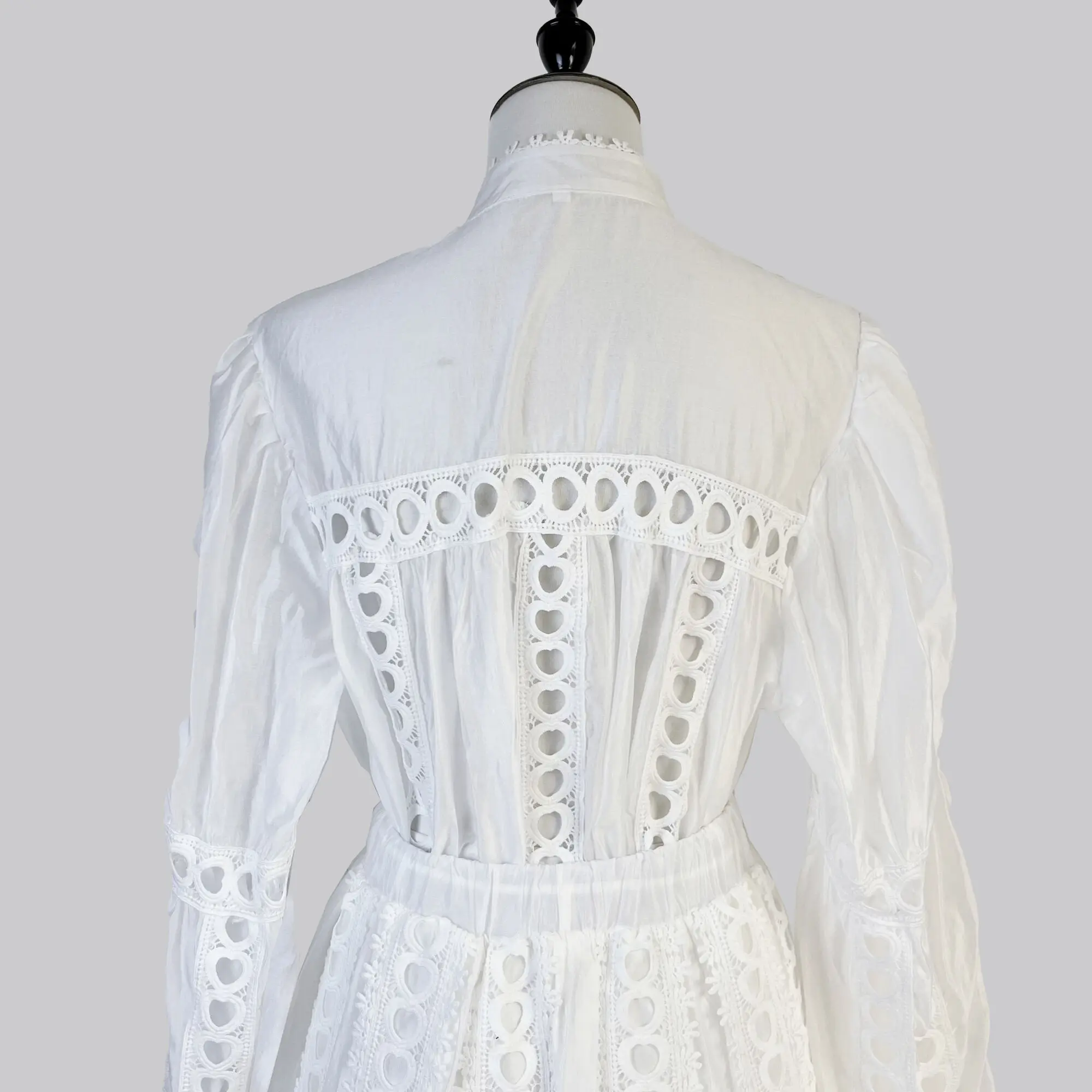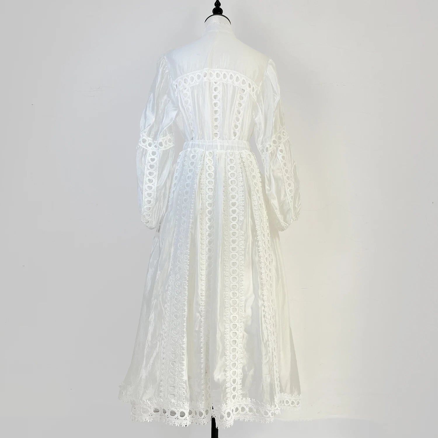 Luxury Long Dresses 2 Piece Sets Women Lace Hollow Out Embroidered Shirt + Maxi Skirts Suits Big Size 2025 Spring Party Vestidos