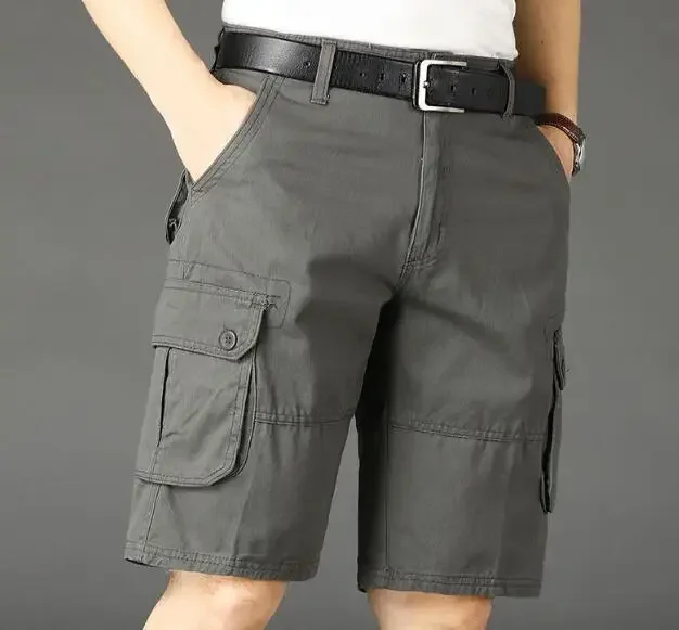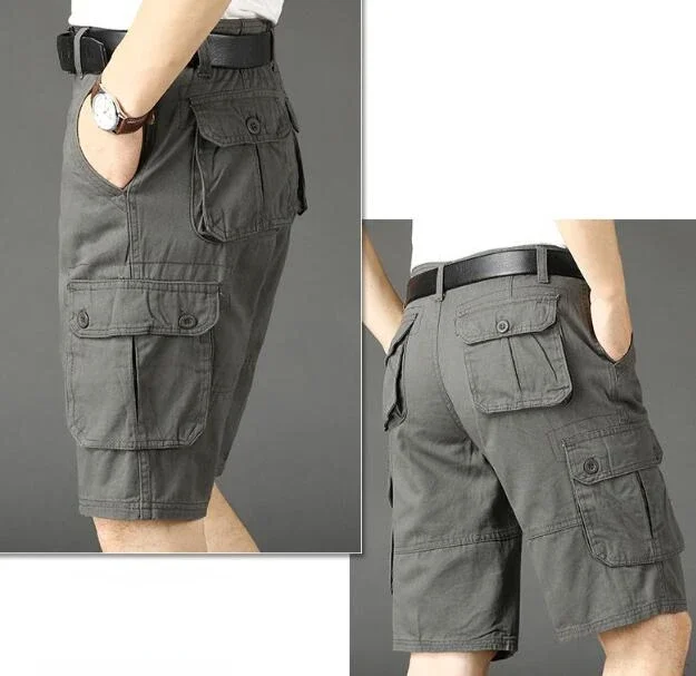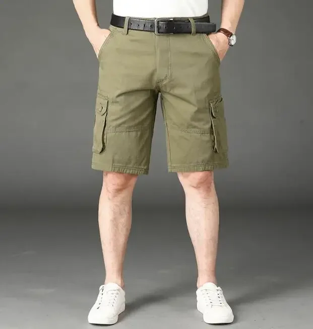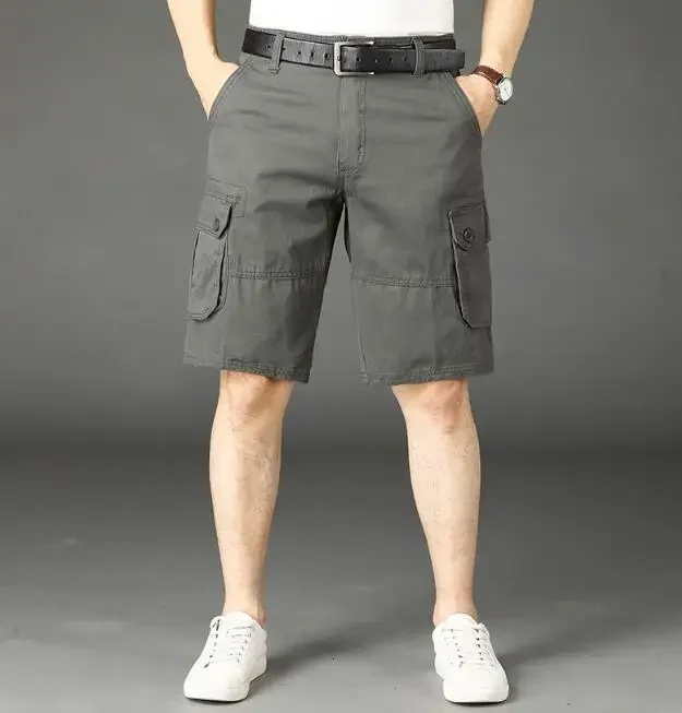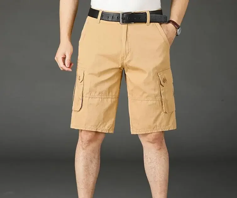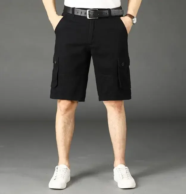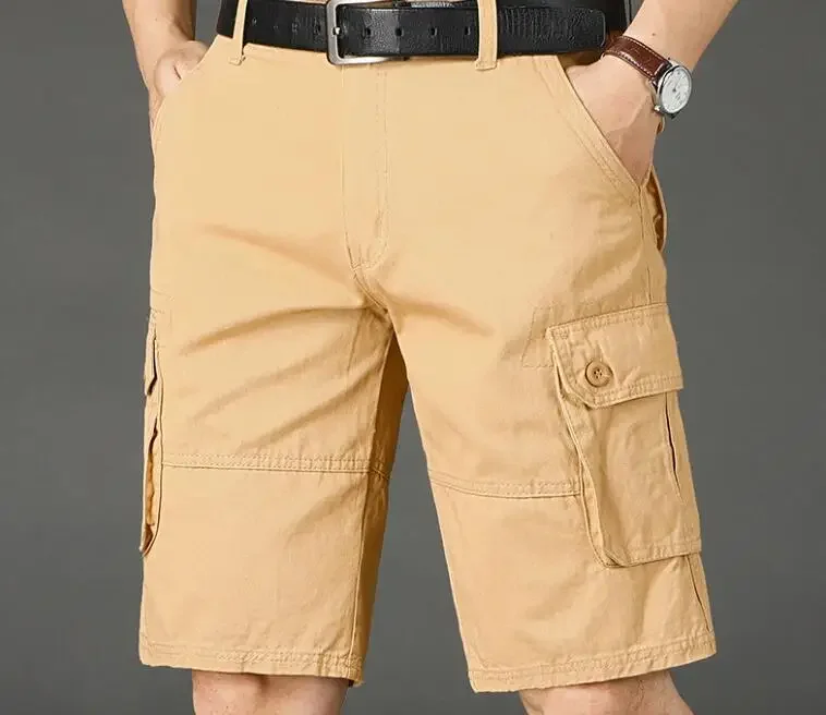 Male Bermuda Short Pants Button Khaki Solid Men's Cargo Shorts Streetwear Wide Vintage Baggy Harajuku Loose 2024 Fashion Cotton
