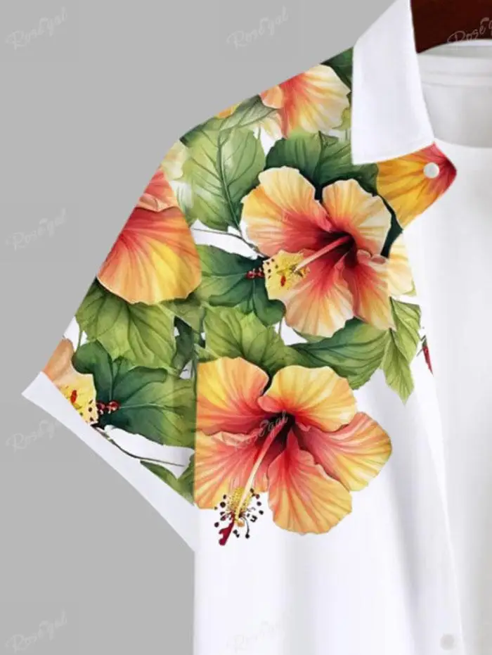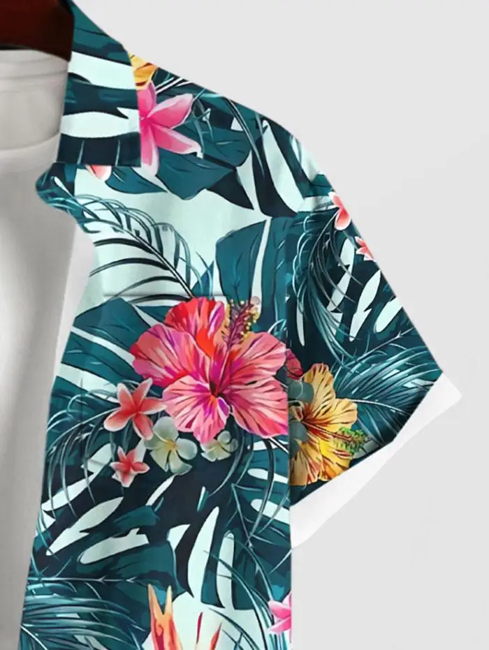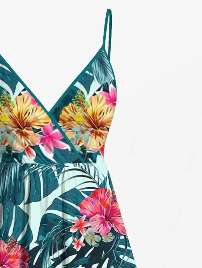 Matching Set Couples Clothes Hawaiian Casual Vacation Outfits, V Neck Women Cami Dress 3D Graphic Print Buttons Shirt For Men