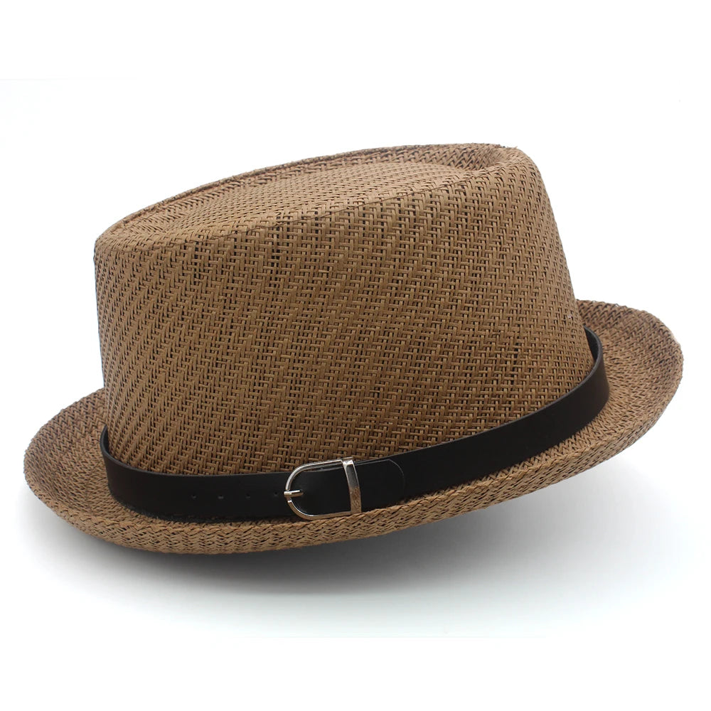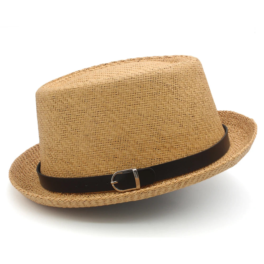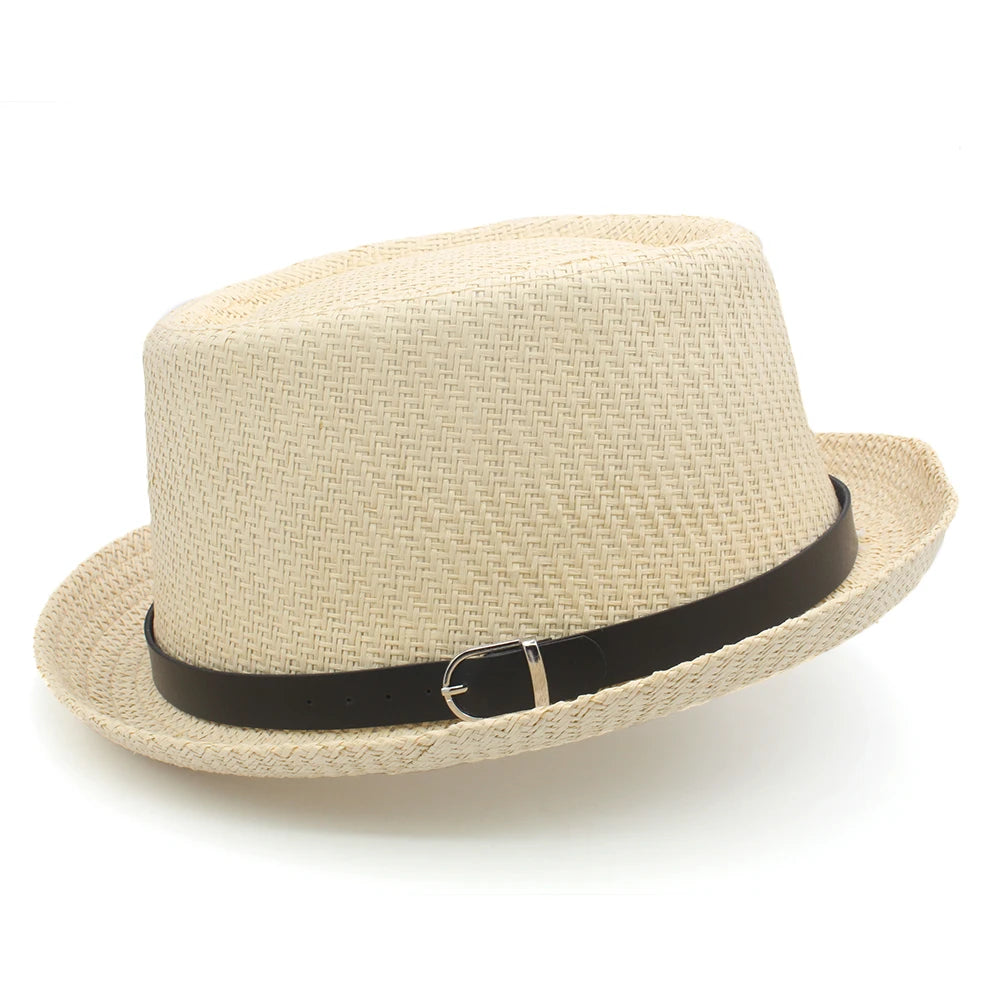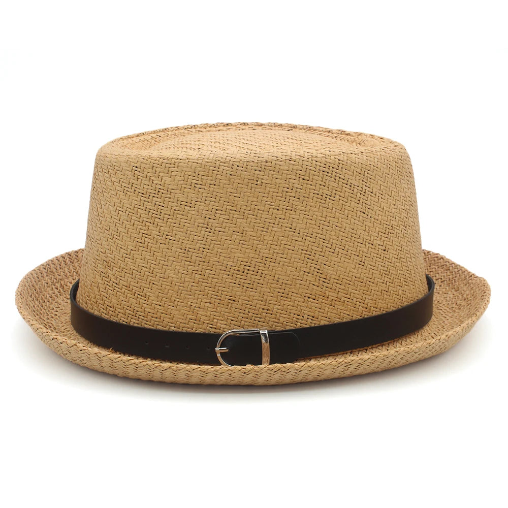 Men Women Straw Pork Pie Hats Summer Sunhat Boater Caps Sailor Sombrero Beach Fedora Trilby Outdoor Travel US Size 7 1/4 UK L