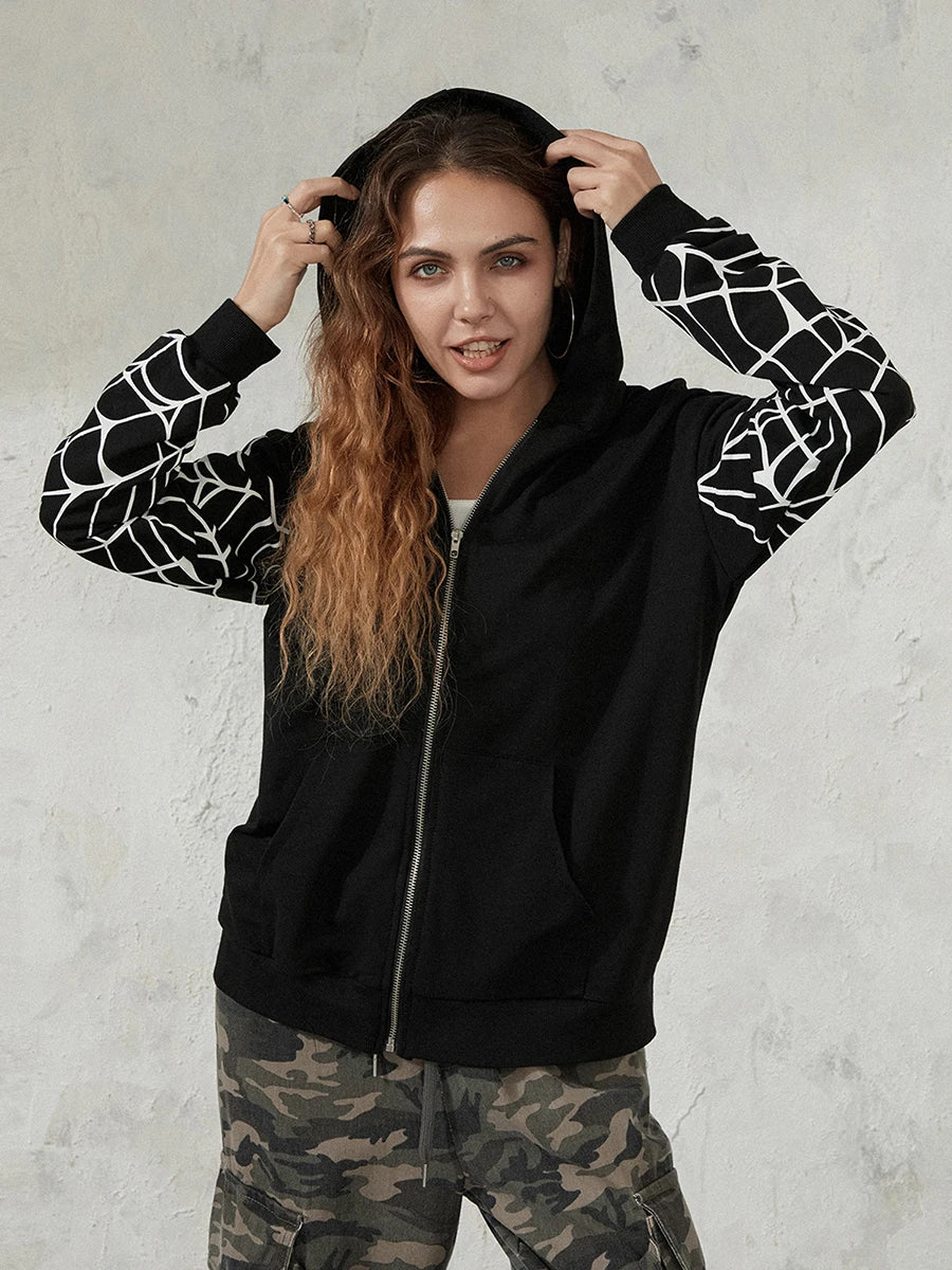 Men Women Zip Up Hoodies Fashion Spider Web Print Long Sleeve Oversized Sweatshirts Streetwear TopsFeatures:
