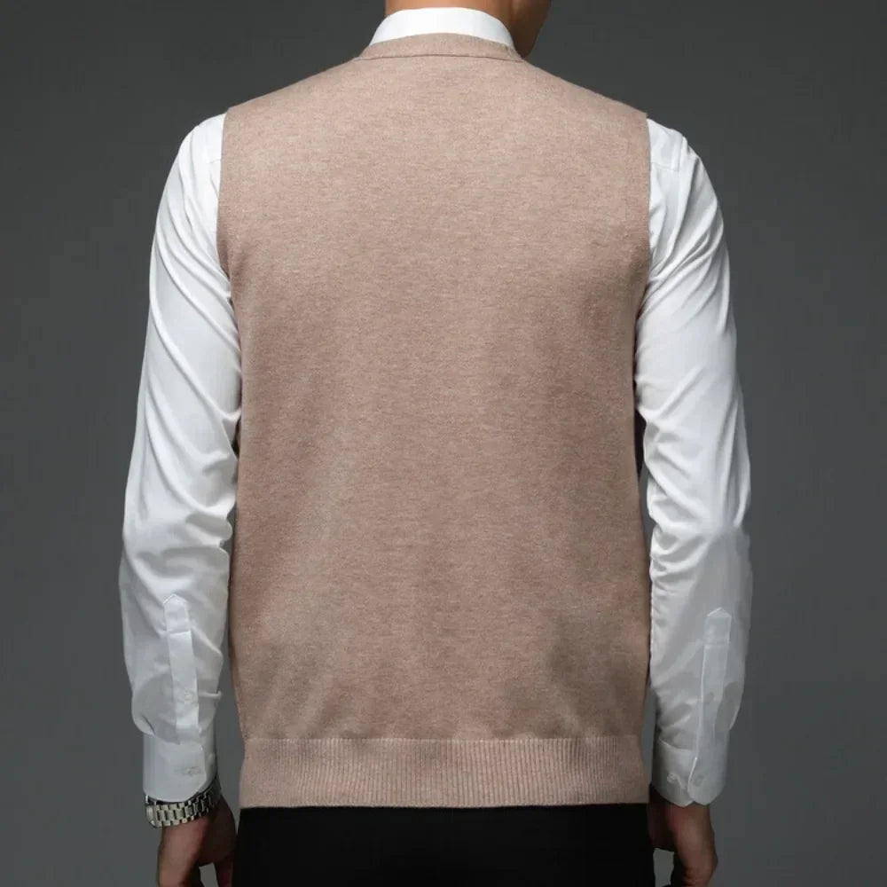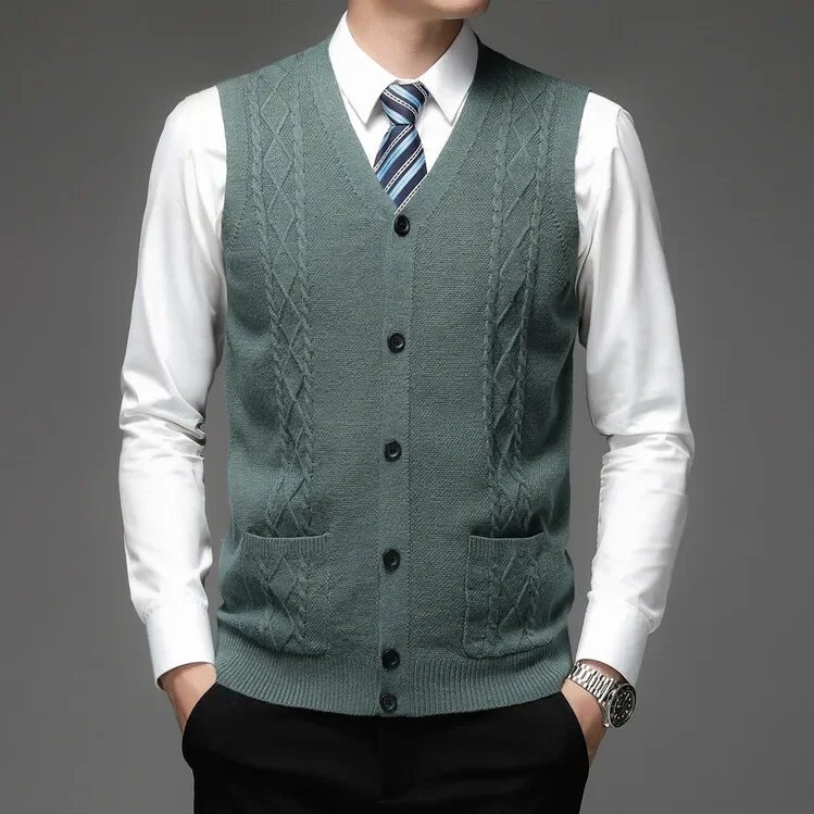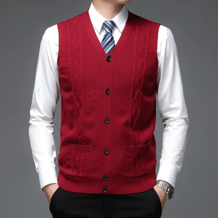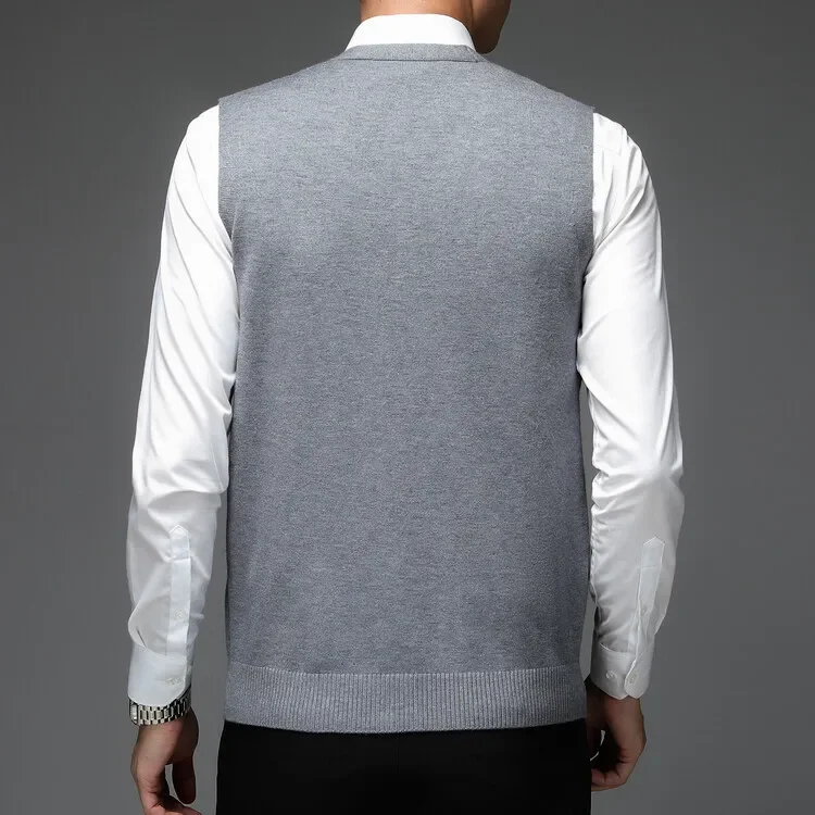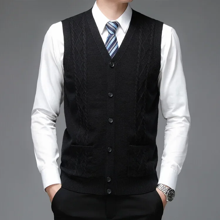 Men's Business Casual Pullover Wear Warm Sleeveless Velvet Knitted Sweater Vest Tops