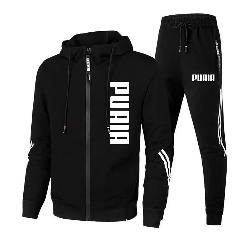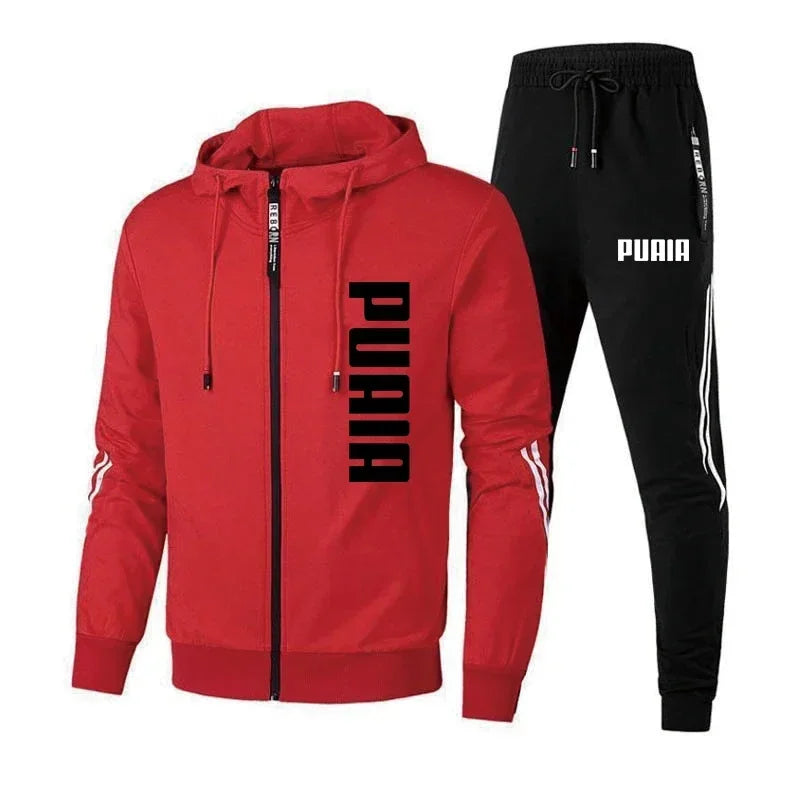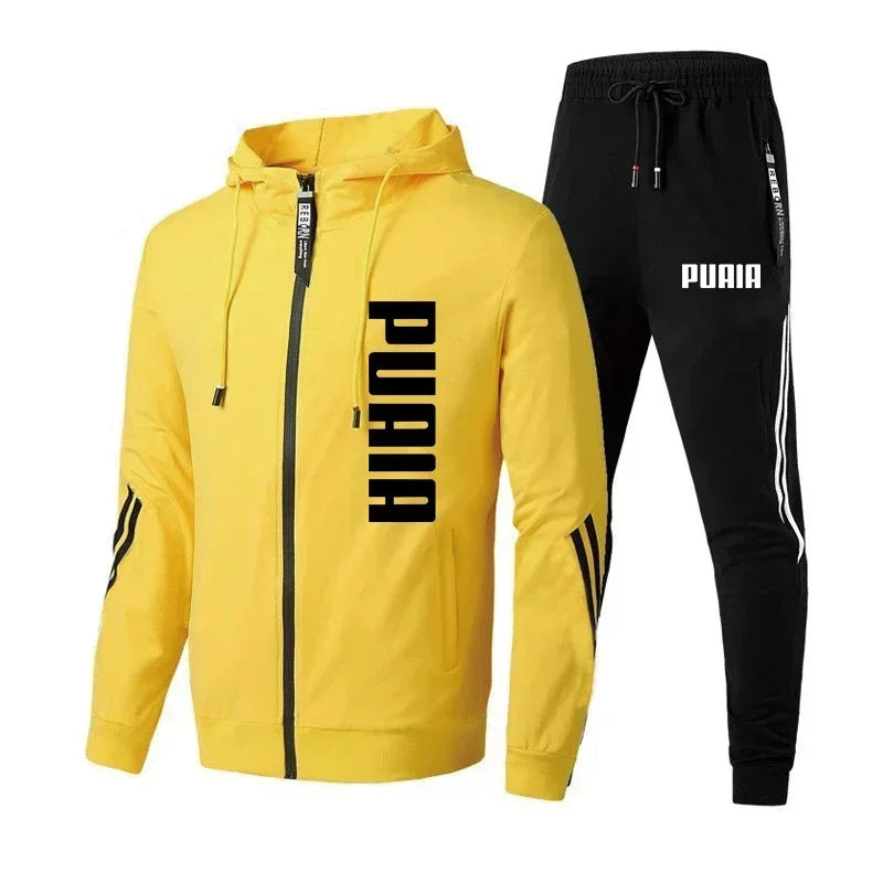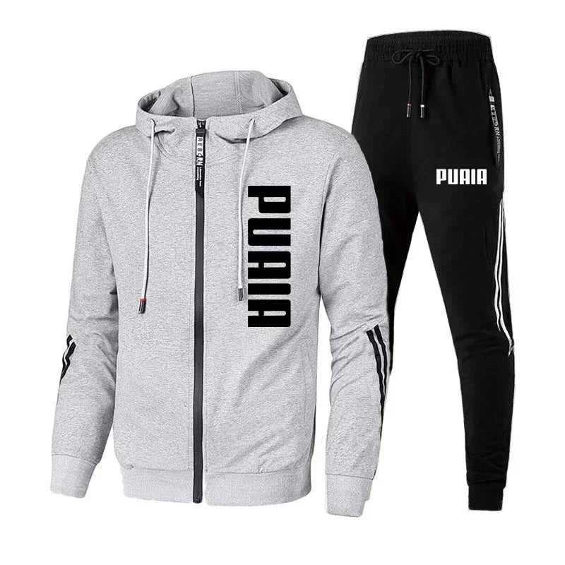 Men's clothing printed zipper hooded jacket + running pants two-piece spring and autumn sports fitness casual wear fashion suit