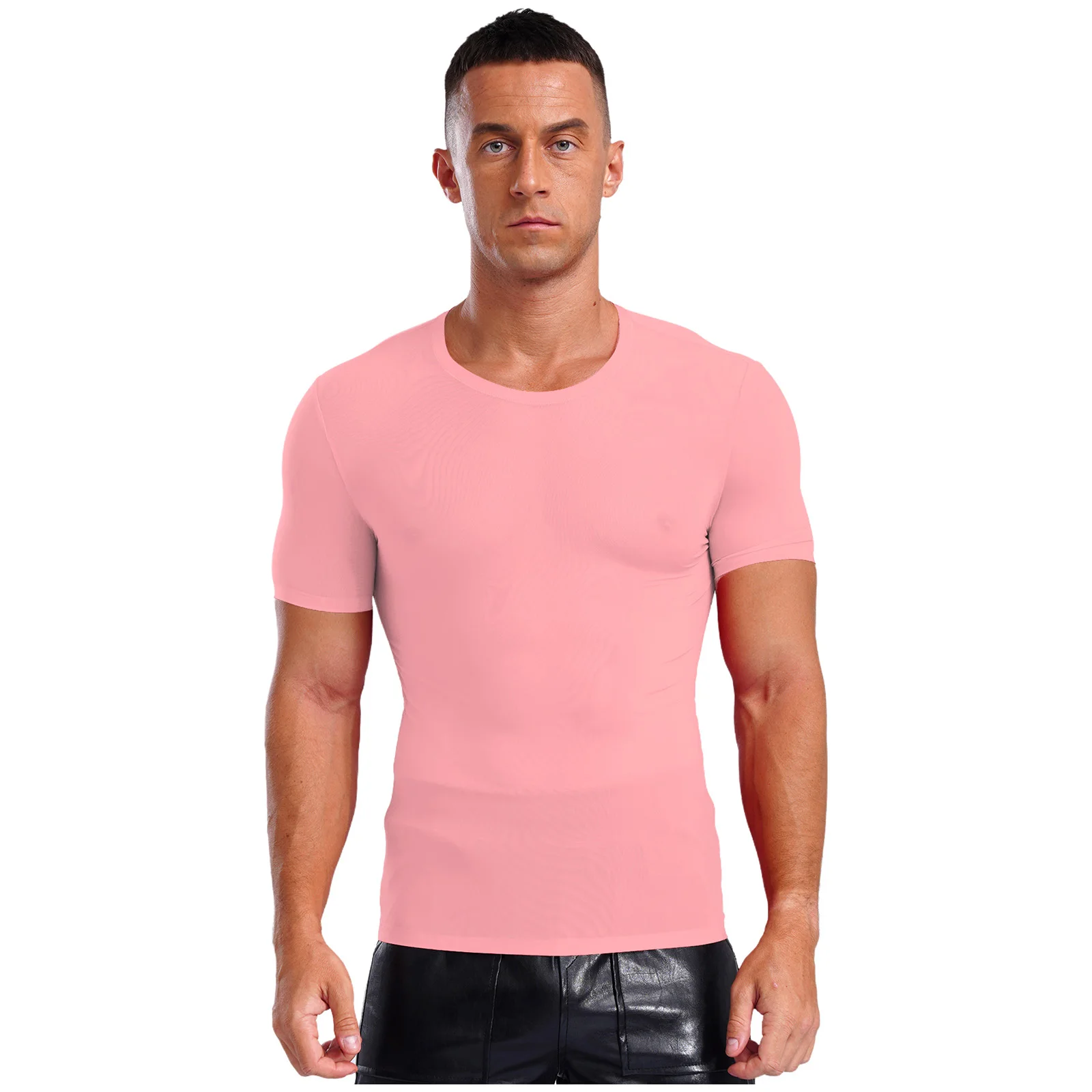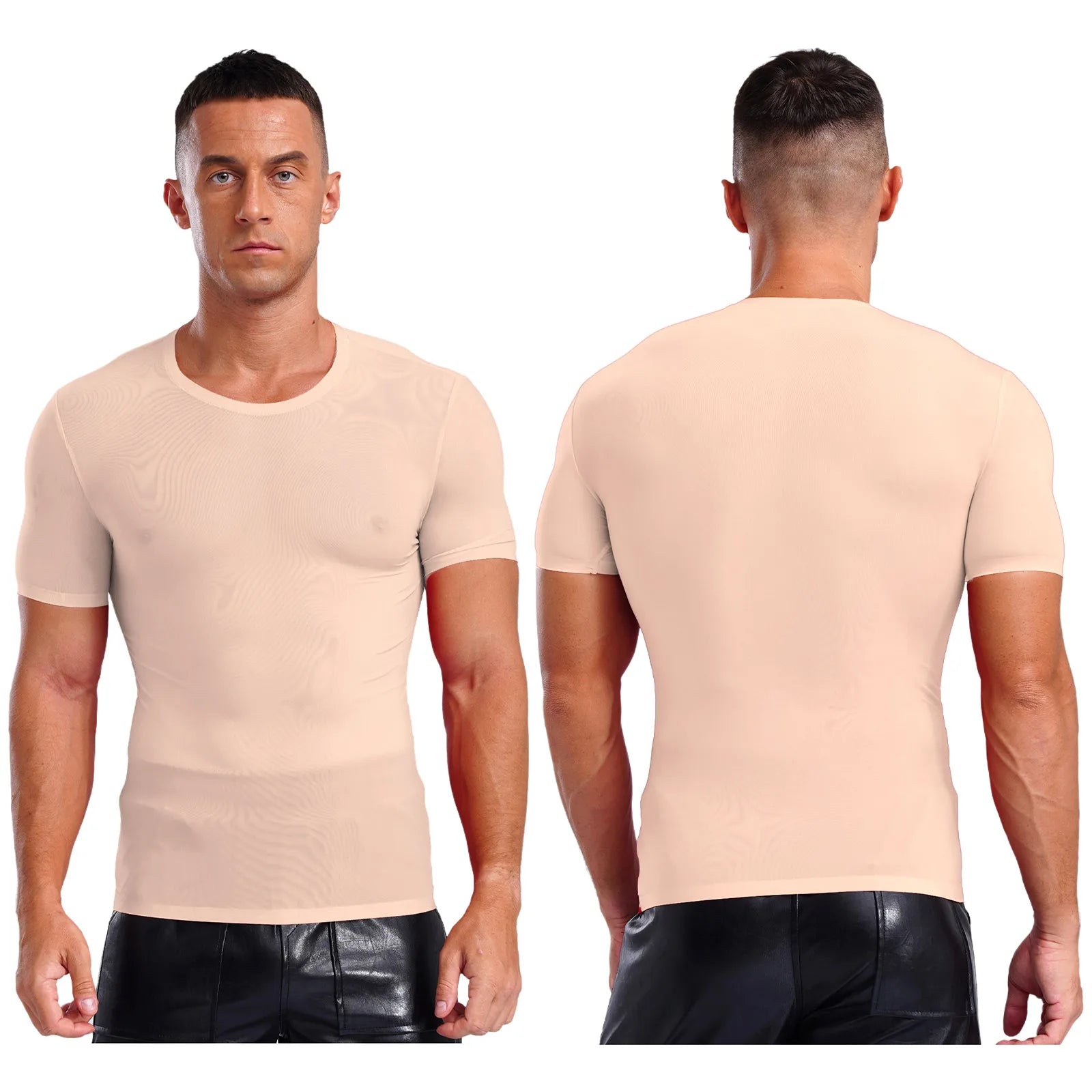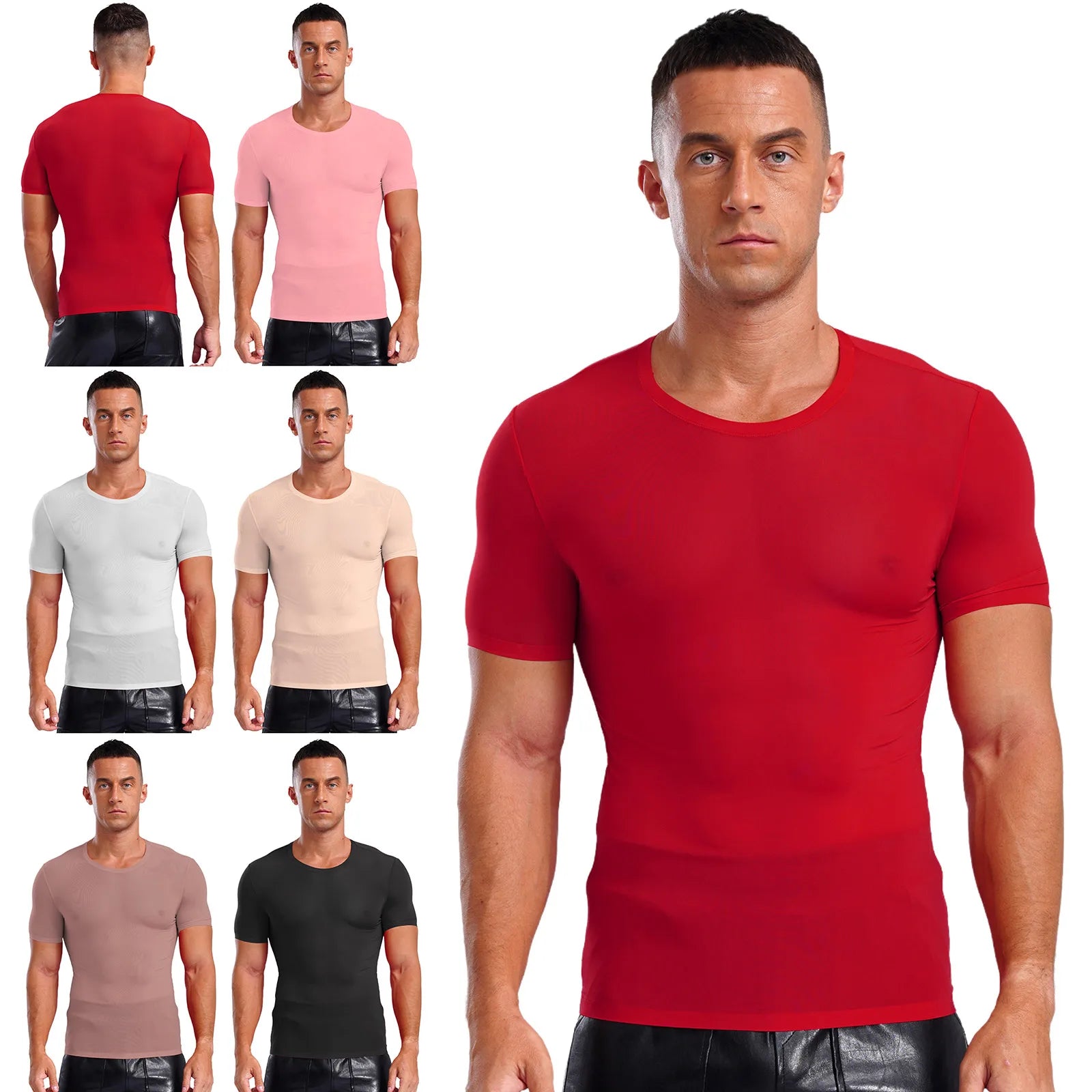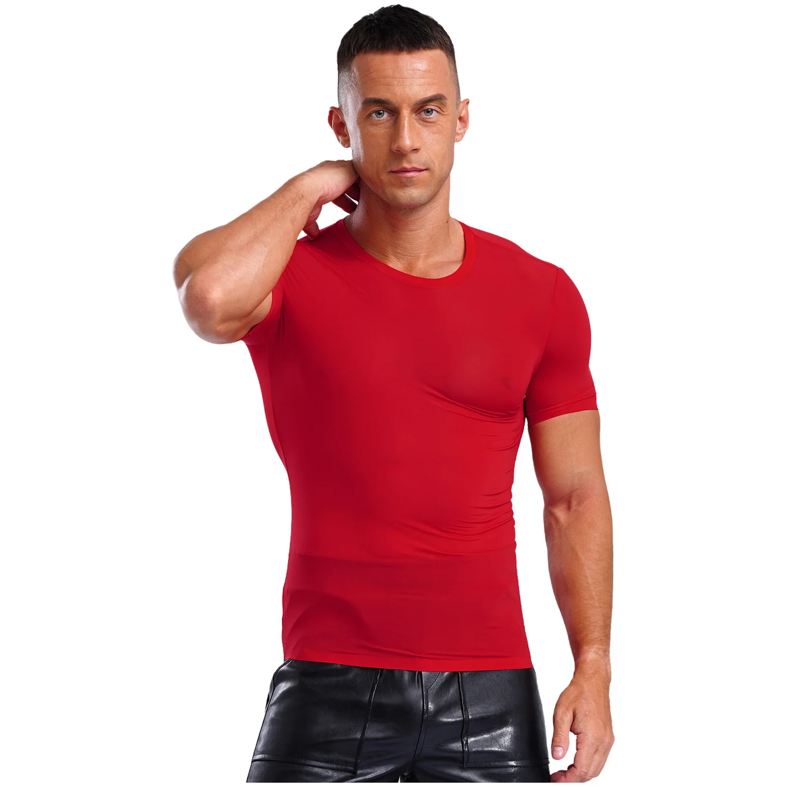 Designed with round neck, short sleeve, solid color and slim fit, ultra-thin T-shirt for men is perfect for sports and daily wear.