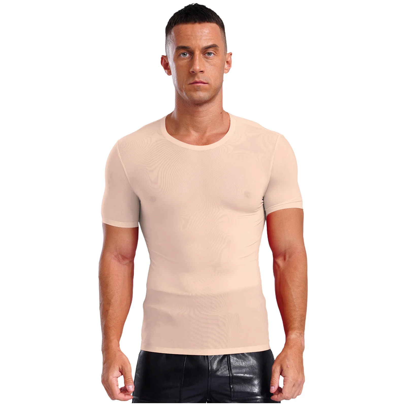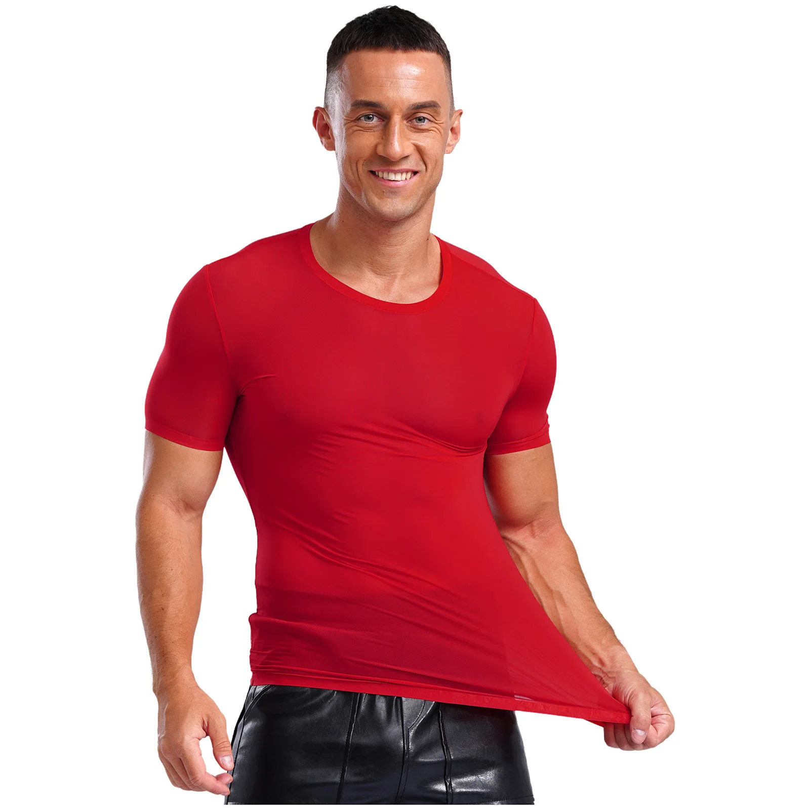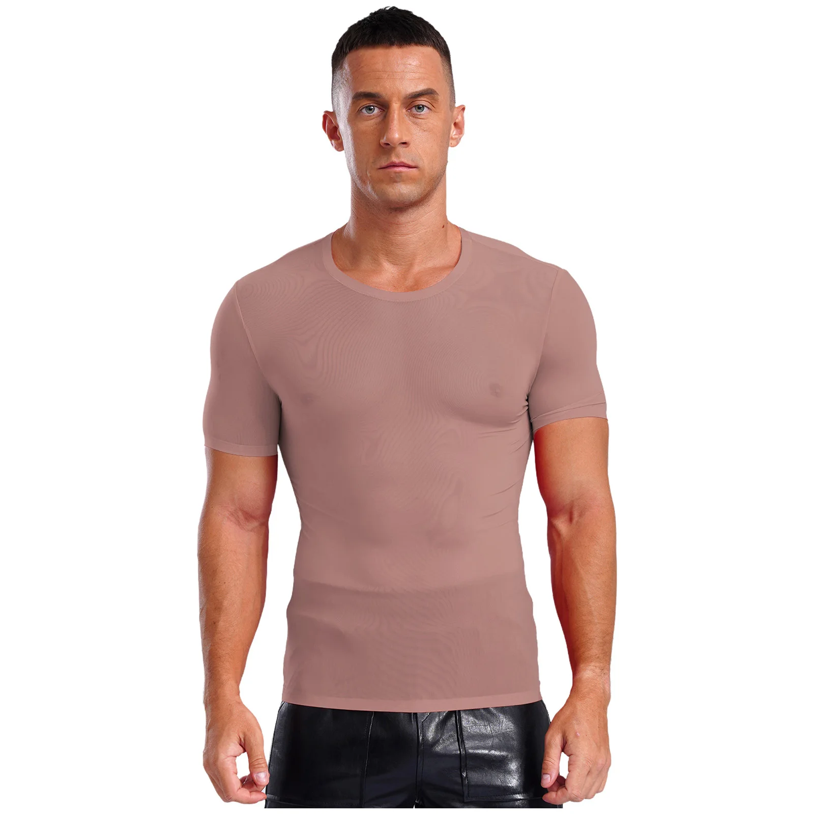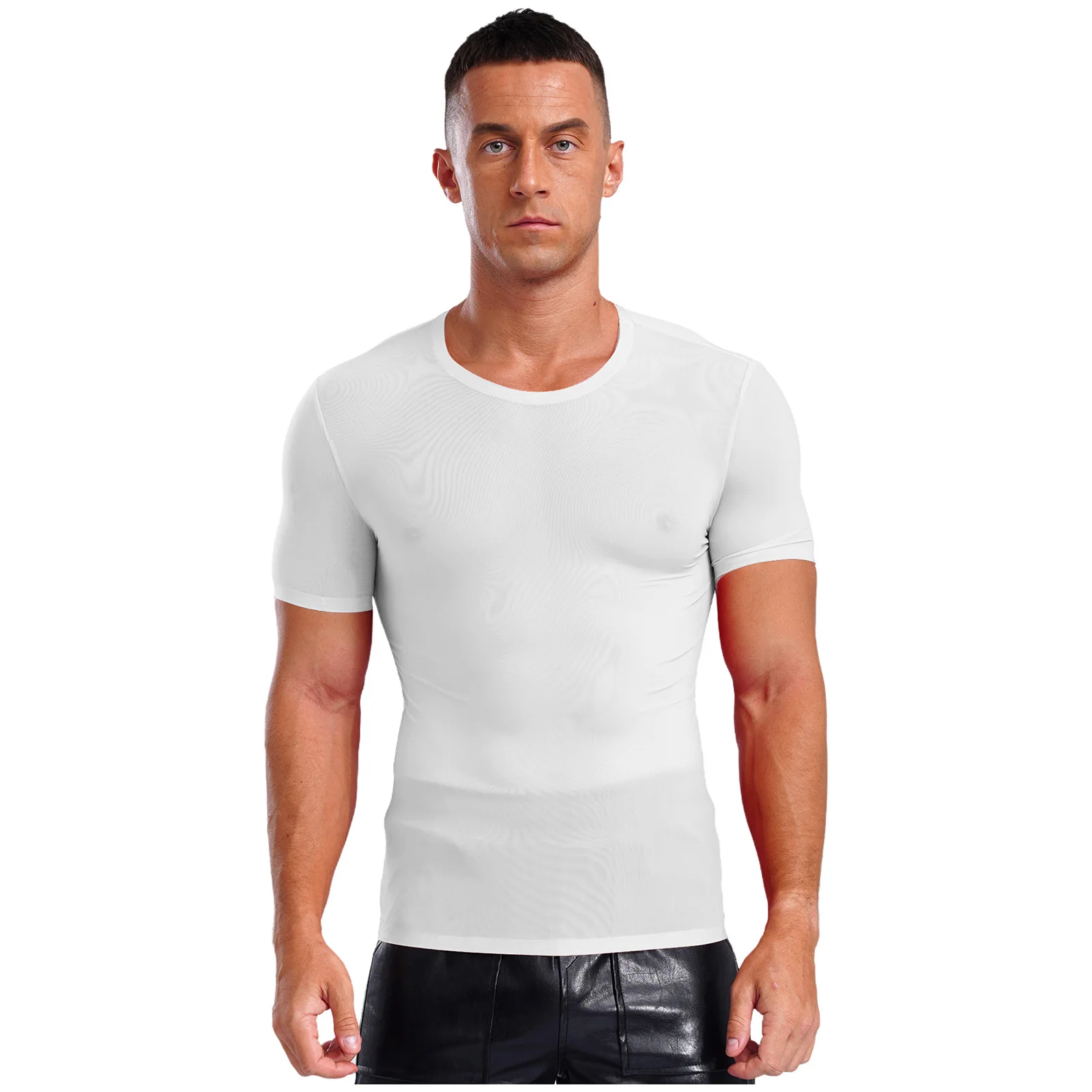 Designed with round neck, short sleeve, solid color and slim fit, ultra-thin T-shirt for men is perfect for sports and daily wear.