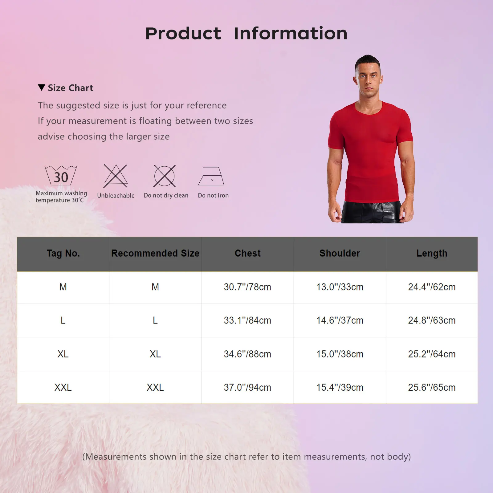 (Measurements shown in the size chart refer to item measurements, not body)