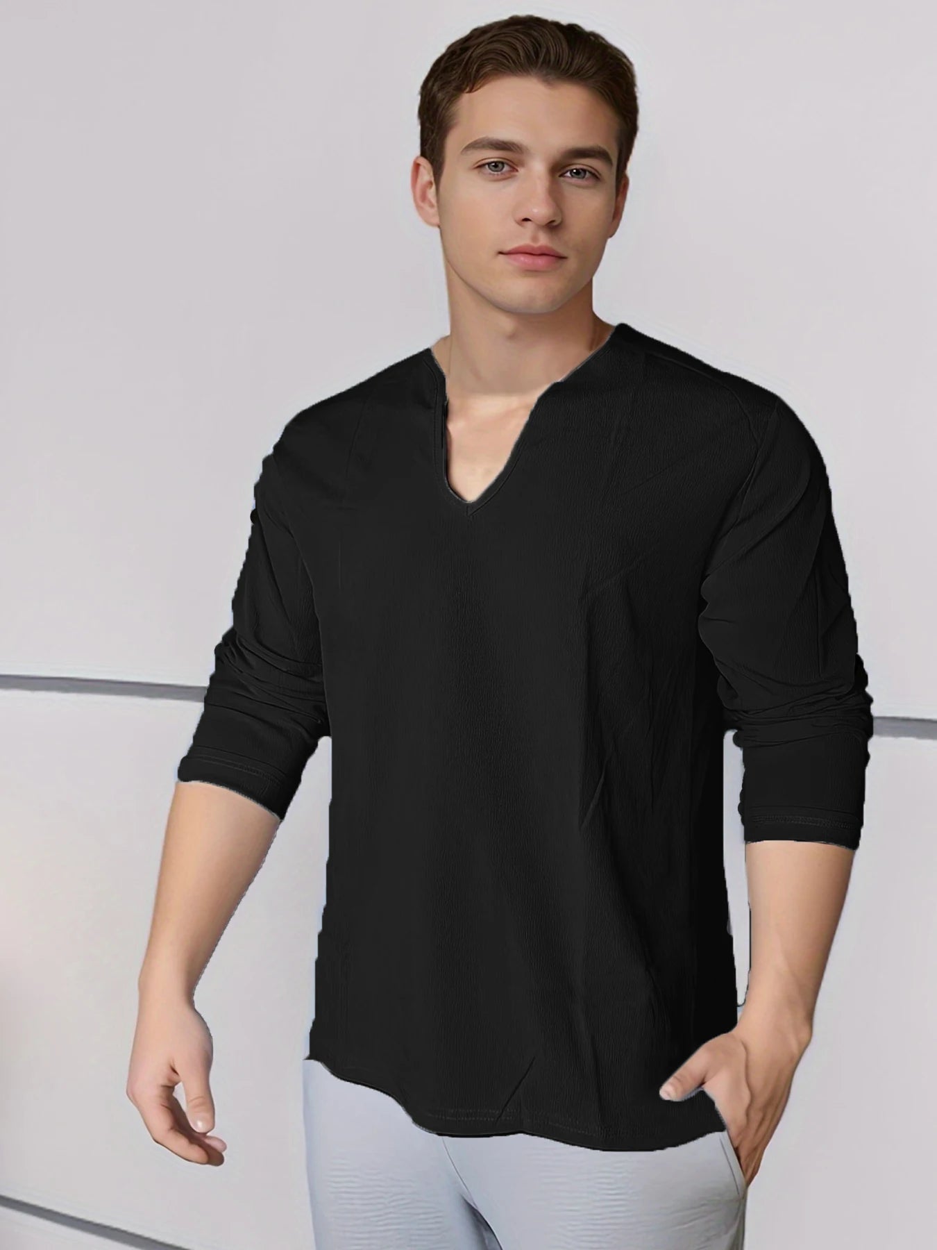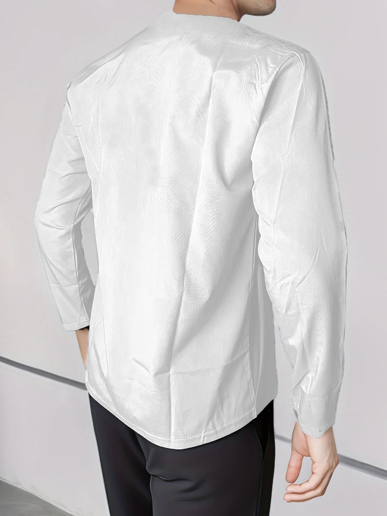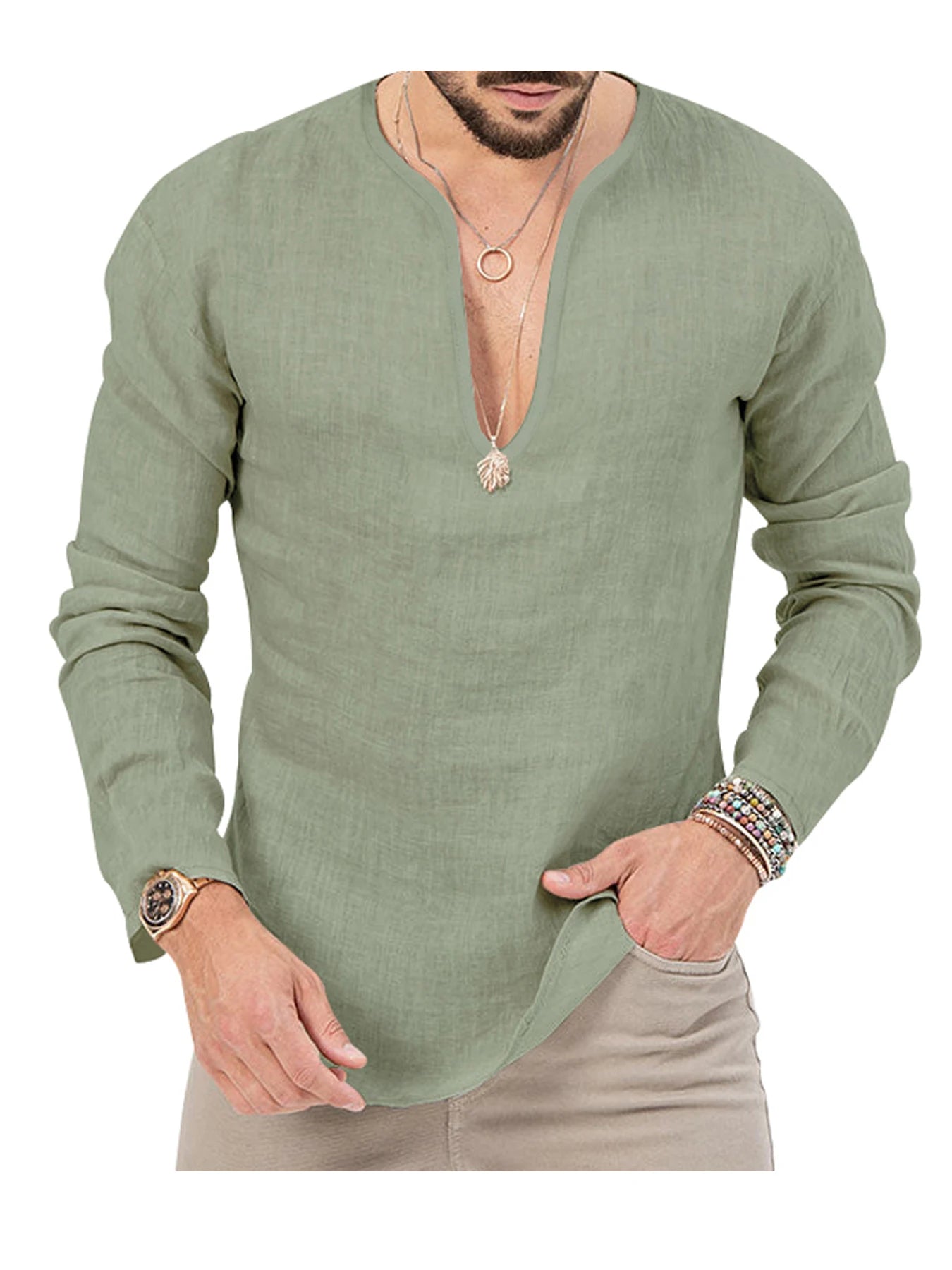 Men's Shirt Top V Neck Breathable Beach Shirt Long Sleeves Closure Regular Fit Solid Color Male Casual Shirt For Daily Vacation mon