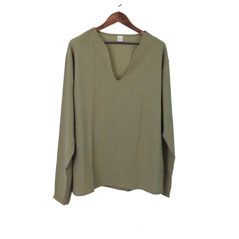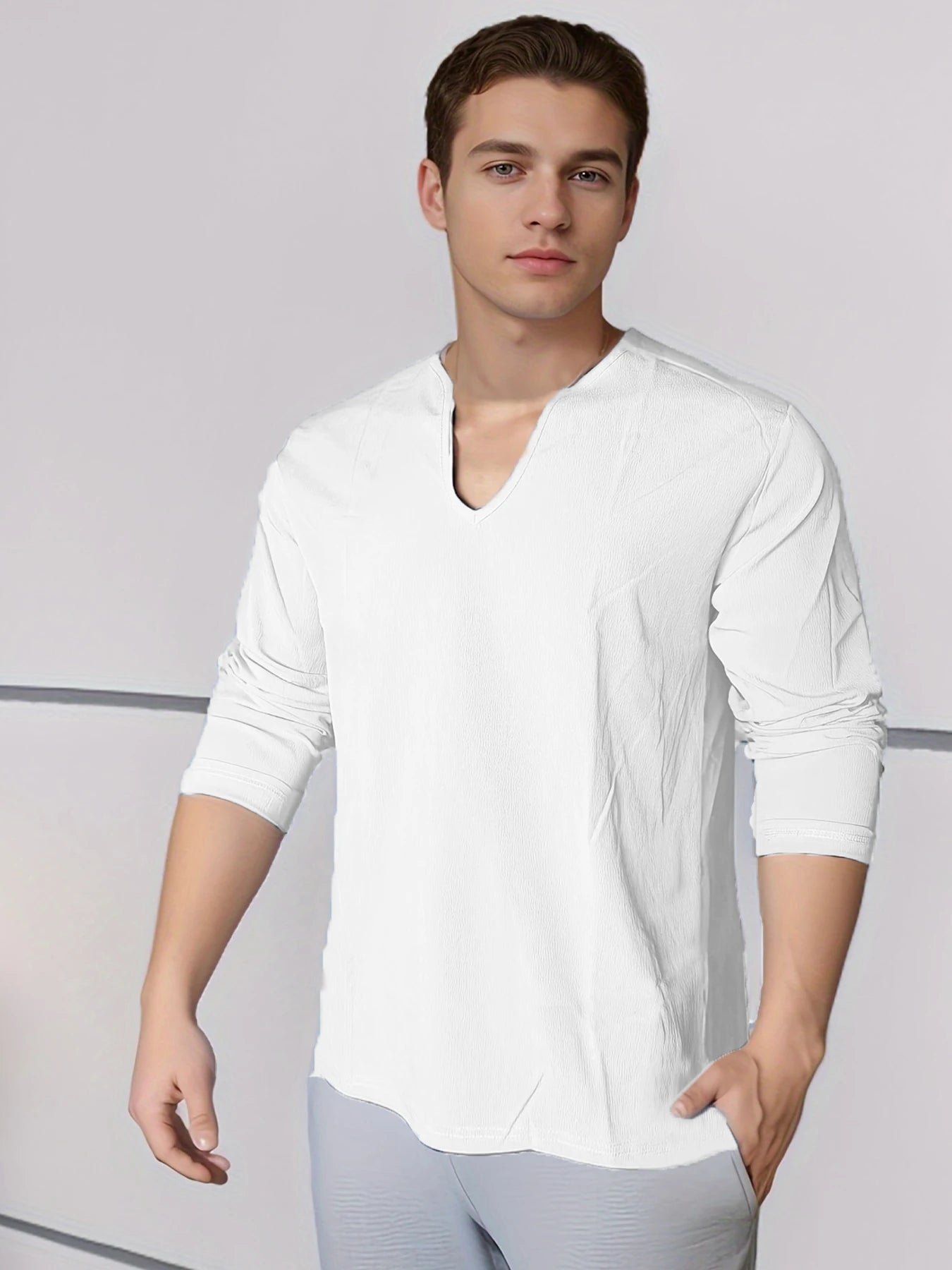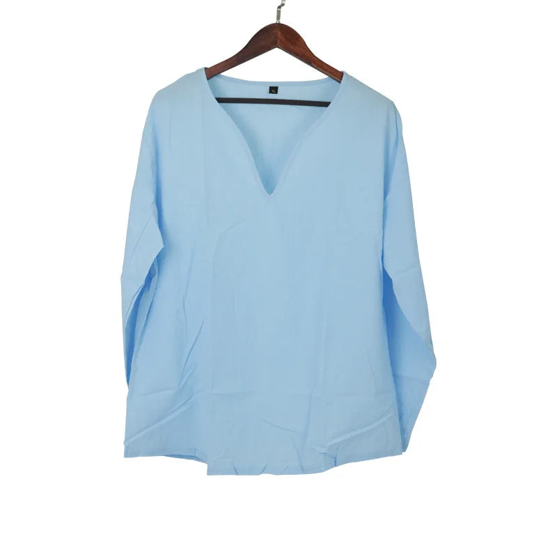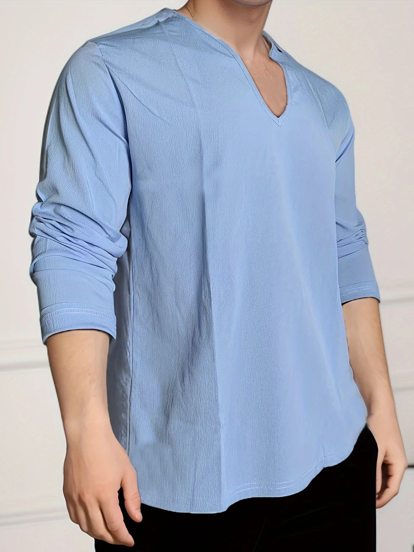 Men's Shirt Top V Neck Breathable Beach Shirt Long Sleeves Closure Regular Fit Solid Color Male Casual Shirt For Daily Vacation mon