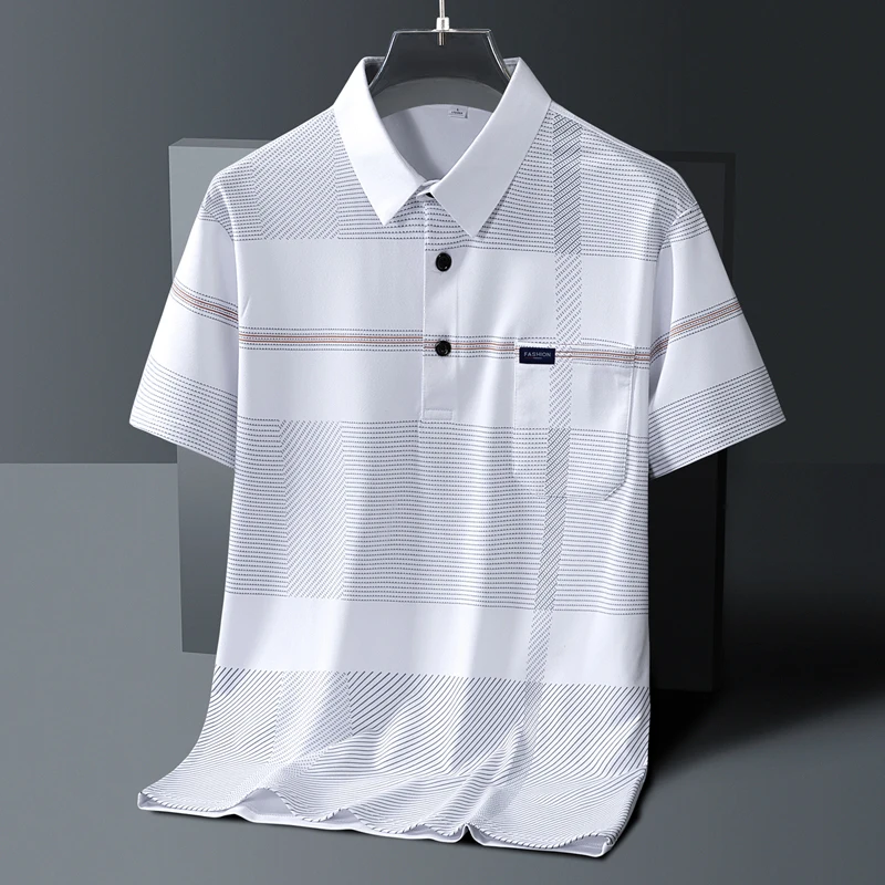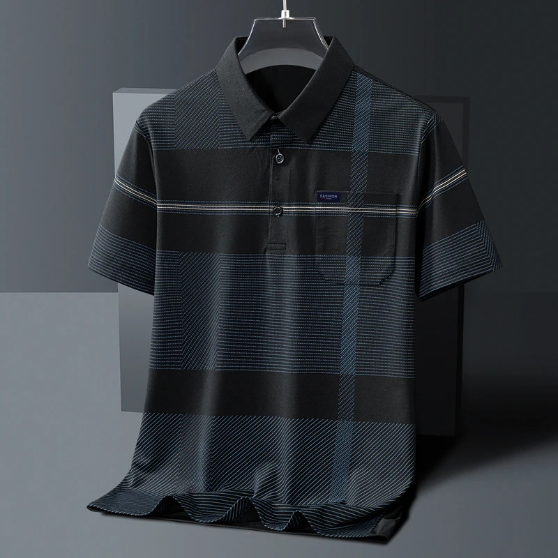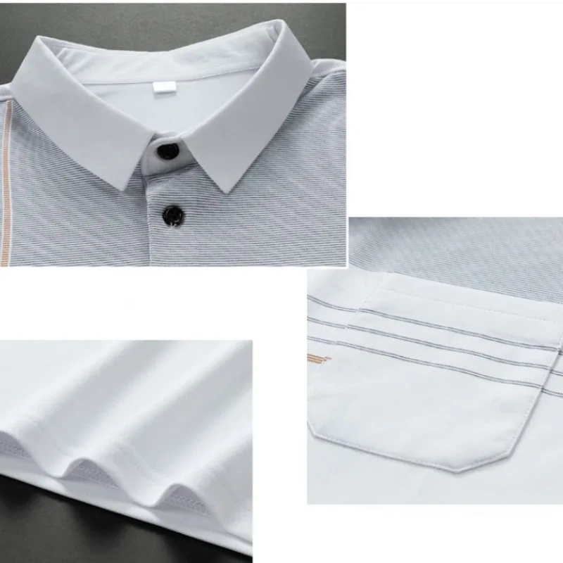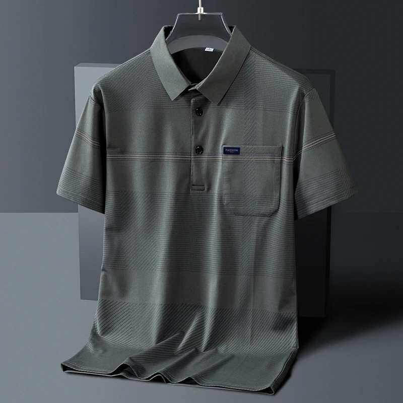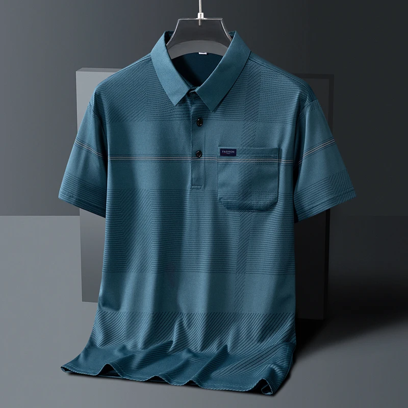 Men's Short Sleeve Button Summer Pullover Striped Pockets T-shirt England Style Casual Formal Turn-down Collar Vacation Tops
