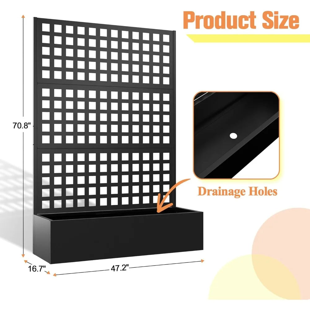 Metal Planter Box with Trellis Raised Garden decoration Bed with Trellis 71"x47"x16", Trellis with Planter Box & Privacy Screen