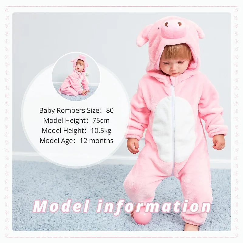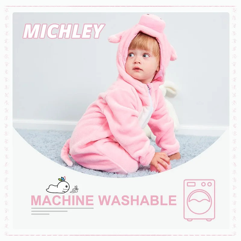 MICHLEY Halloween Gifts Pink Pig Baby Rompers Autumn Winter Clothes Costume Flannel Hooded Bodysuit Pajamas Jumpsuit For Girls