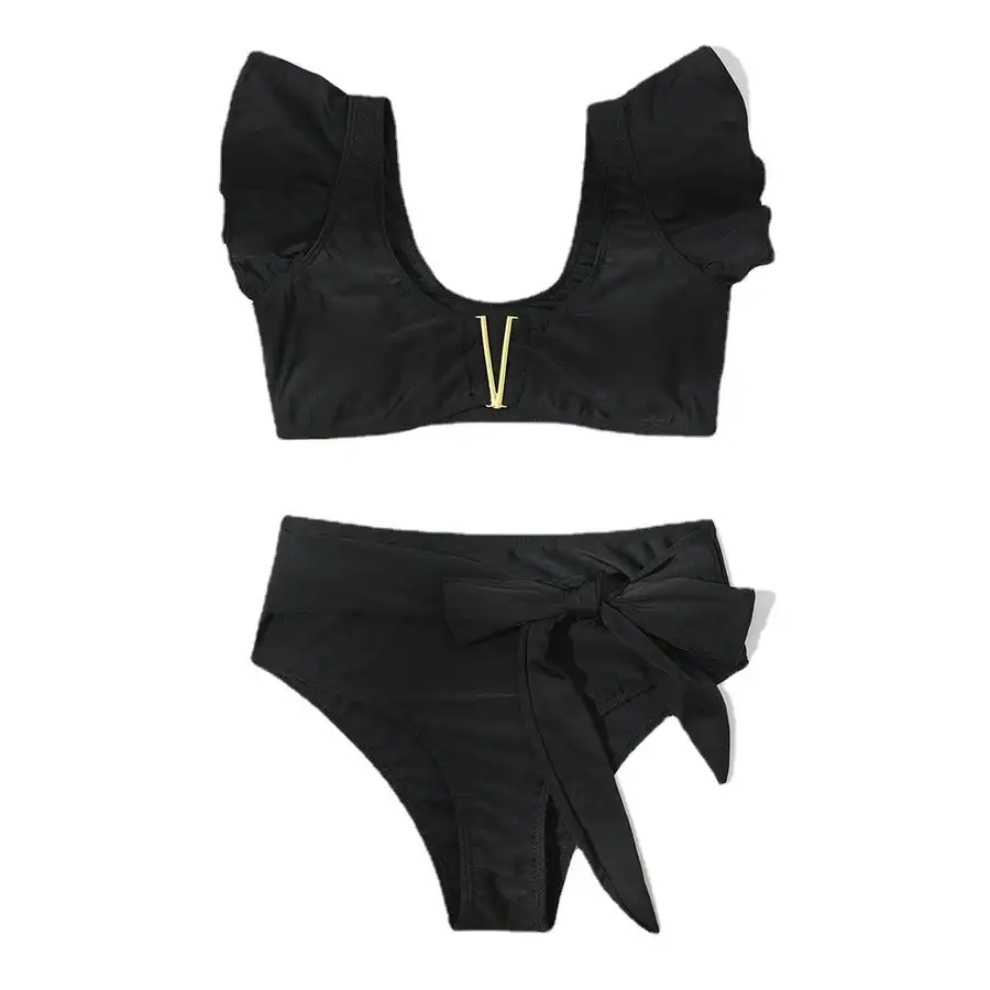 Monochrome Ruffle Bikini Set For Women Black High Waist Swimwear 2023 Fashion 2 Piece Beach Exit Backless Luxury Biquini