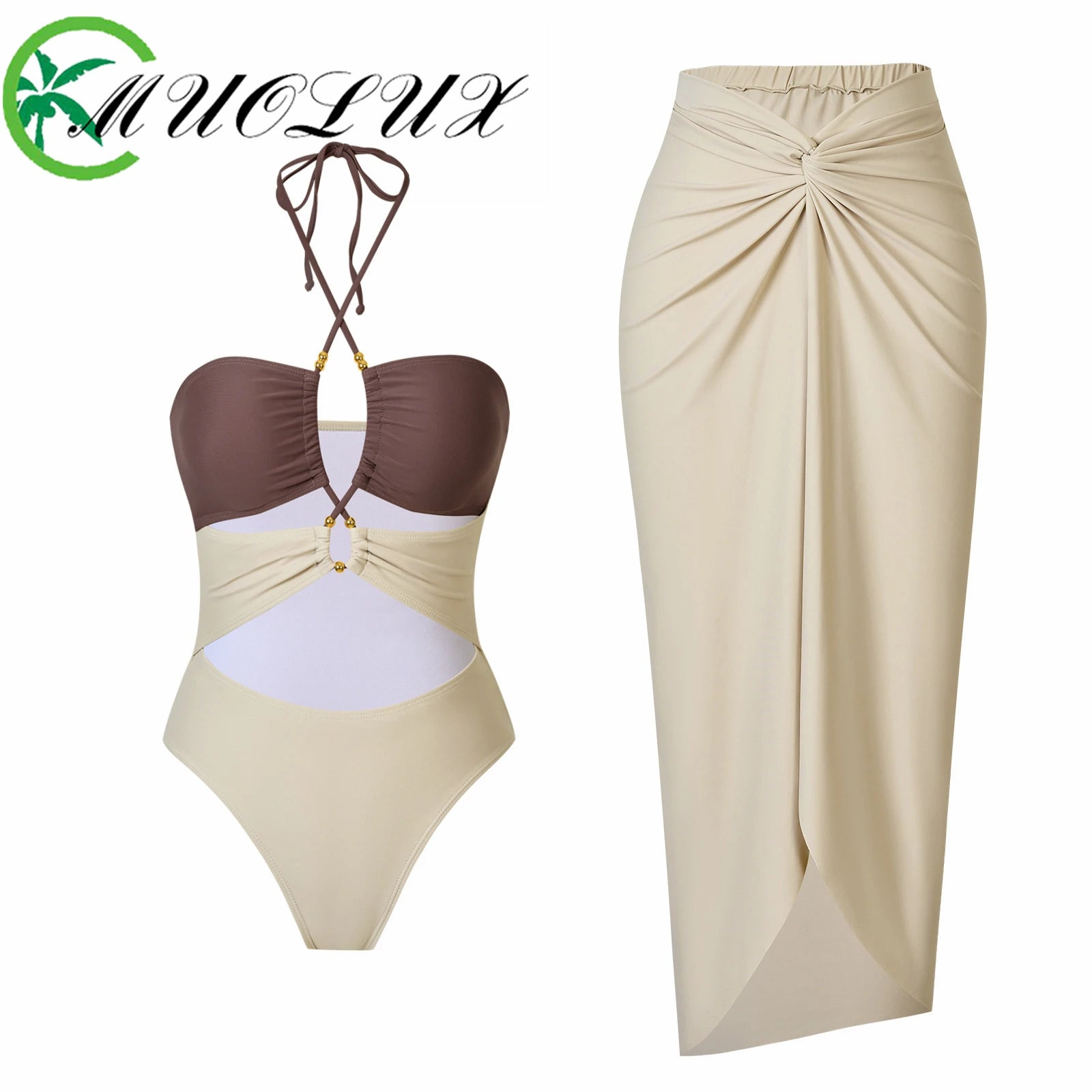MUOLUX 2025 New High Quality One Piece Swimsuit Hollow Out Push Up Women Bikini Set Swimwear Slimming Bathing Suit Beach Wear