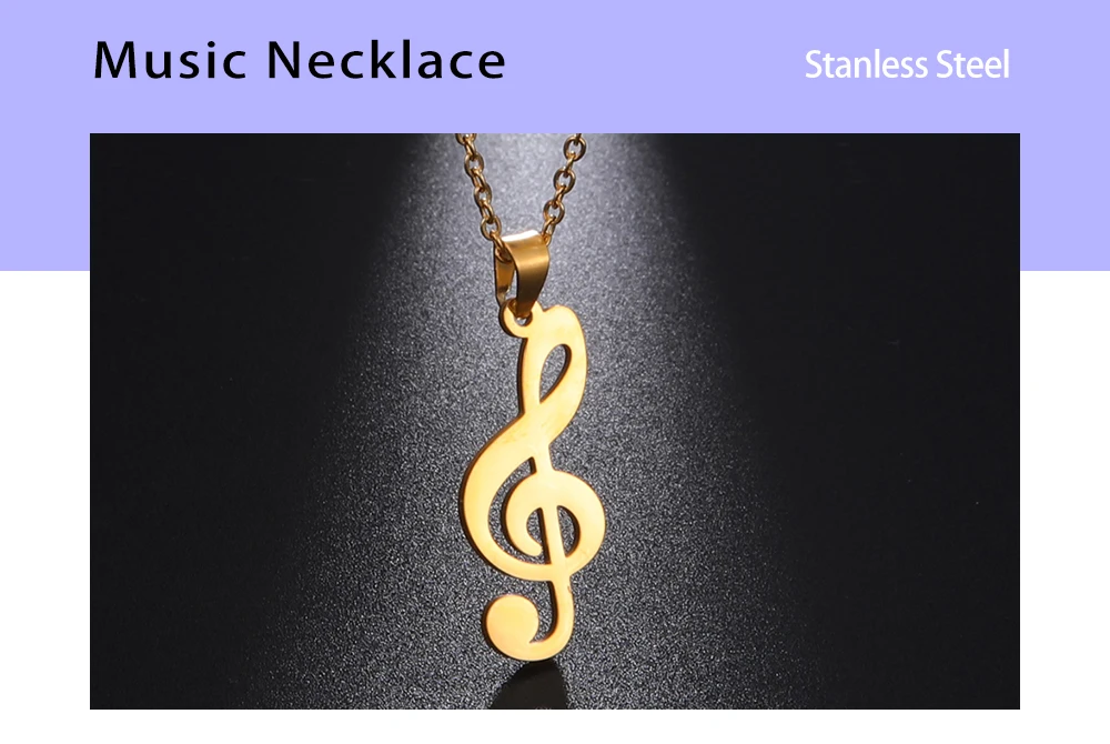 Music Necklace Score Note Treble Chain Musical Symbol G Clef Valentines Day Gift For Woman Men Kid Child Stainless Steel Jewelry