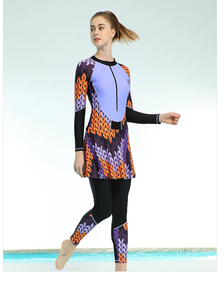 Muslim Sport Wear Sets for Woman 2022 New Muslim Swimwear Long Conservative Floral Printed Burkini for Veiled Women Borkini