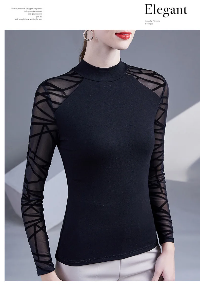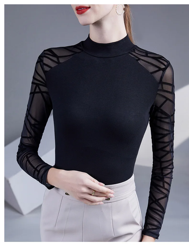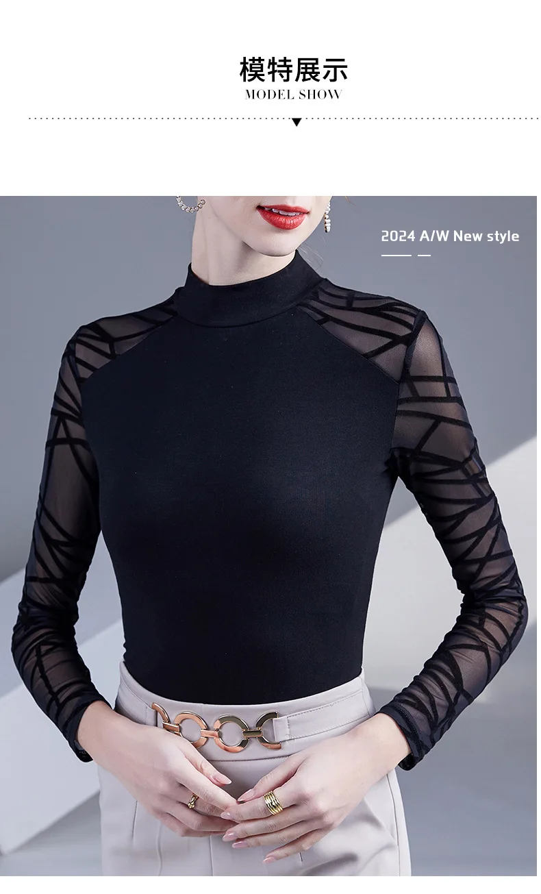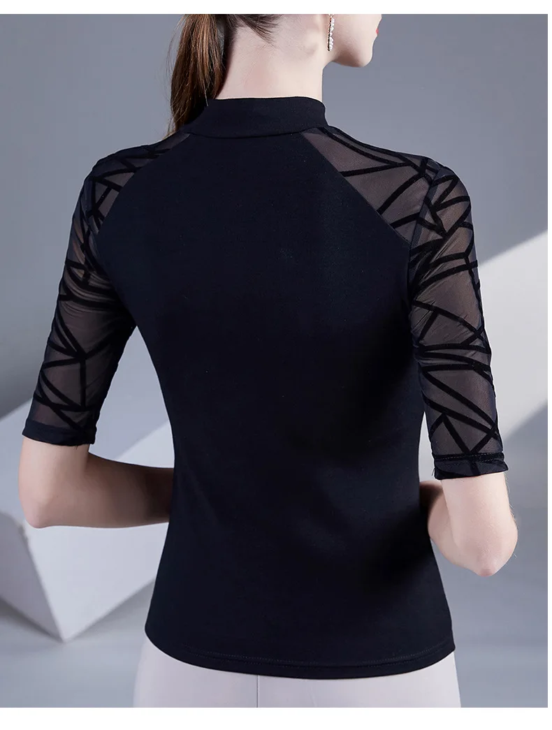 New 2025 clothes - Spring Half Sleeved Women Mesh Tops Fashion Casual Patchwork High Stretch Black T-Shirt M-3XL Clothes