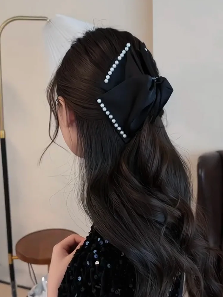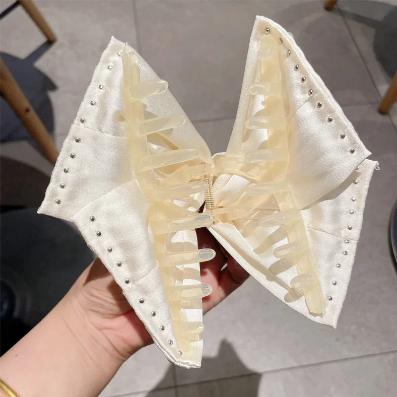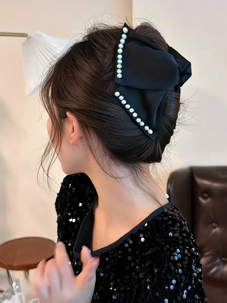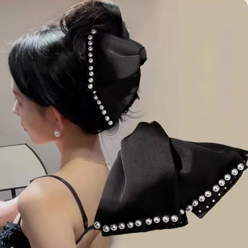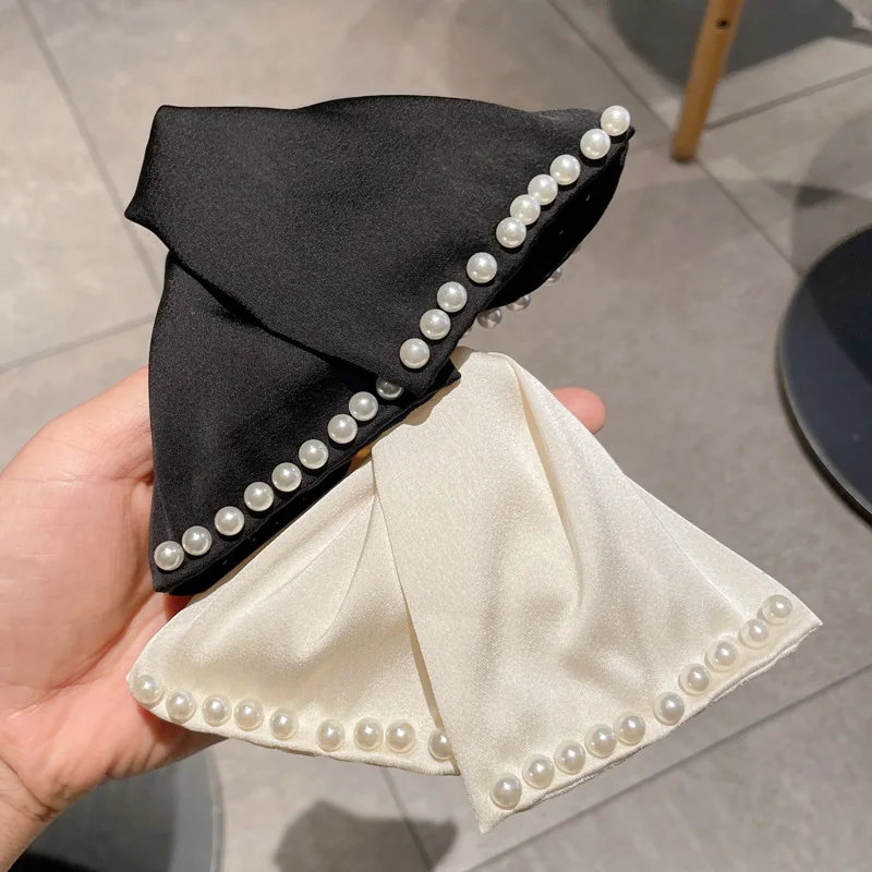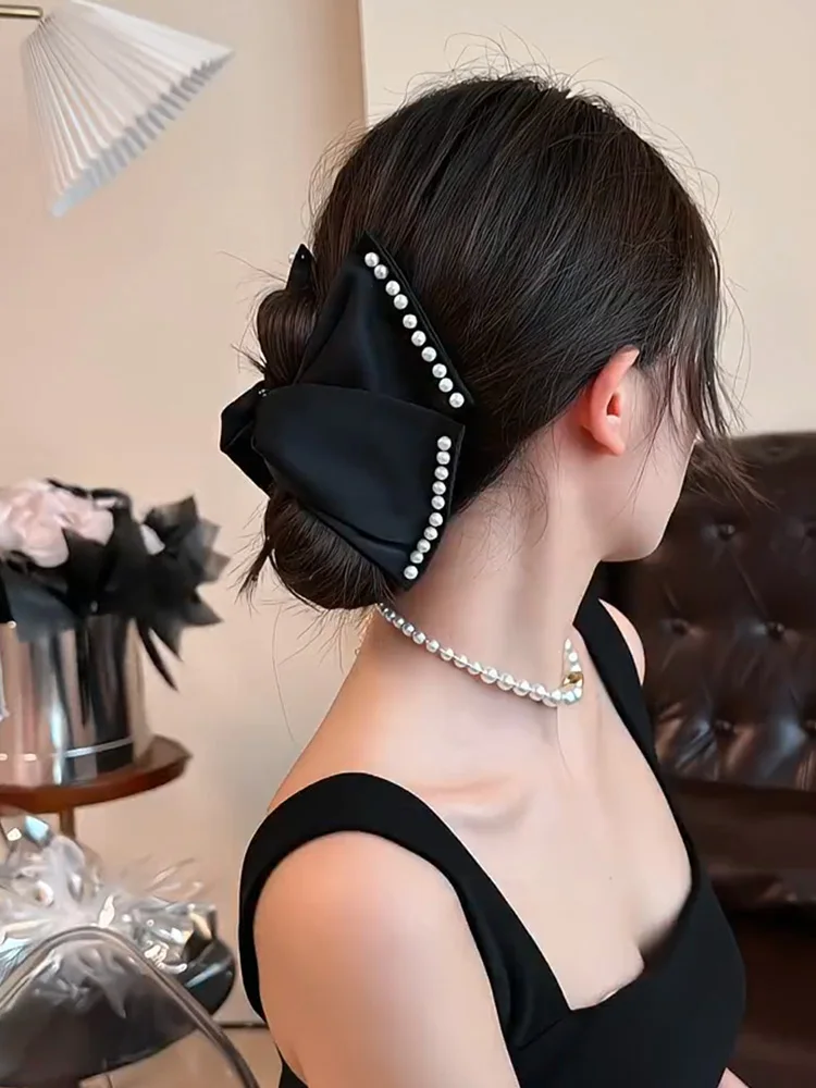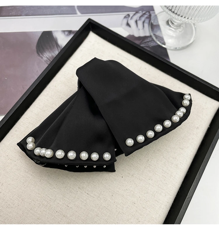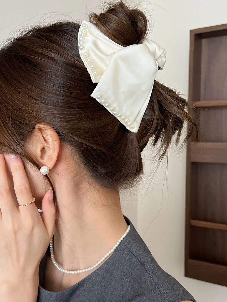 New Fashion Large Solid Colour Satin Pearl Bow Hair Clips Elegant ponytail clip Sweet Girl Hair Clip Headwear Hair Accessories