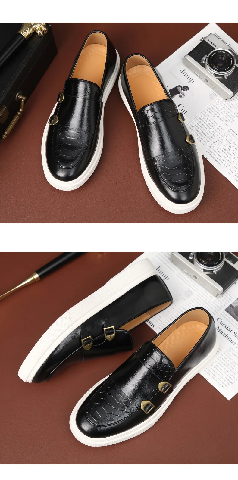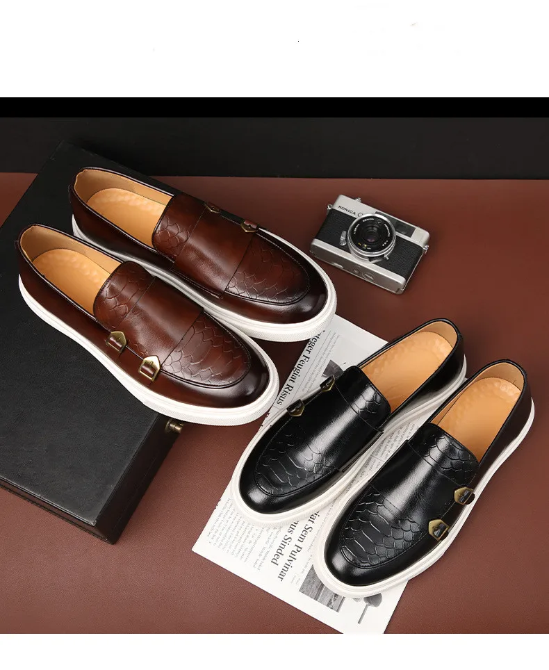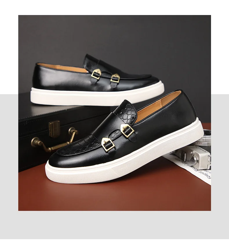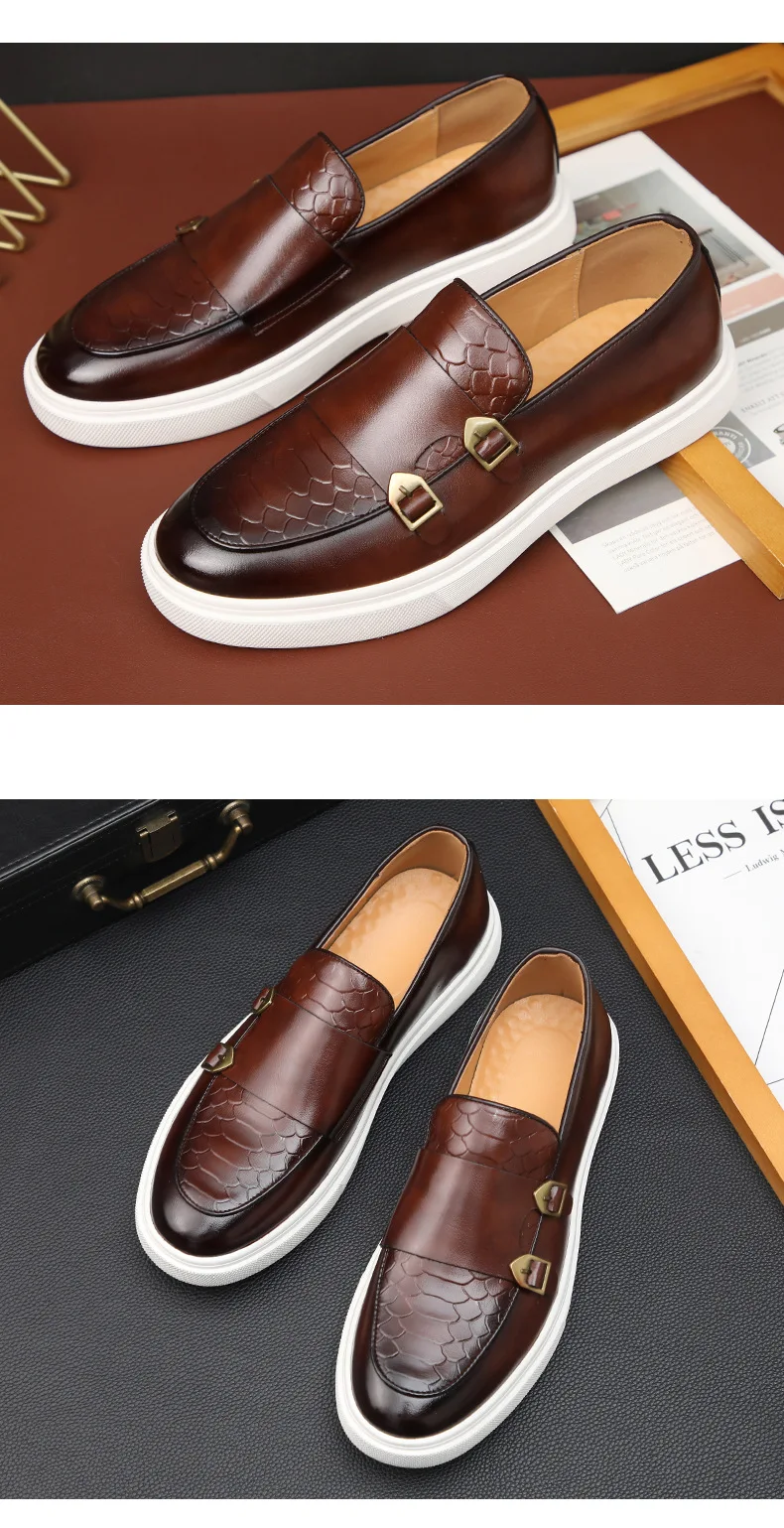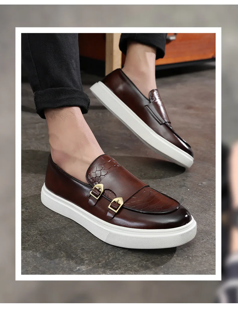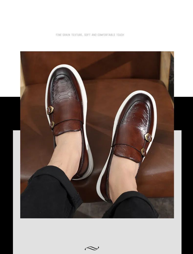 New Fashion Men Crocodile Pattern Monk Strap Thick Bottom Lace Up Shoes Male Casual Loafers Formal Dress Footwear Zapatos Homre