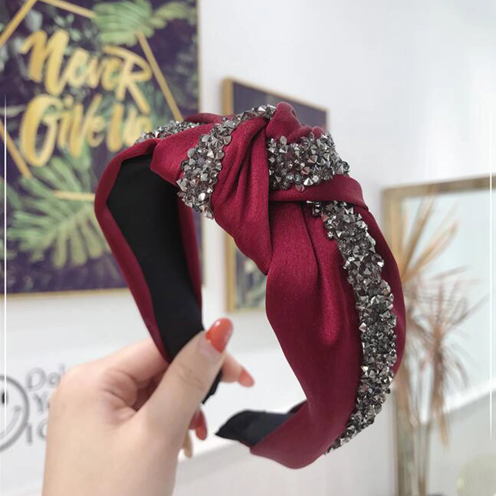 New Fashion Rhinestone Hairband Women Solid Wide Side Headband Middle Knot Turban Girls Autumn Winter Hair Accessories Headwear