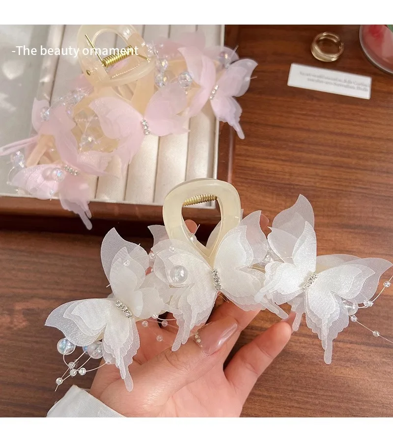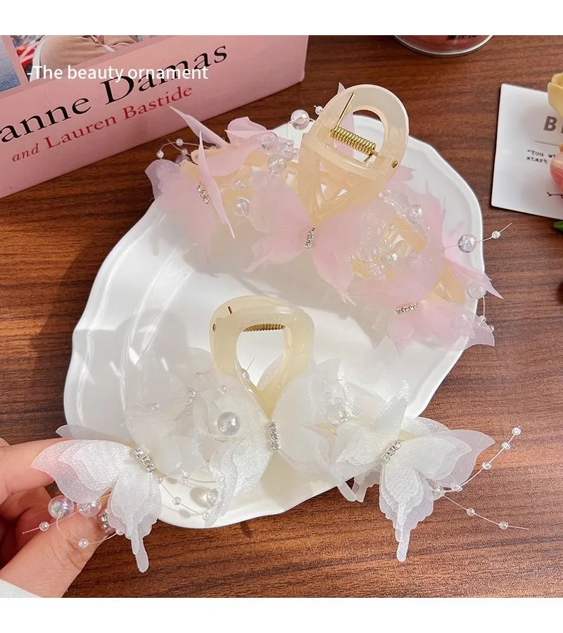 New Fashion Simulation Butterfly Hair Clips for Women Elegant Pearl Bow Ponytail Clip Sweet Crab Claw Headdress Hair Accessories