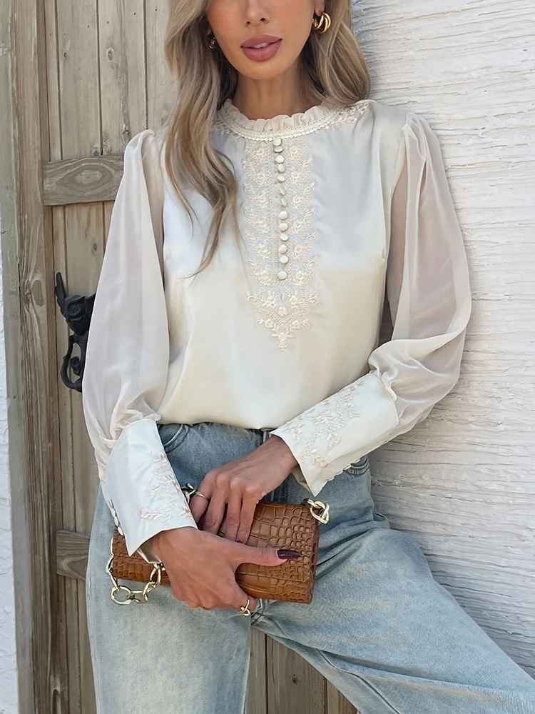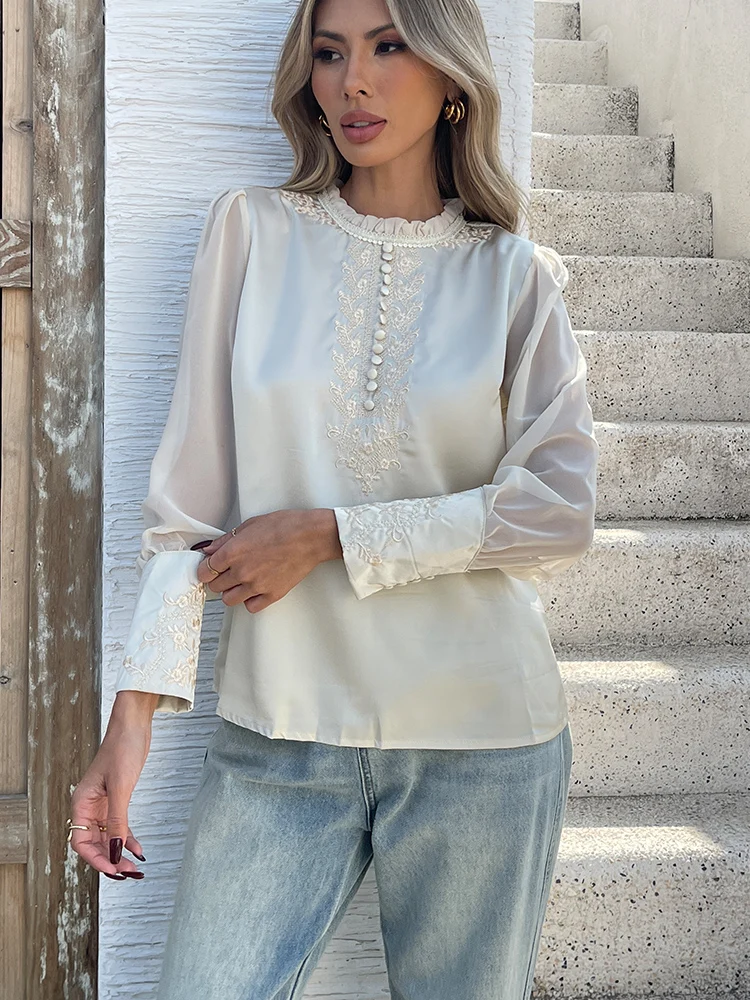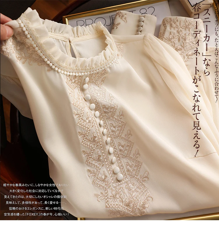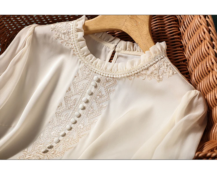 New Spring embroidery shirts for ladies Fashion chiffon sleeve Women's blouses blusa mujer