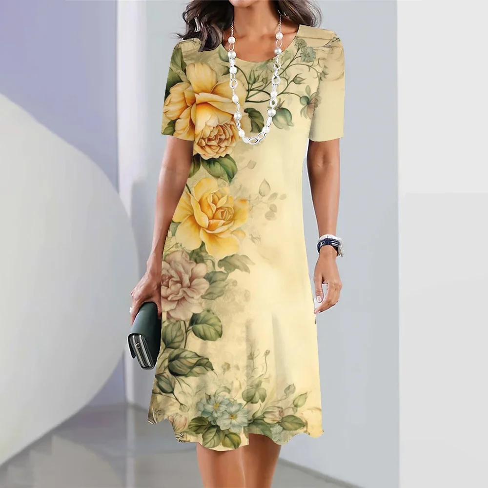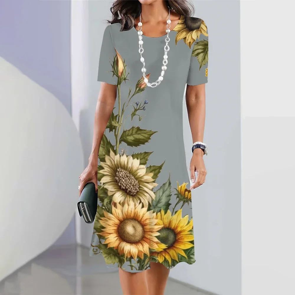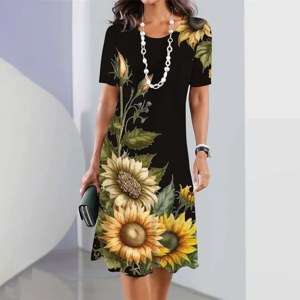 New Sunflower Print Women's Dresses Female Elegant Loose Mini Dress Summer Plus Size Short Sleeve Dress Fashion Women's Clothing clothes