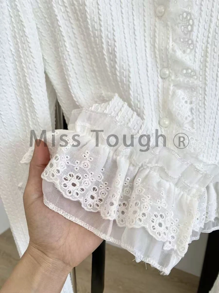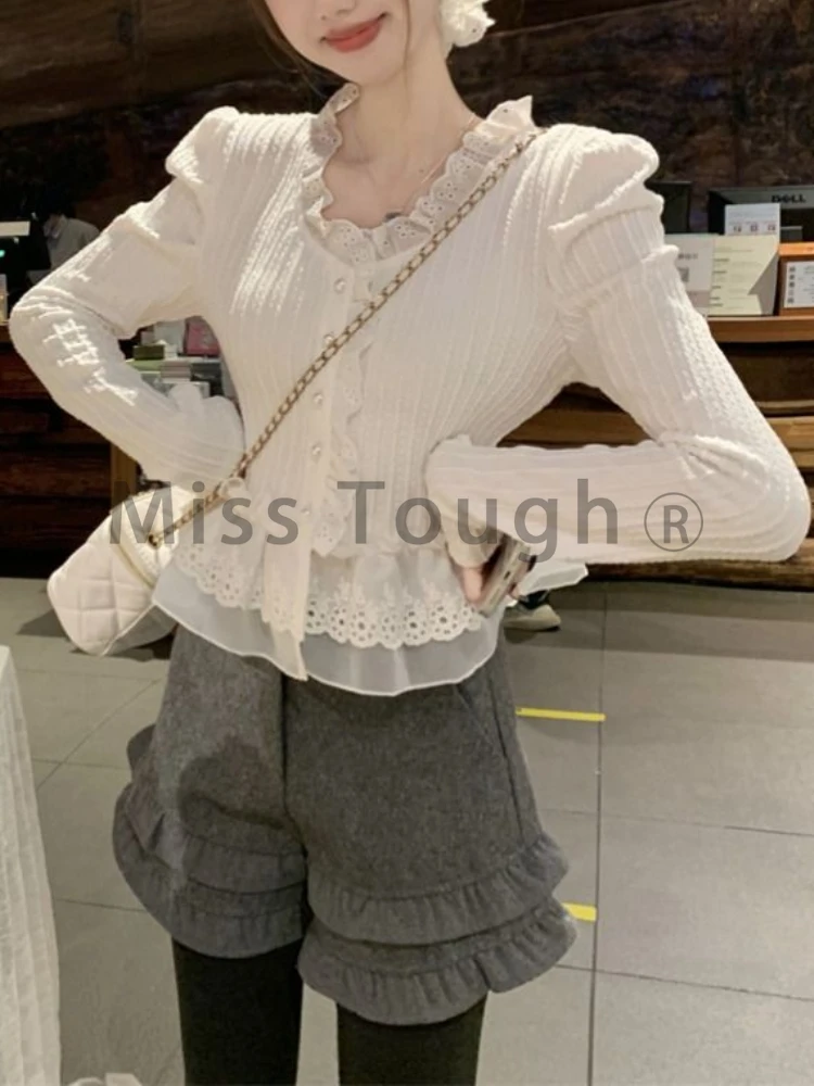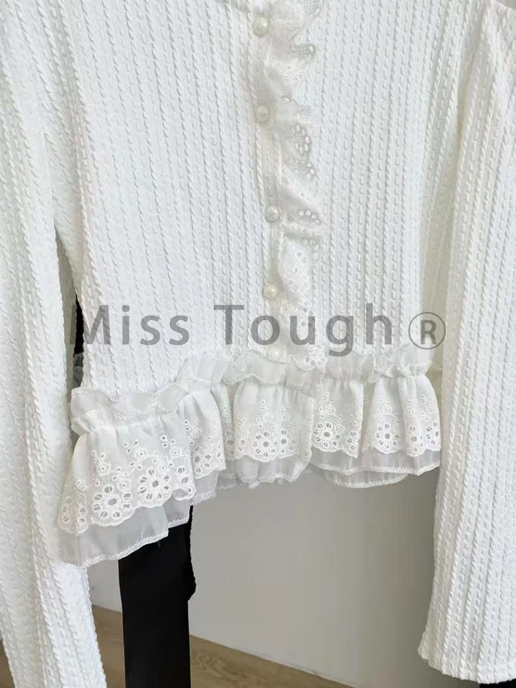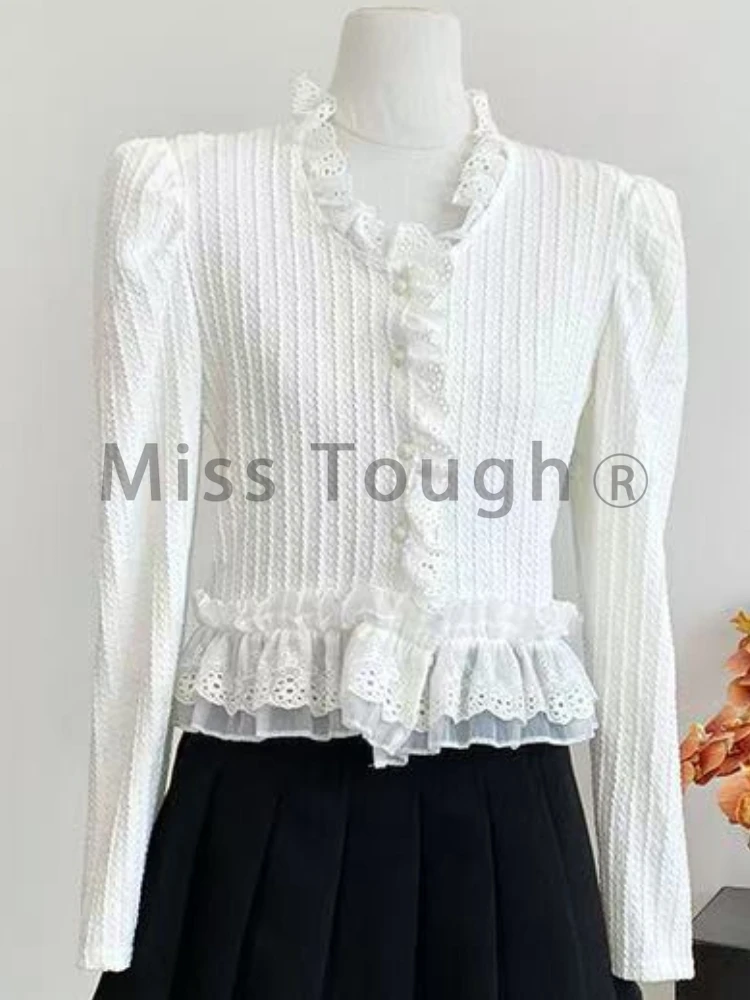 New Sweet clothes Gentle Lace V-neck Shirt Female New Japanese Fashion Slim Elegant Shirt Spring 2025 Harajuku Long Sleeve Solid Clothes