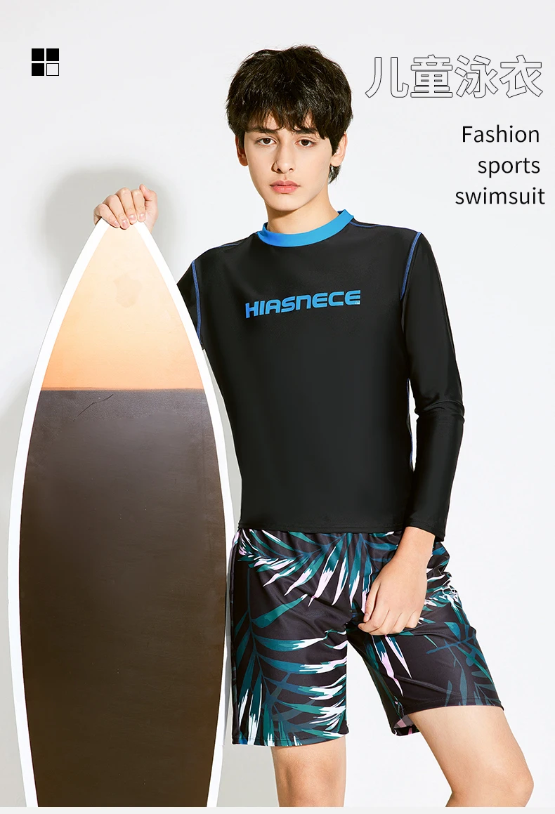 New Swimsuit for Boys Swim Set 2 Piece Swimwear Trunks Shorts Sports Rash Guard Long Sleeve Sunscreen Swimming Pool