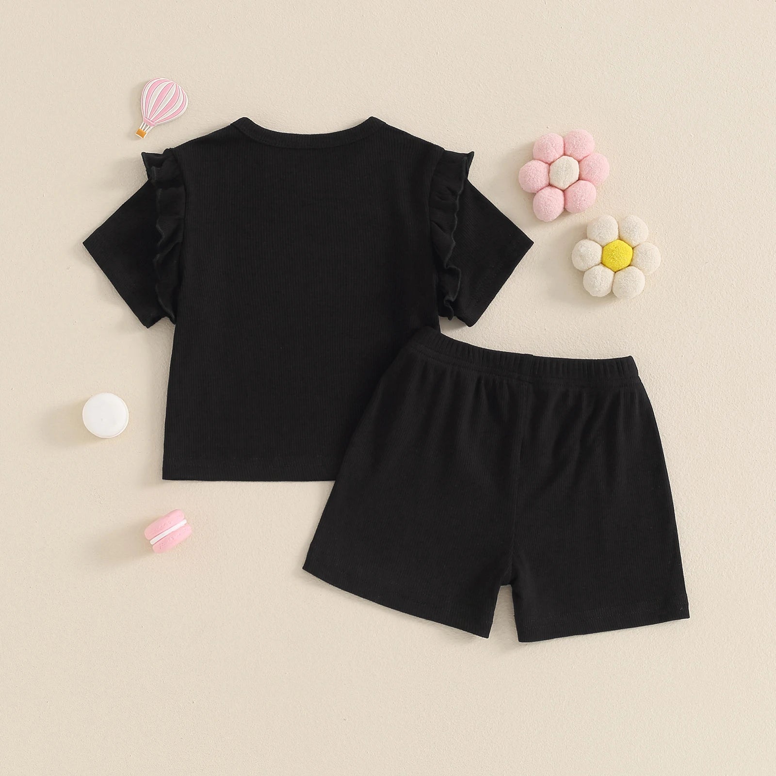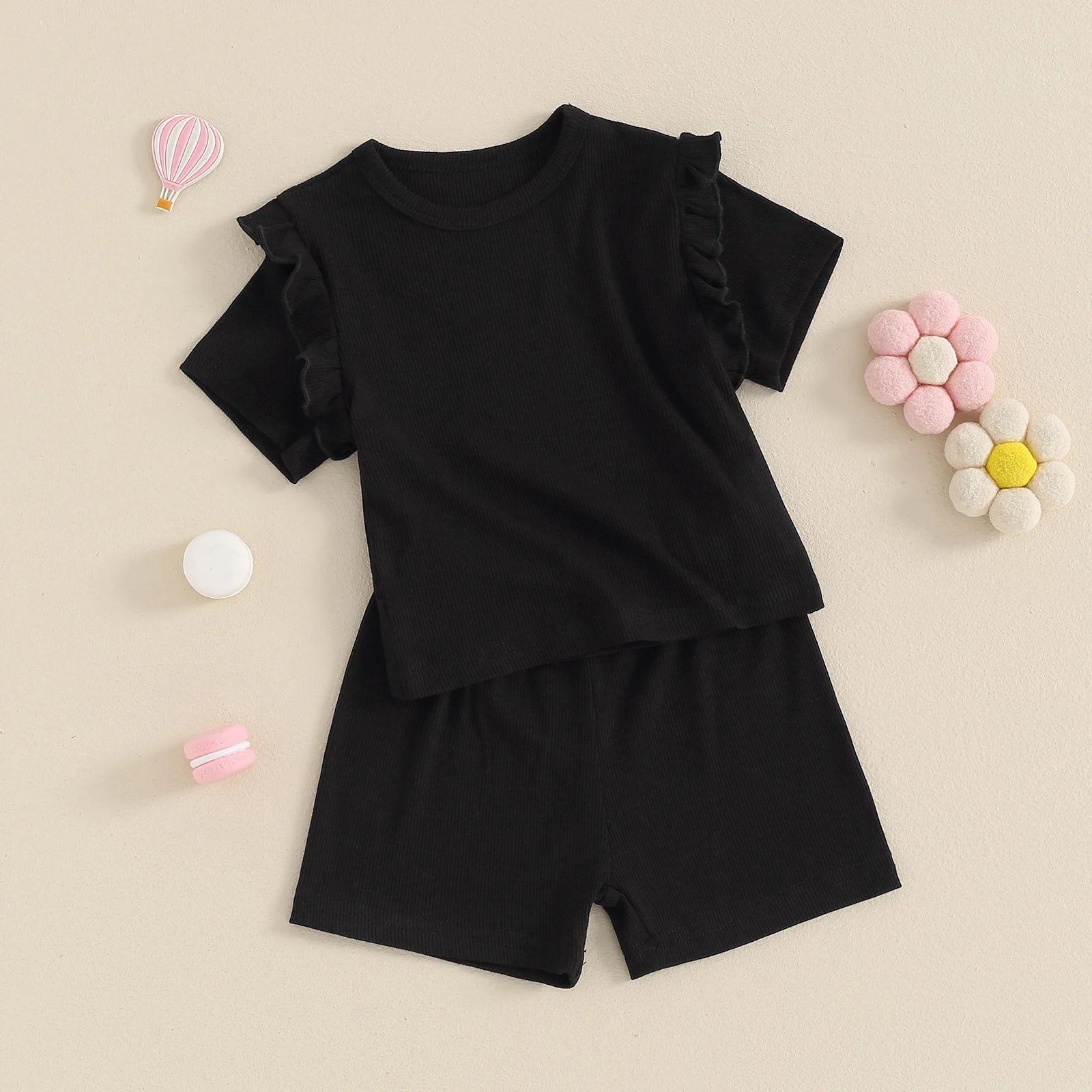 Newborn Toddler Baby Girl Summer Clothes Knit Ribbed Ruffle Shirt Shorts Sets Casual Outfits 0 3 6 9 12 18 Months 2T