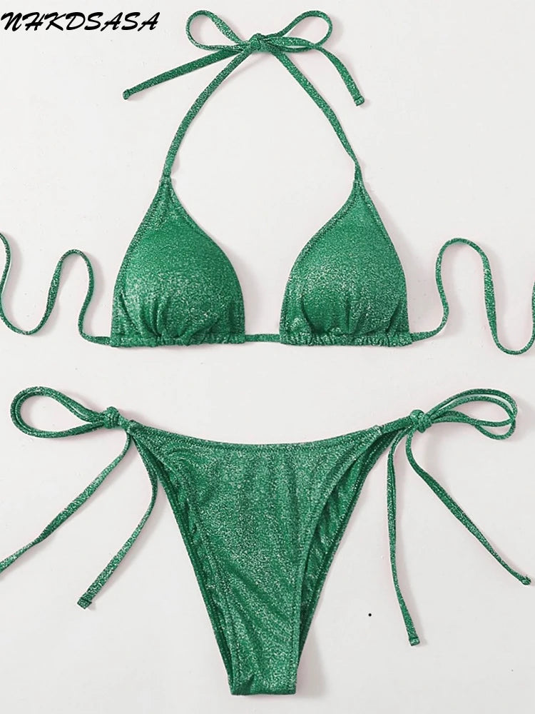 NHKDSASA Swimsuit 2022 New Swimwear Plus Size Bikini Set Arrival Halter Bandage Push Up Brazilian Biquini Separate Swimsuit